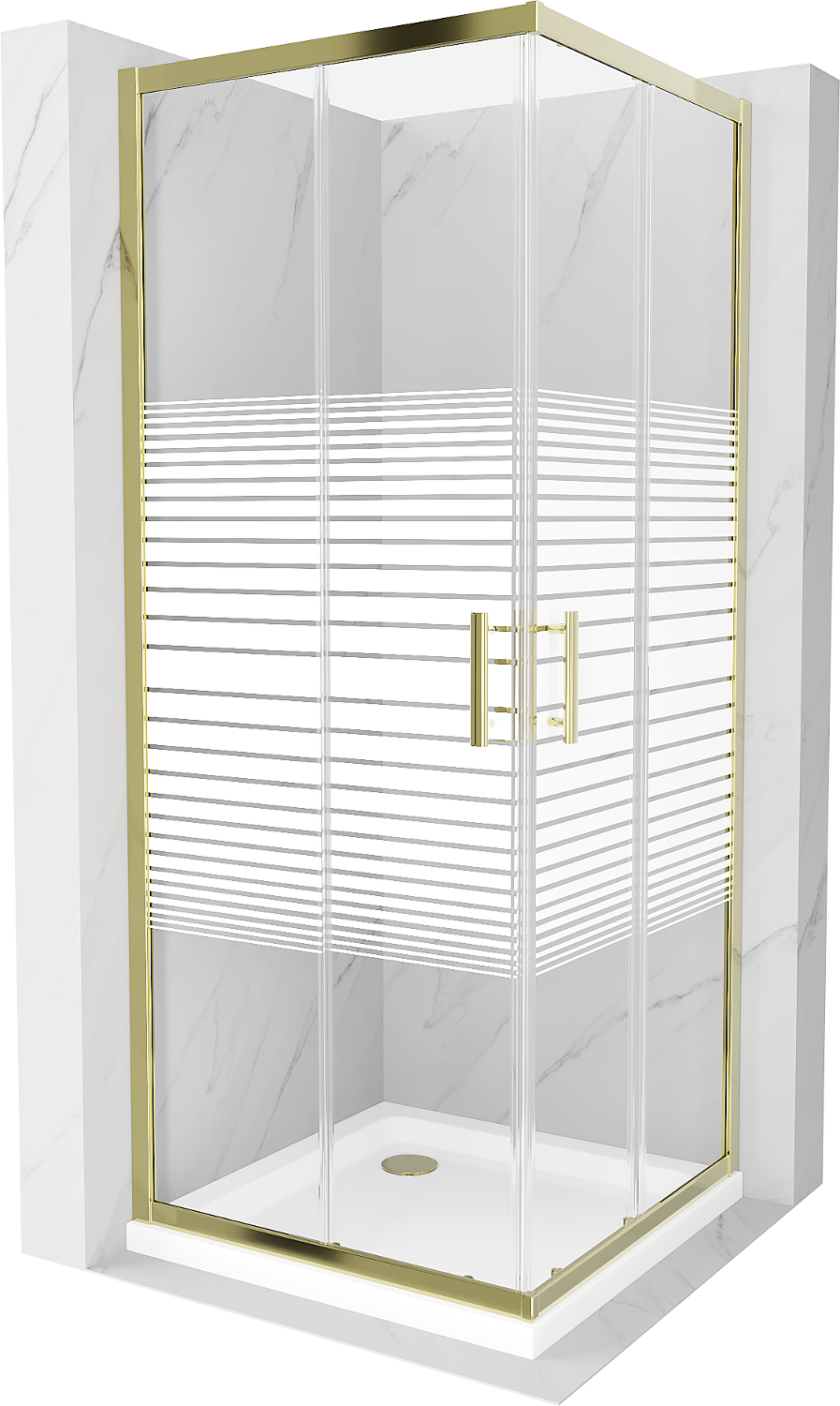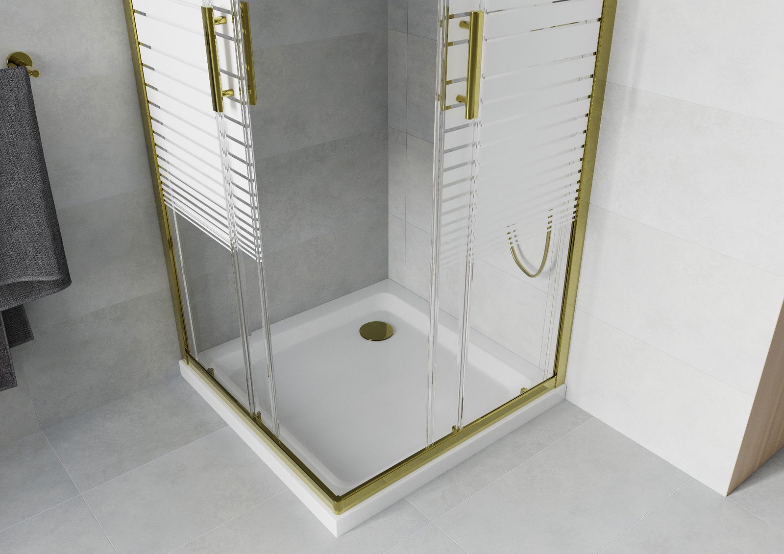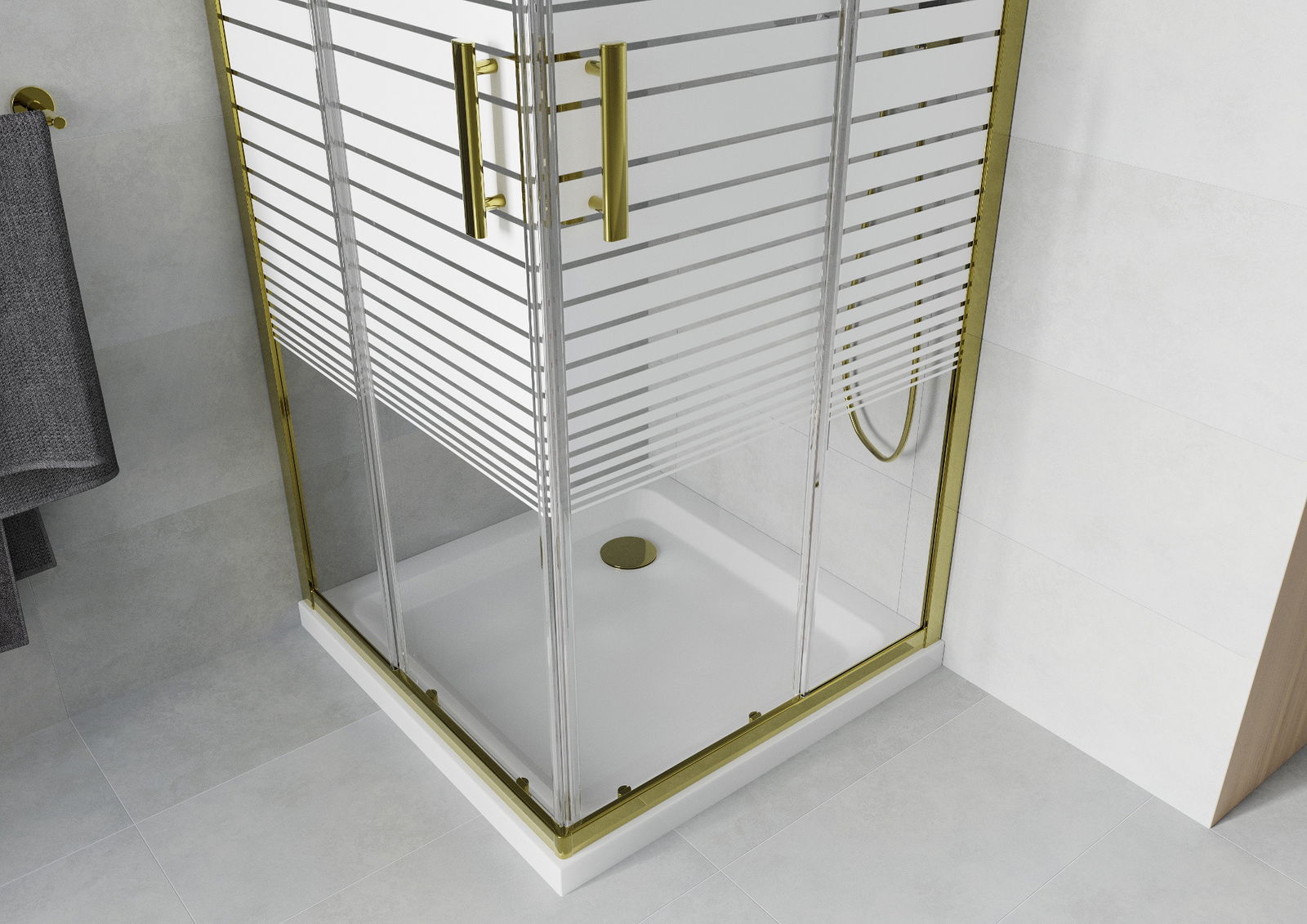 Mexen Rio квадратна душ кабина 70 x 70 см, бели ленти, злато + плосък под, бял - 860-070-070-50-20-4010G