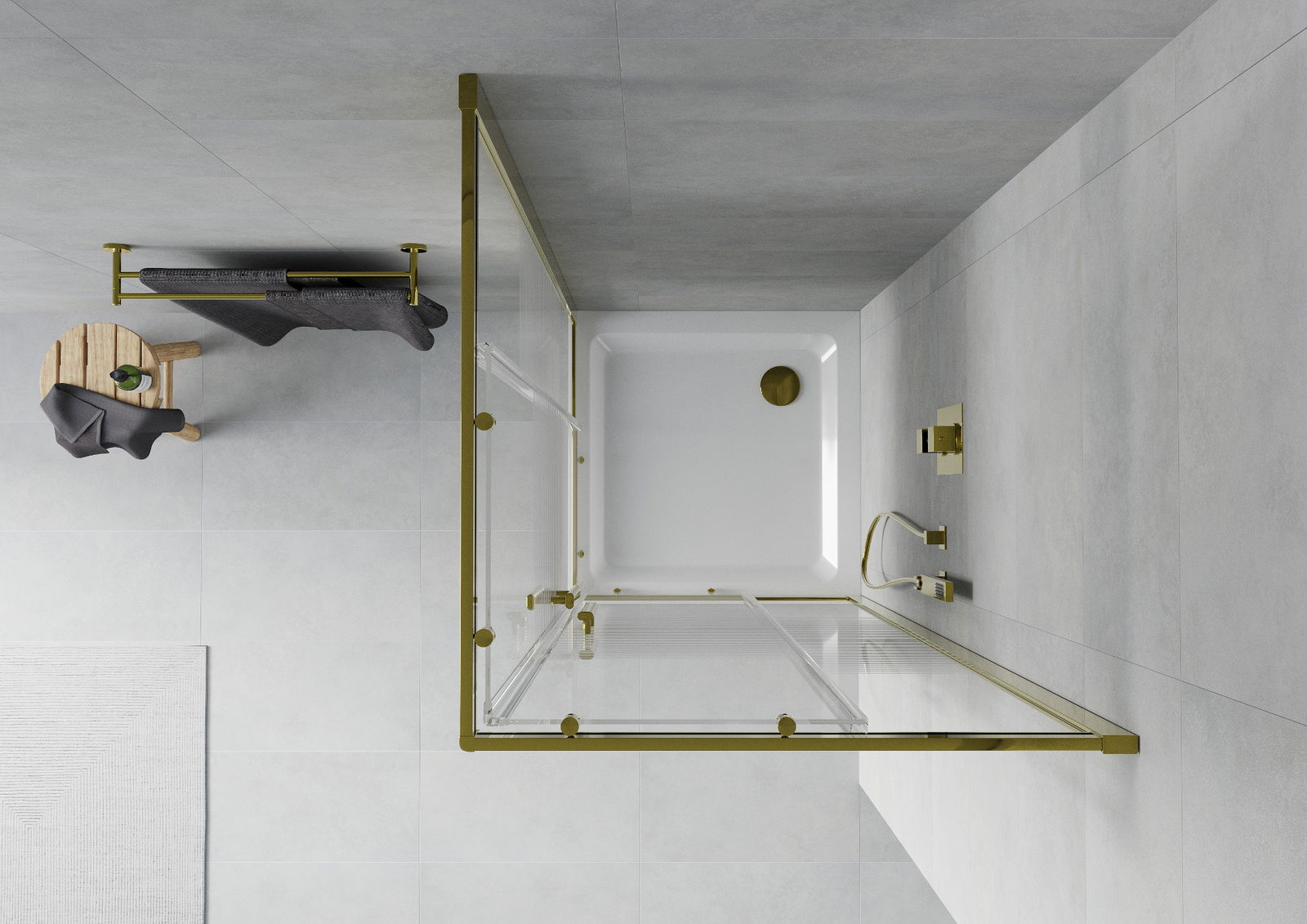 Mexen Rio квадратна душ кабина 80 x 80 см, бели ивици, златна + плосък поддушов елемент, бял - 860-080-080-50-20-4010G