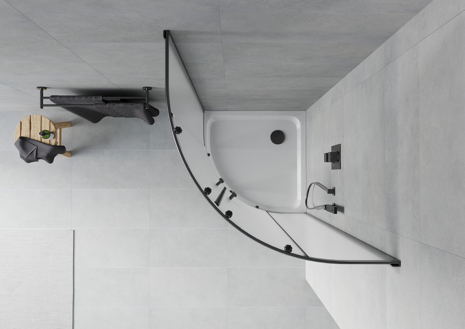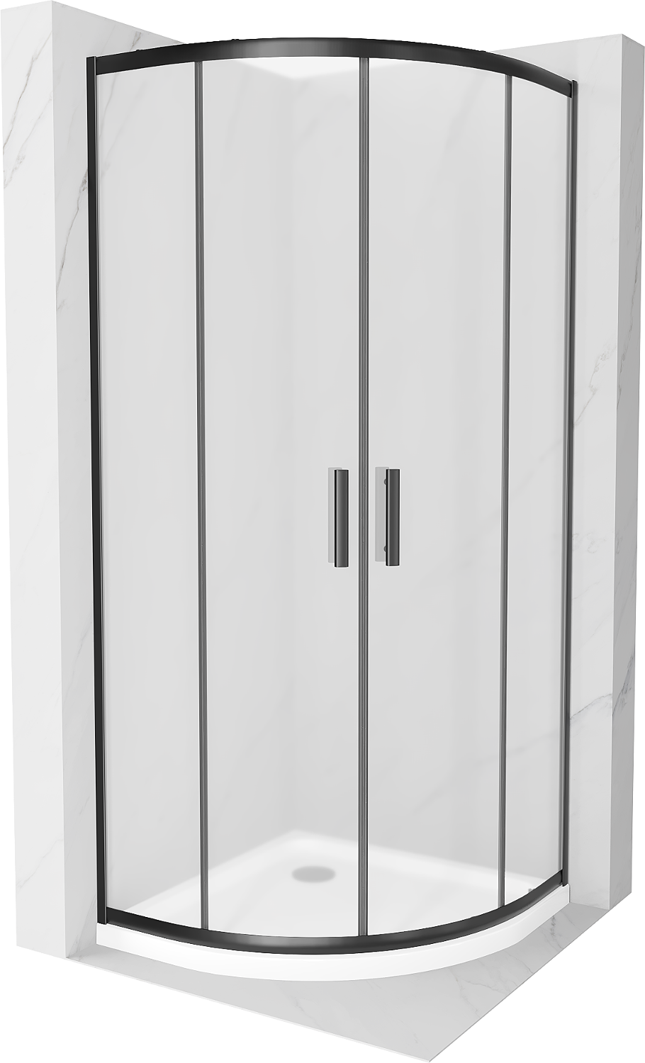 Mexen Rio полукръгла душ кабина 90 x 90 см, матирано стъкло, черна + плитък душ