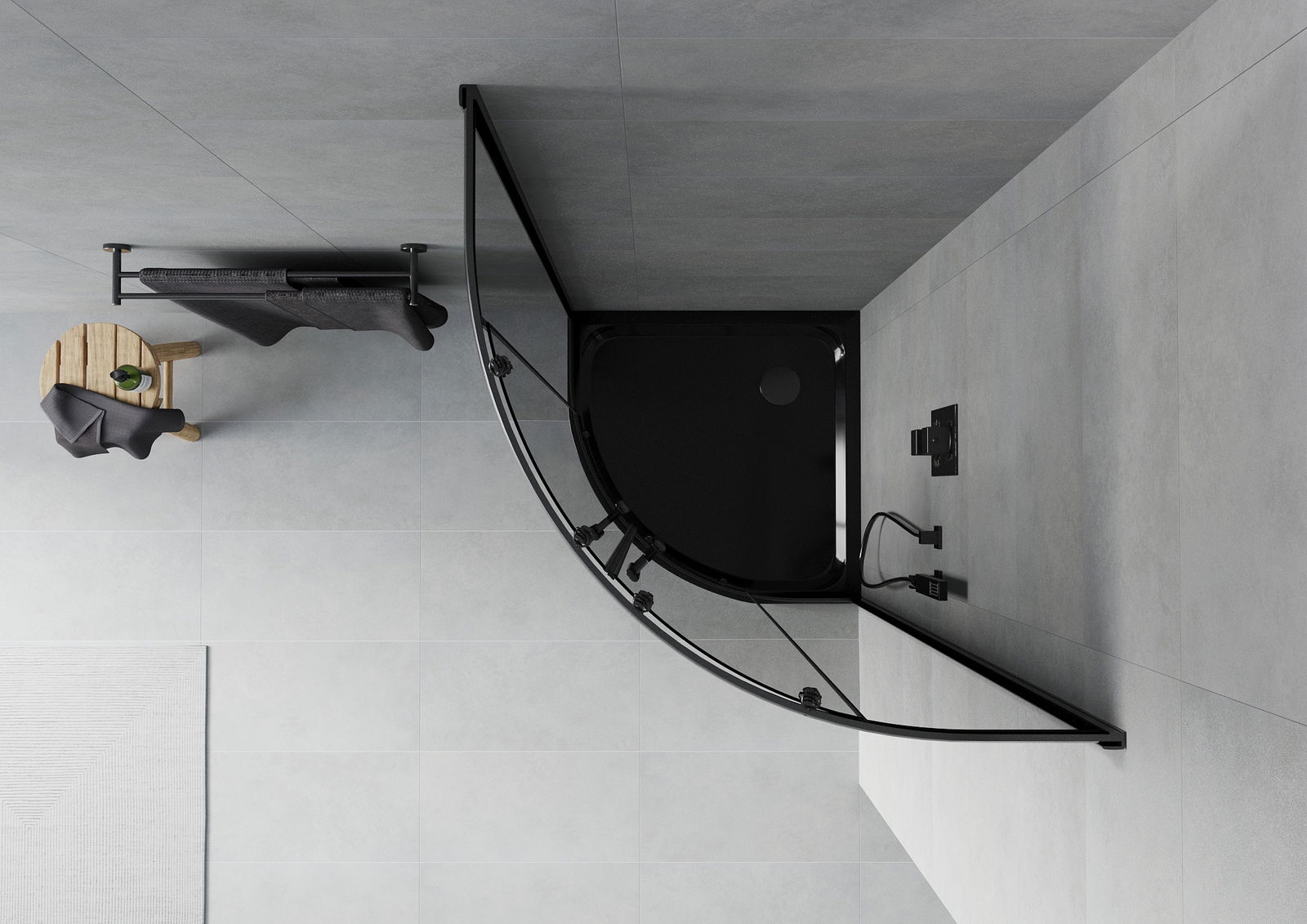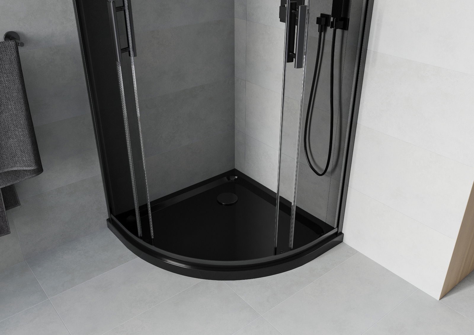 Mexen Rio полукръгла душ кабина 90 x 90 см, графит, черна + тава Flat, черна