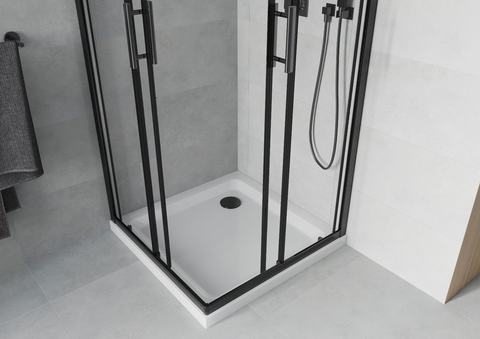 Mexen Rio квадратна душ кабина 90 x 90 см, прозрачна, черна - 860-090-090-70-00