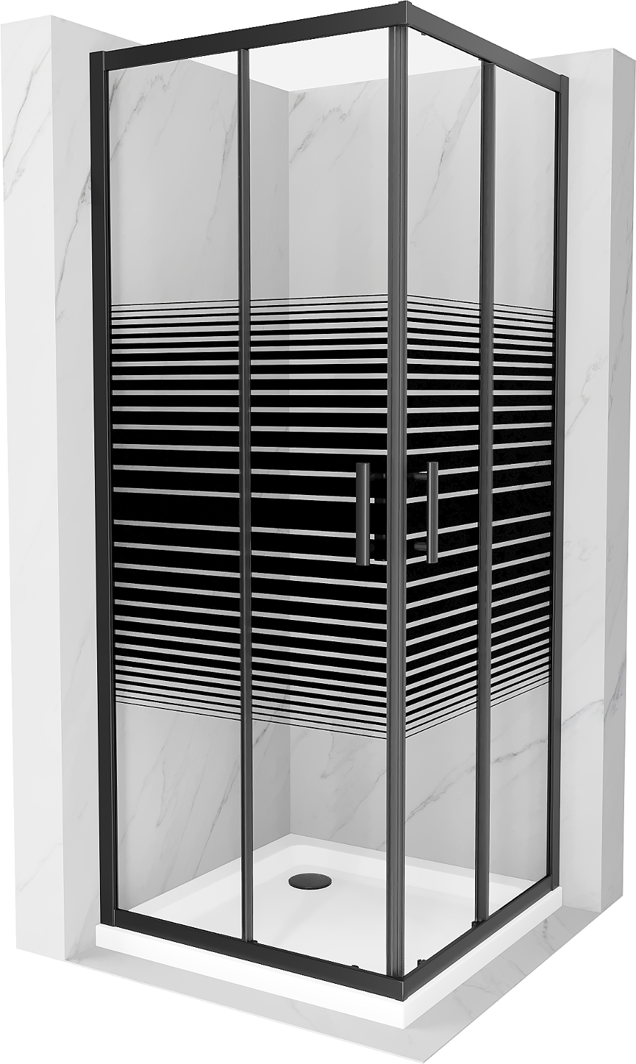 Mexen Rio квадратна душ кабина 80 x 80 см, черни ленти, черна + плосък поддушник, бял - 860-080-080-70-20-4010B