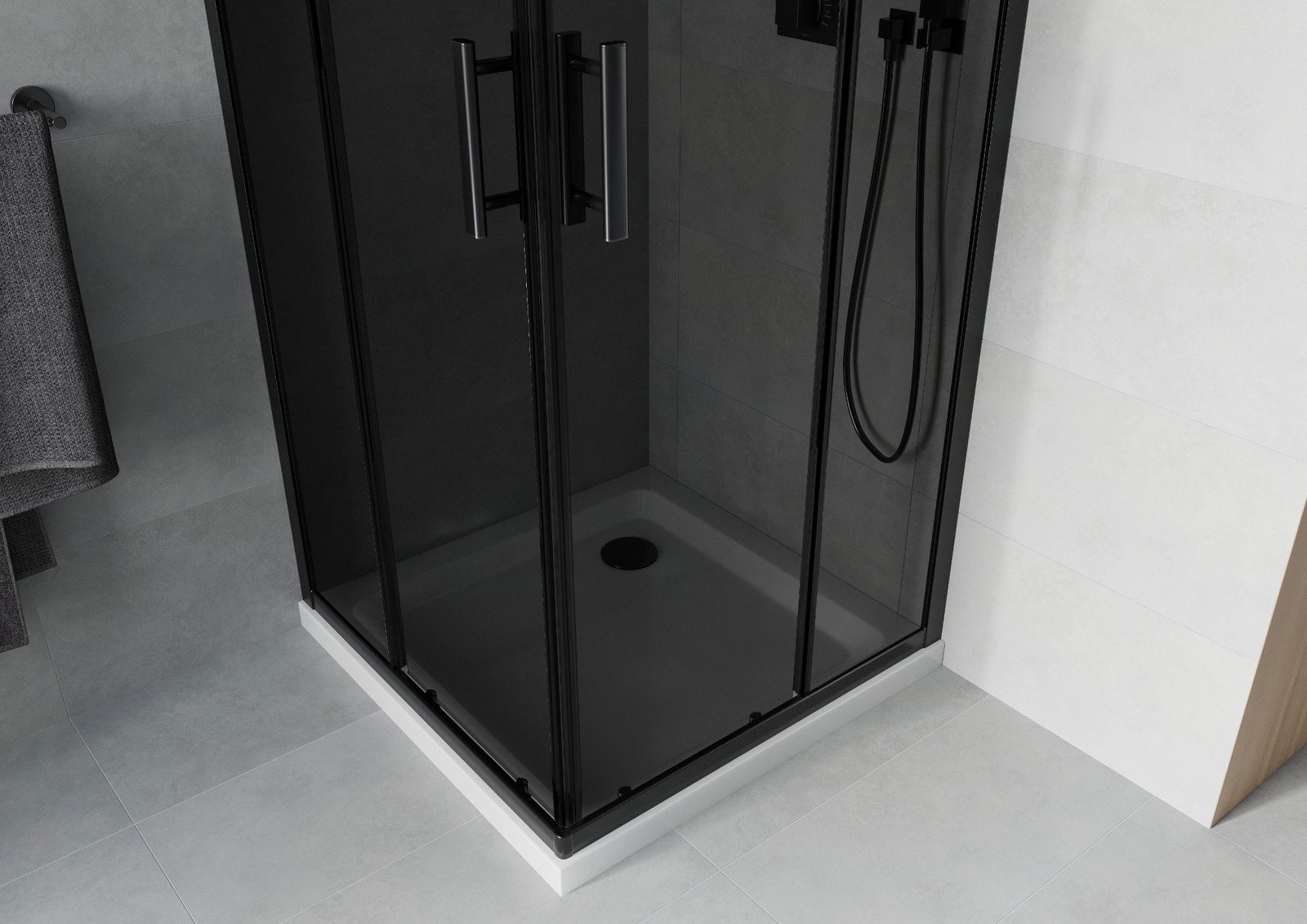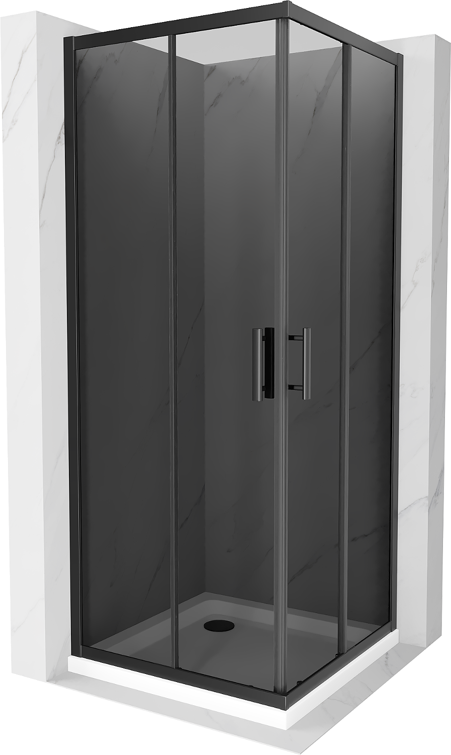 Mexen Rio квадратна душ кабина 80 x 80 см, графит, черна + тава Flat, бяла