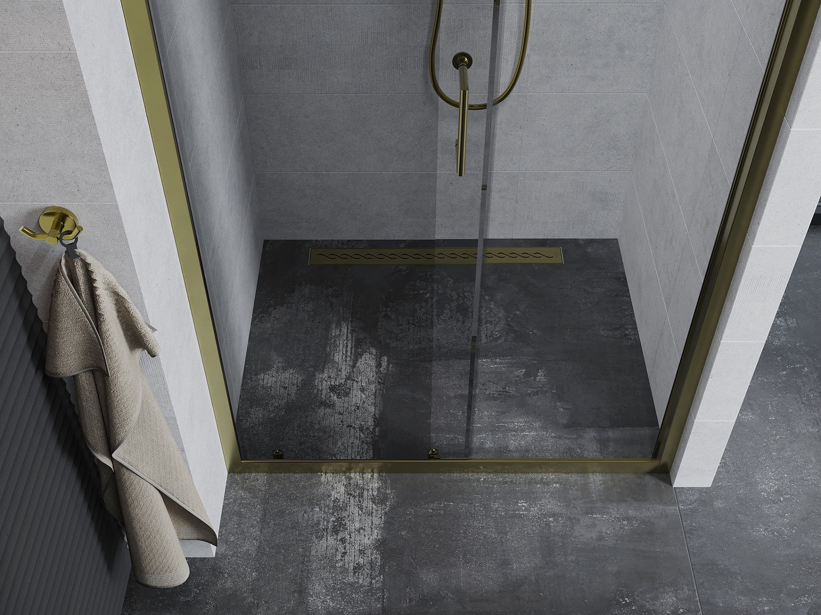 Mexen Apia плъзгащи се душ врати 120 см, прозрачни, златисти - 845-120-000-50-00