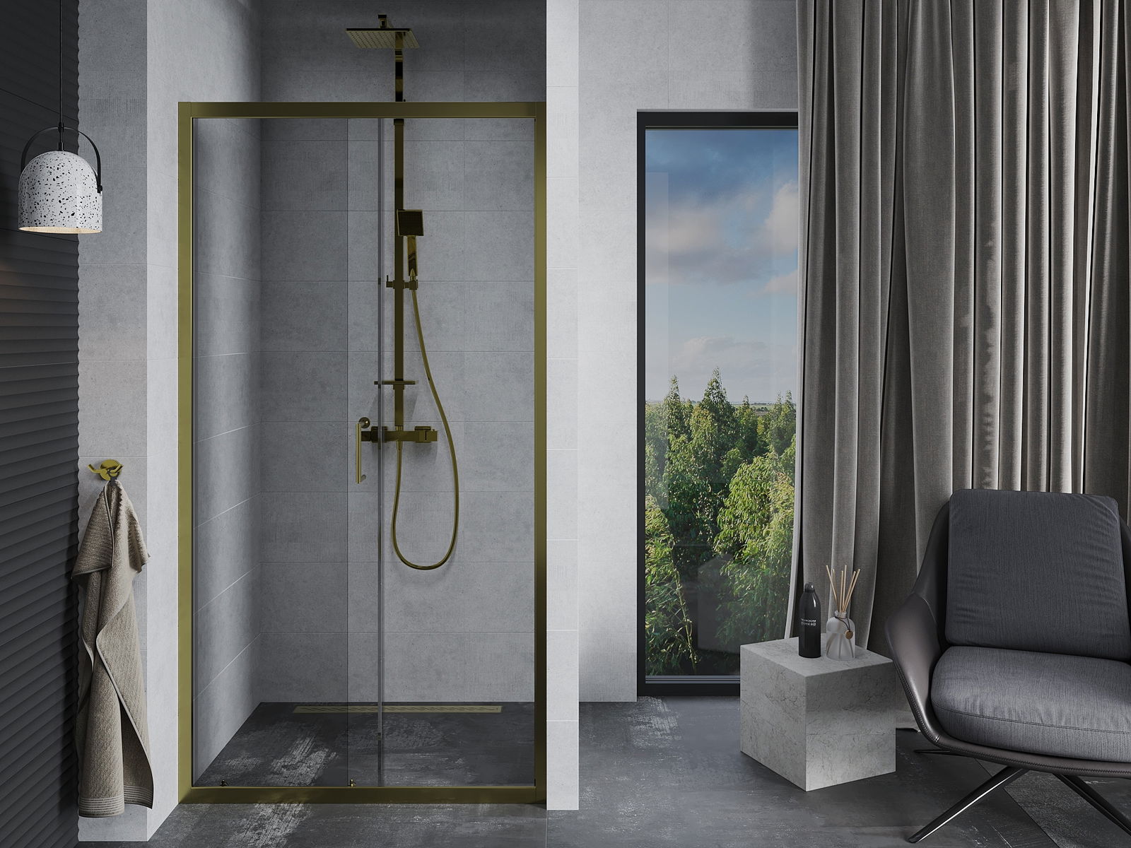 Mexen Apia плъзгаща се душ врата 140 см, прозрачна, златна - 845-140-000-50-00