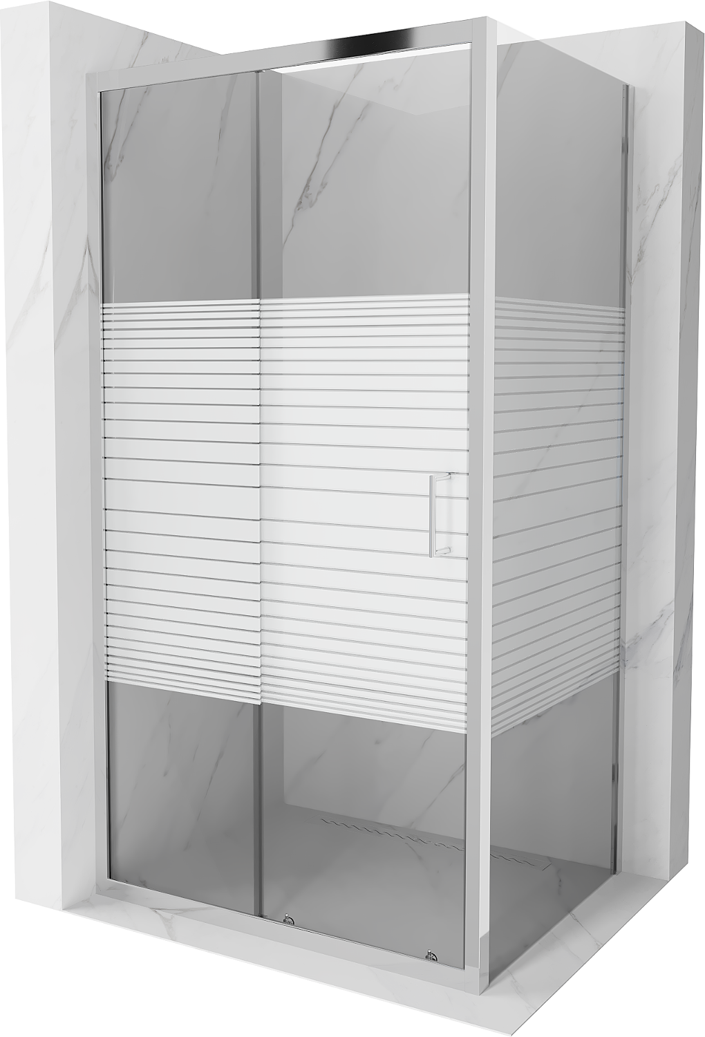 Mexen Apia плъзгаща се душ кабина 135 x 100 см, бели ивици, хром - 840-135-100-01-20