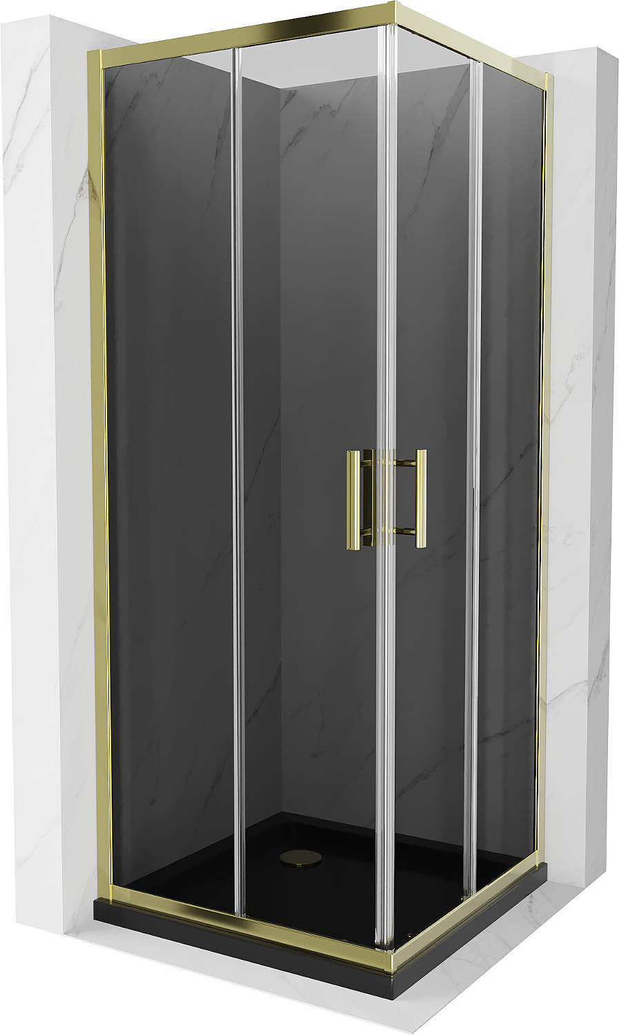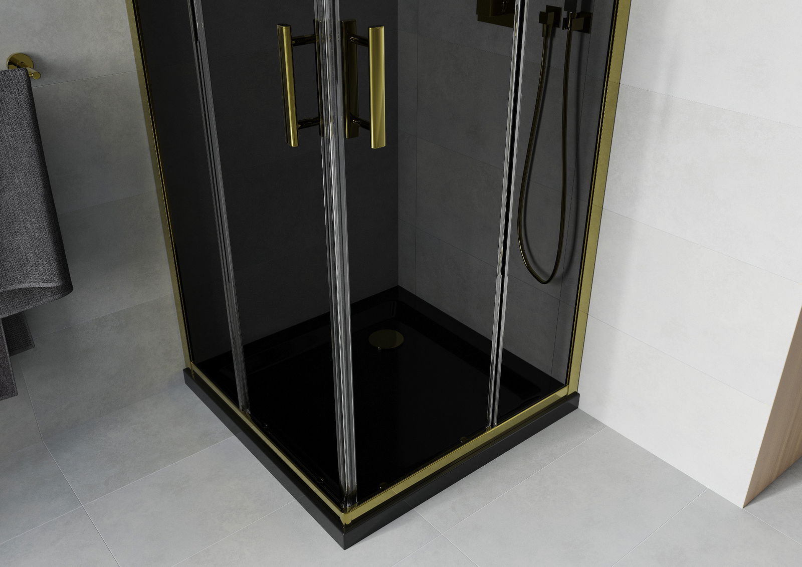 Mexen Rio квадратна душ кабина 70 x 70 см, графит, златна + корито Flat, черно - 860-070-070-50-40-4070G