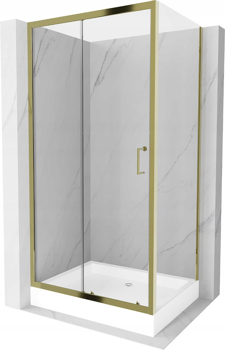 Mexen Apia плъзгаща се душ кабина 120 x 90 cm, прозрачна, златиста + поддушово корито Rio - 840-120-090-50-00-4510