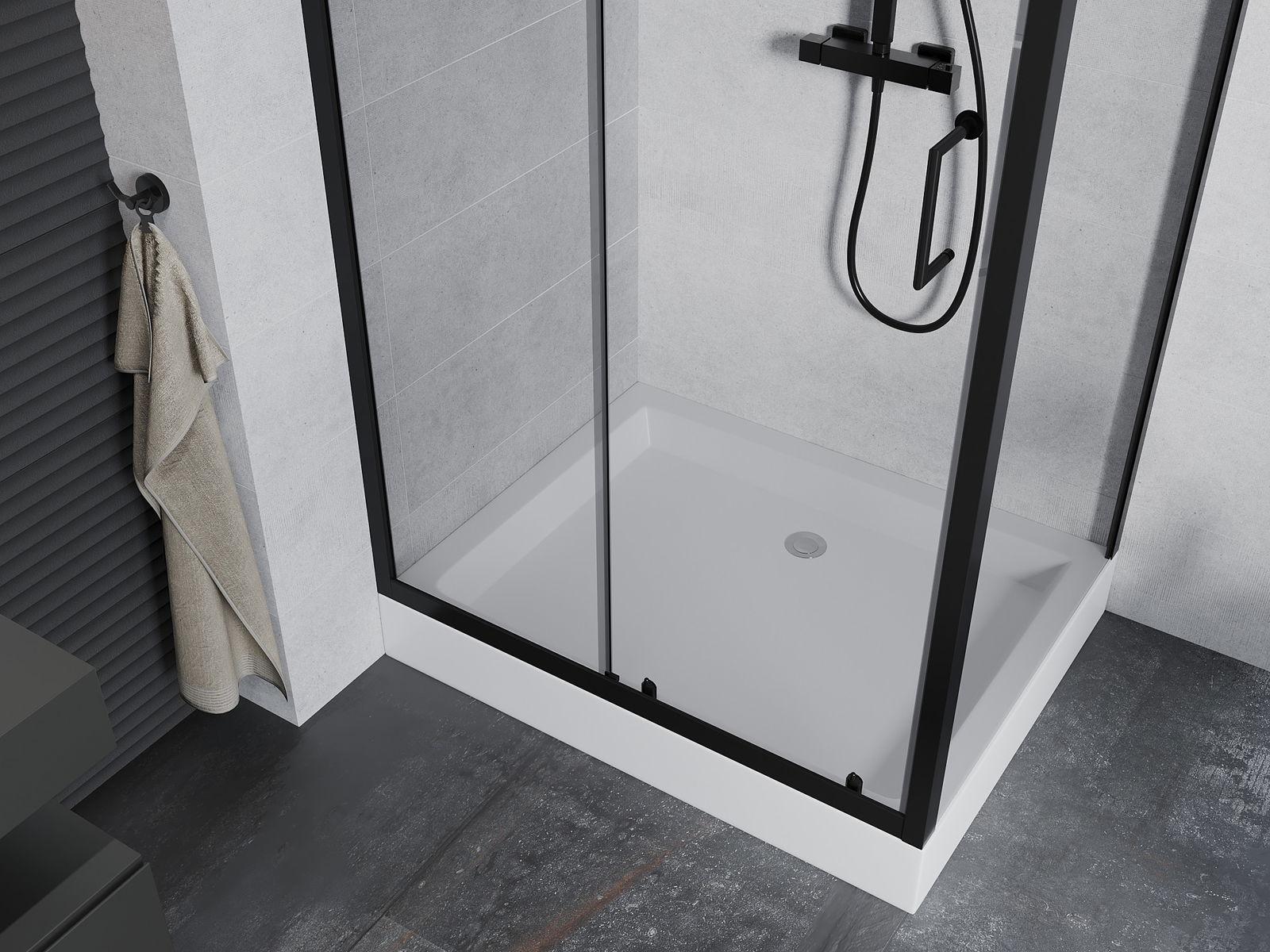 Mexen Apia плъзгаща се душ кабина 100 x 80 см, прозрачна, черна + корито Rio - 840-100-080-70-00-4510