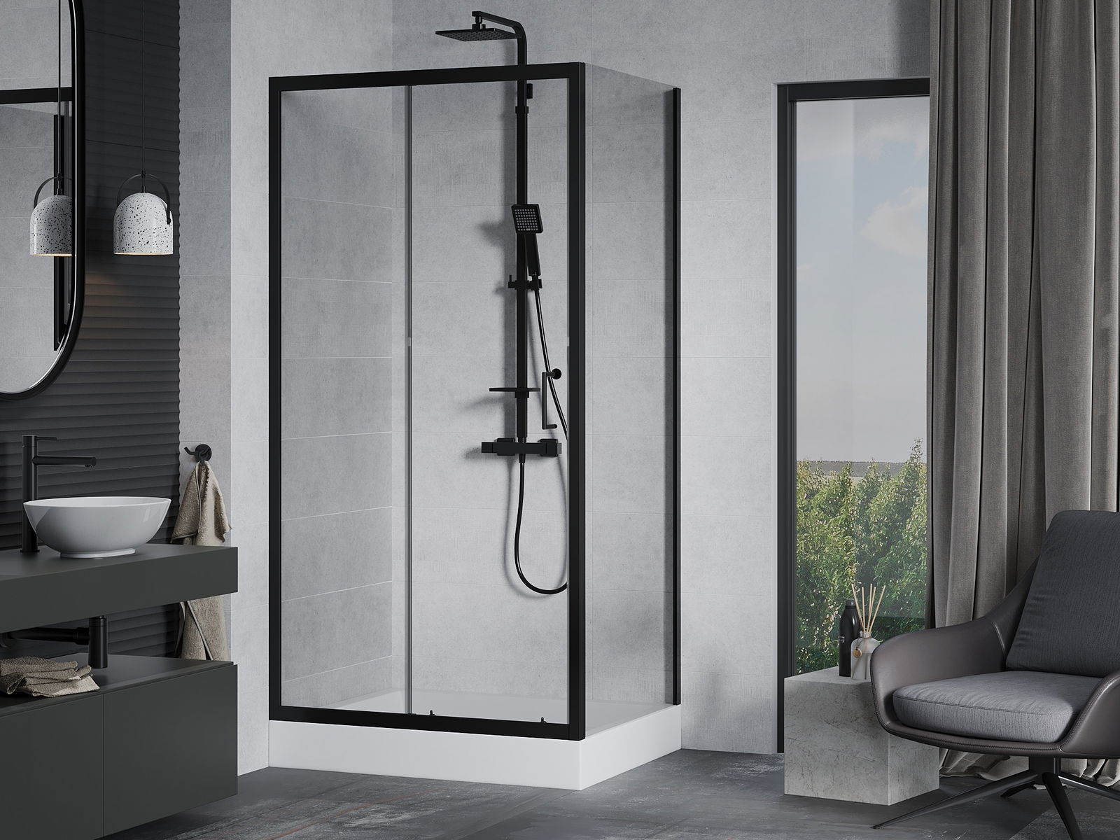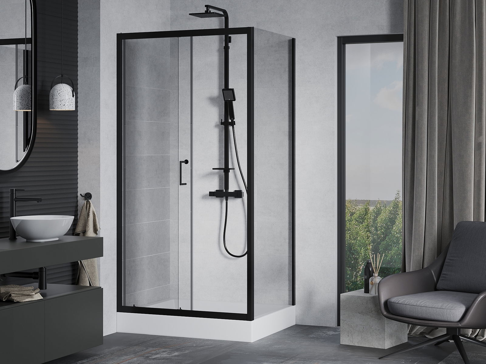 Mexen Rio квадратна душ кабина 90 x 90 см, прозрачна, черна - 860-090-090-70-00