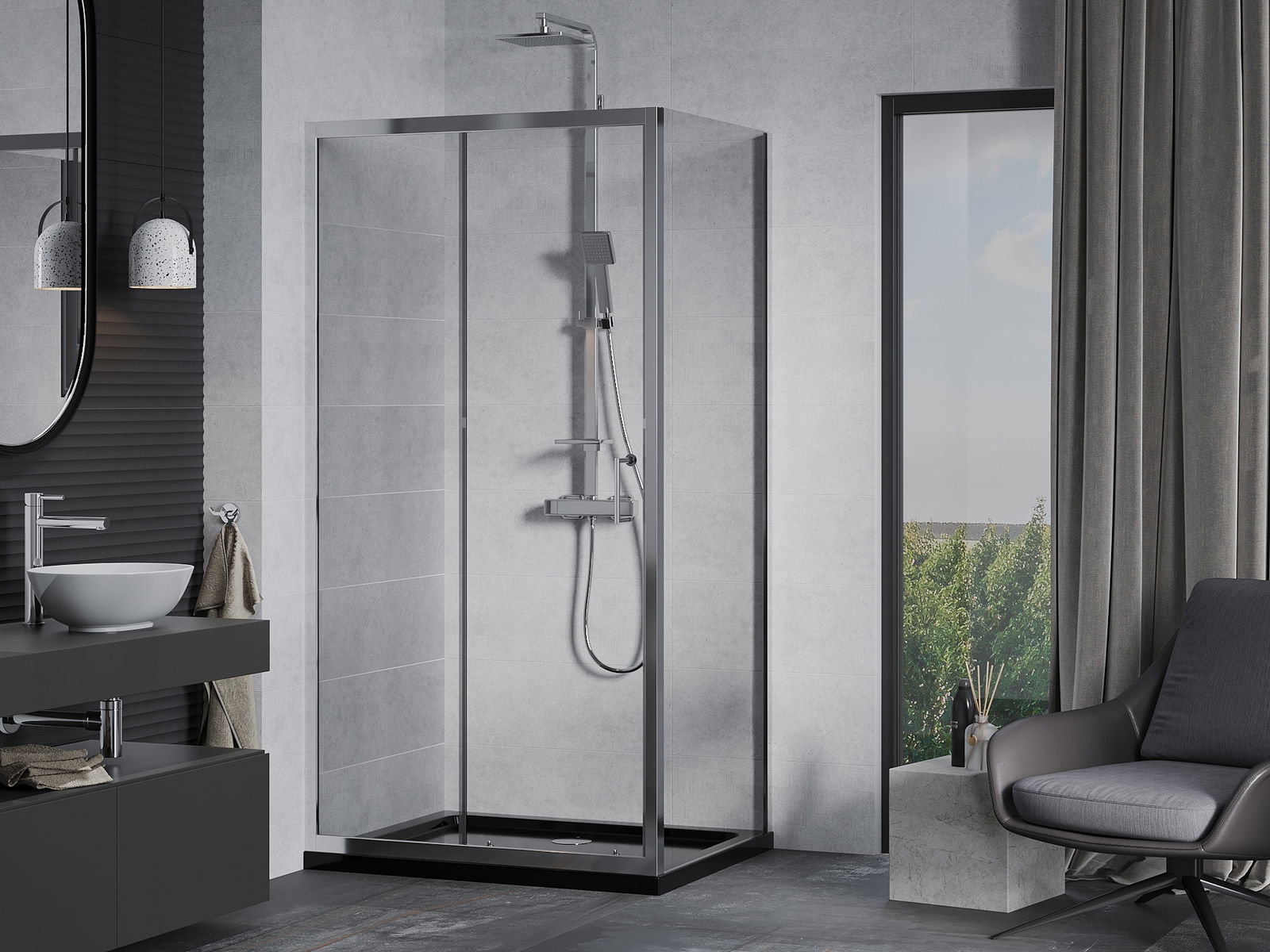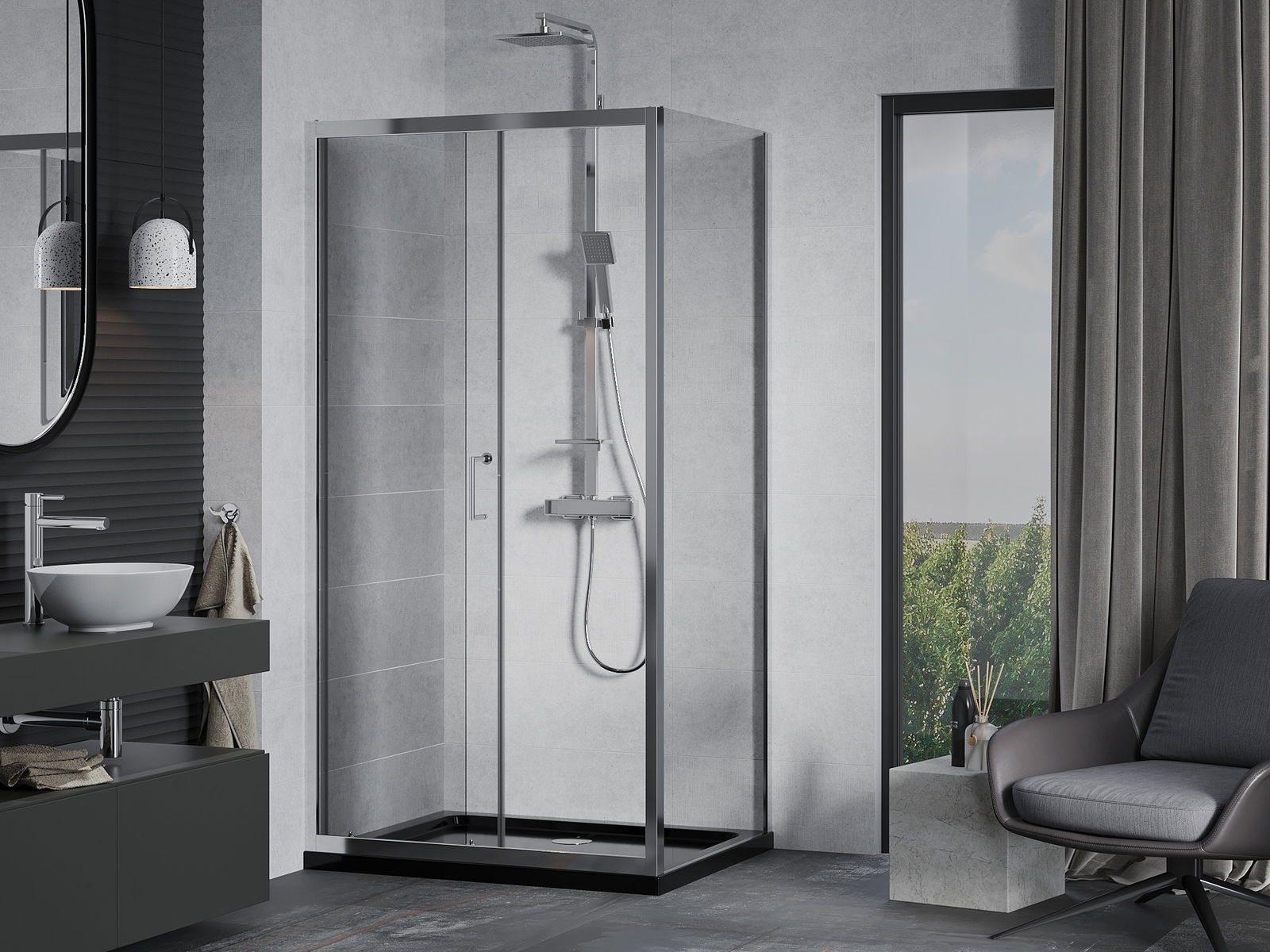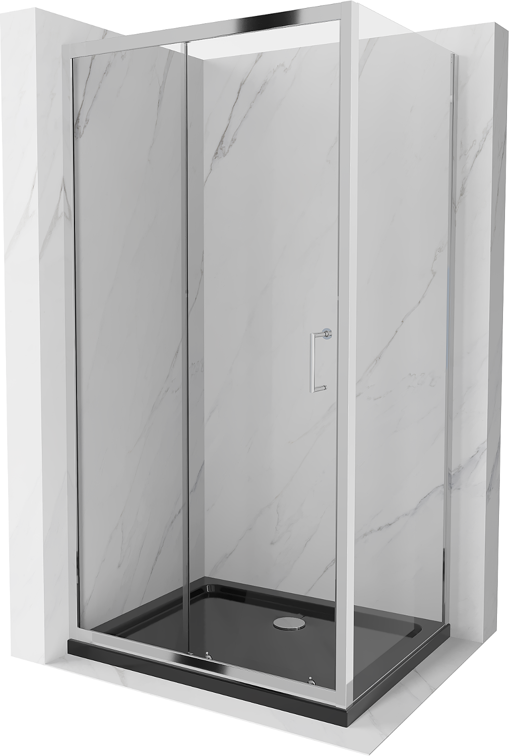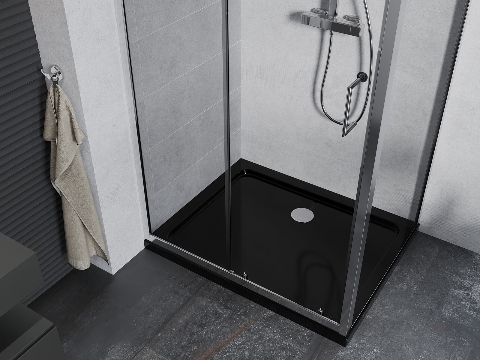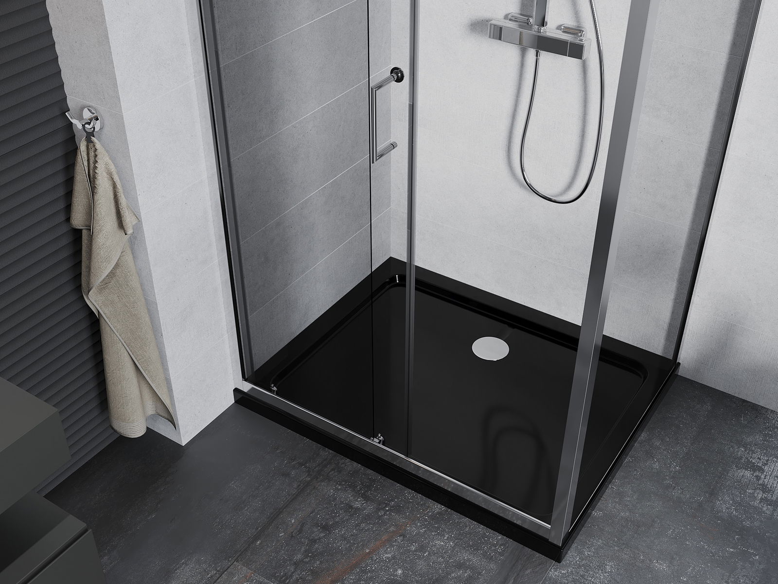Mexen Apia плъзгаща се душ кабина 90 x 70 см, прозрачна, хром + плитък душ под, черен - 840-090-070-01-00-4070
