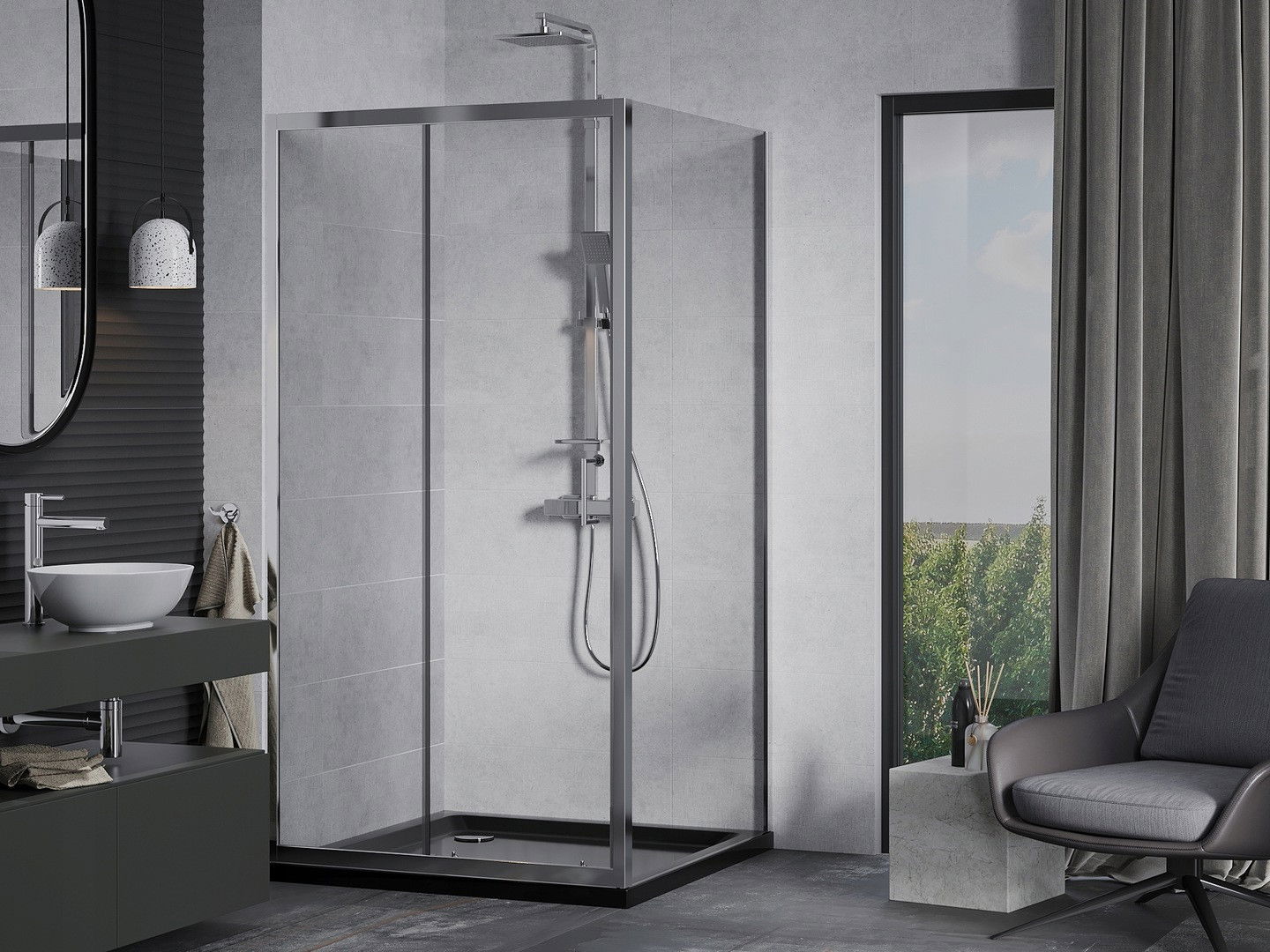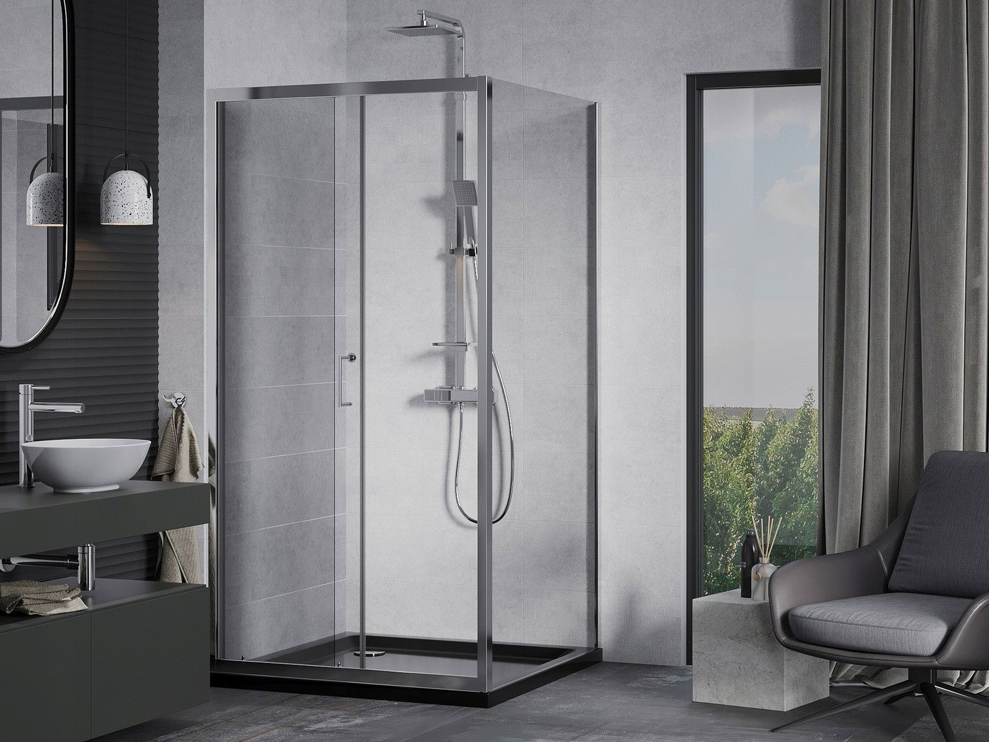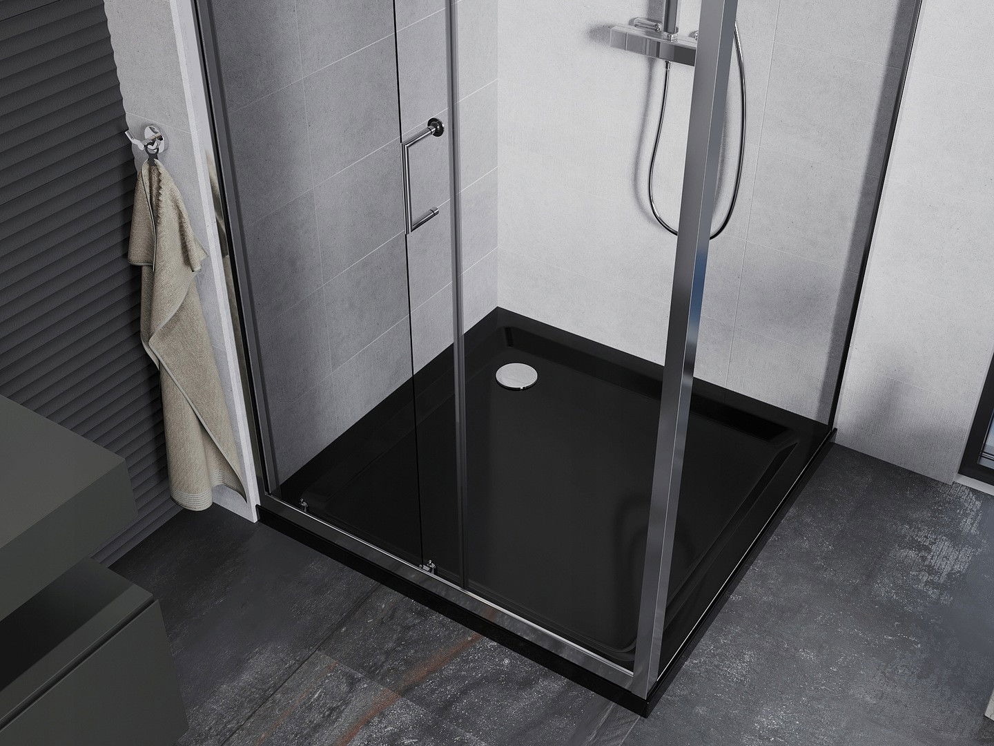 Mexen Apia плъзгаща се душ кабина 100 x 100 cm, прозрачна, хром + поддушово корито Flat, черно - 840-100-100-01-00-4070
