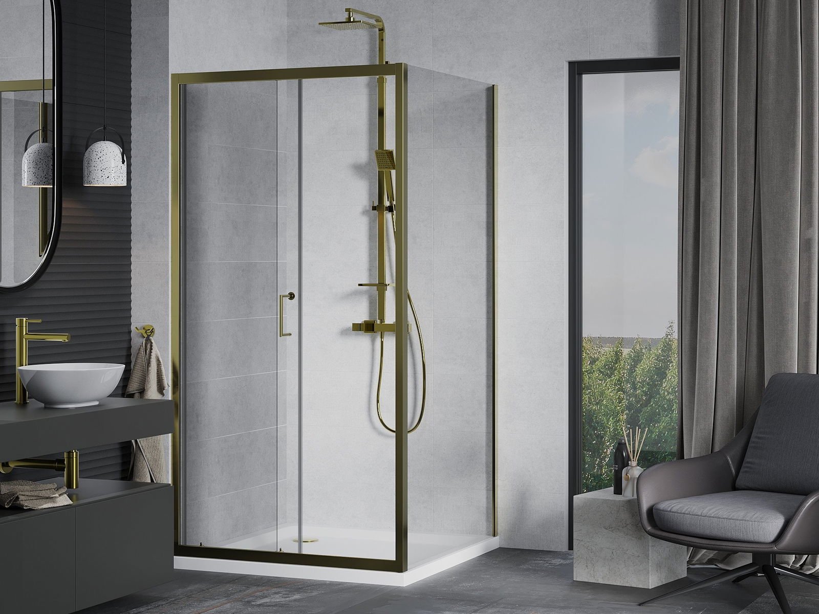 Удобната и практична дръжка е изработена от здрав и устойчив метал. Модерната форма в съчетание с покритието, съответстващо на цвета на профилите, придава на цялото модерен и стилен вид, подчертавайки естетиката на всяка баня.