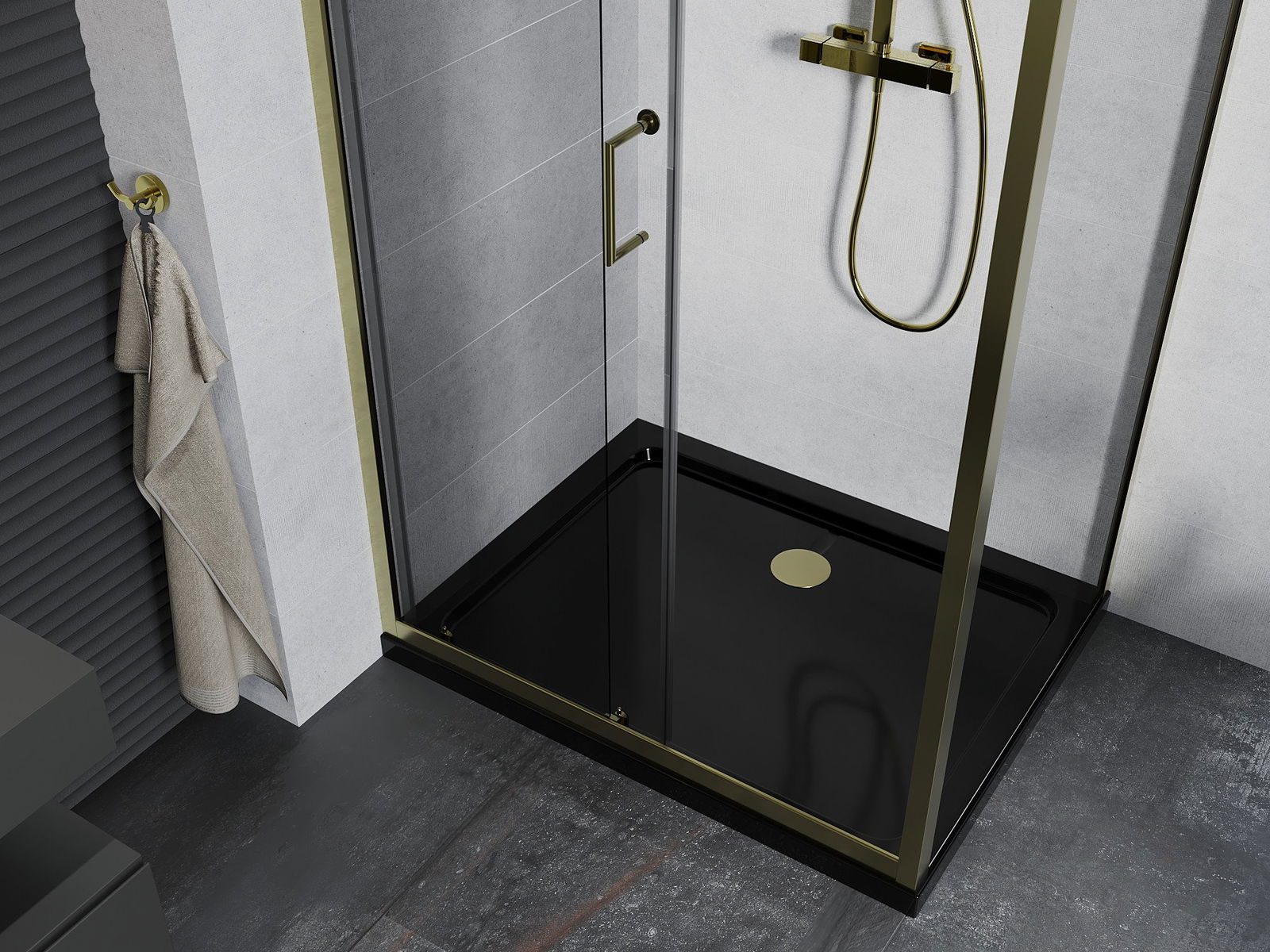 Mexen Apia плъзгаща се душ кабина 110 x 70 см, прозрачна, златна + корито Flat, черно - 840-110-070-50-00-4070G