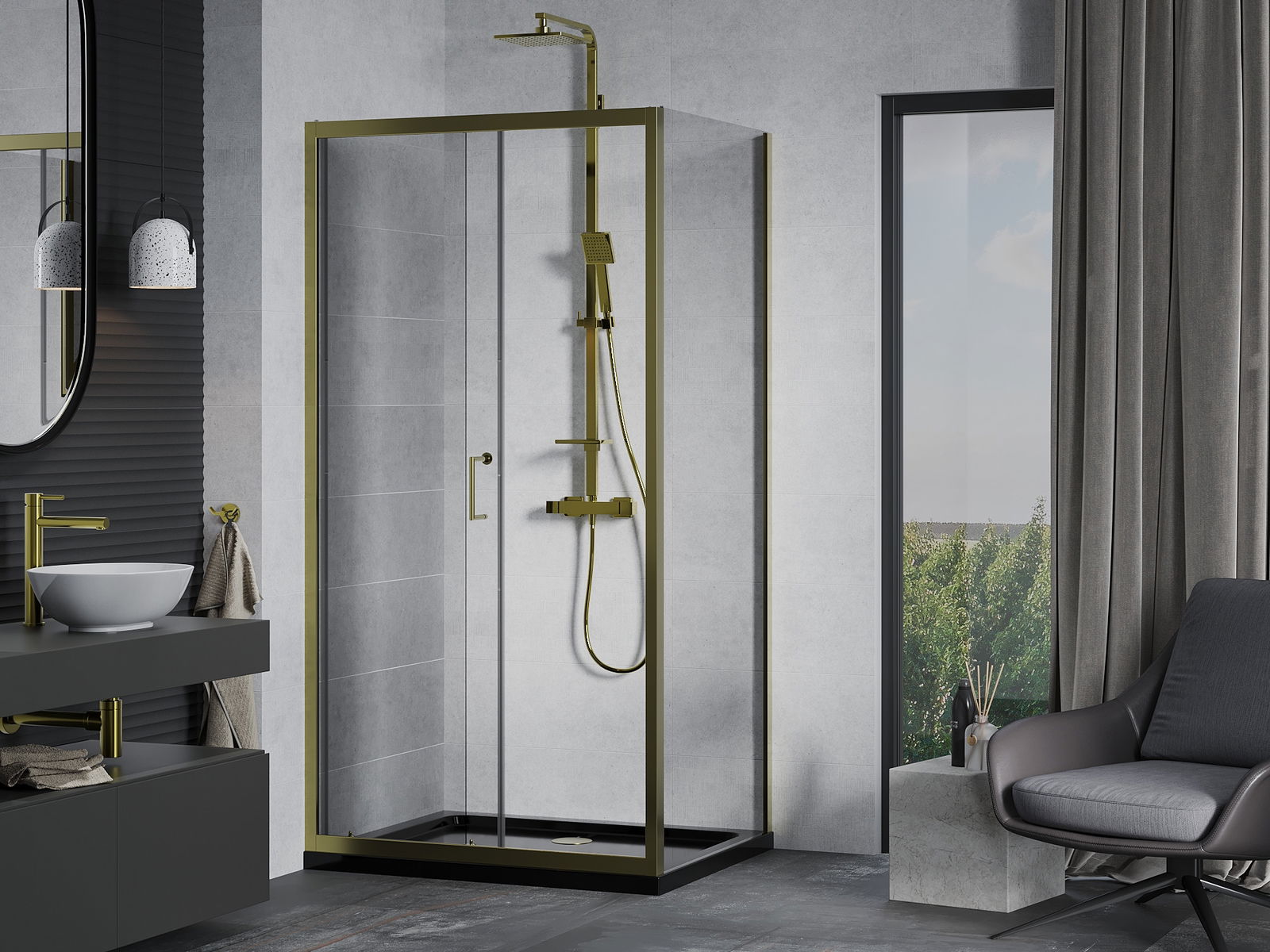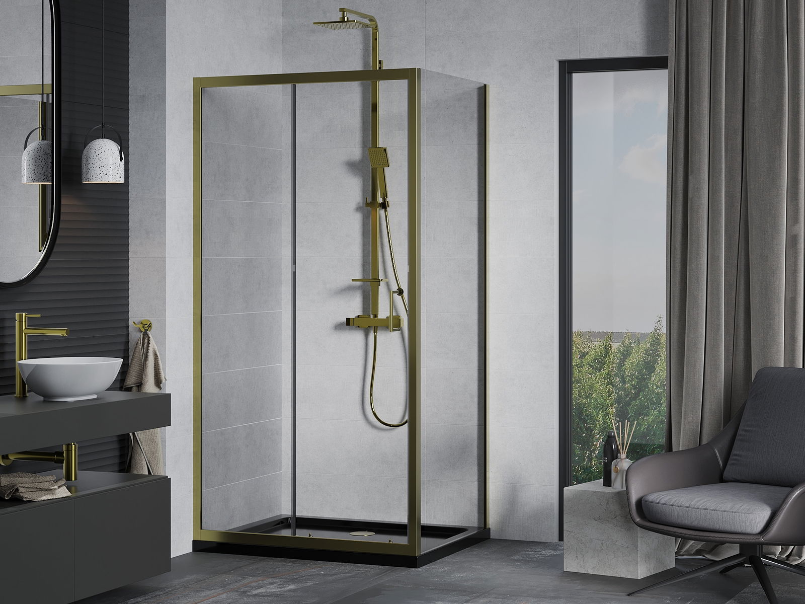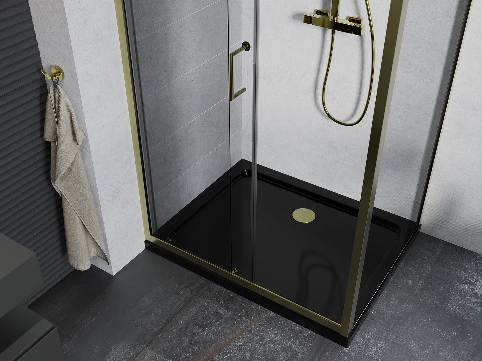 Mexen Apia плъзгаща се душ кабина 140 x 80 см, прозрачна, златиста + душ кабина