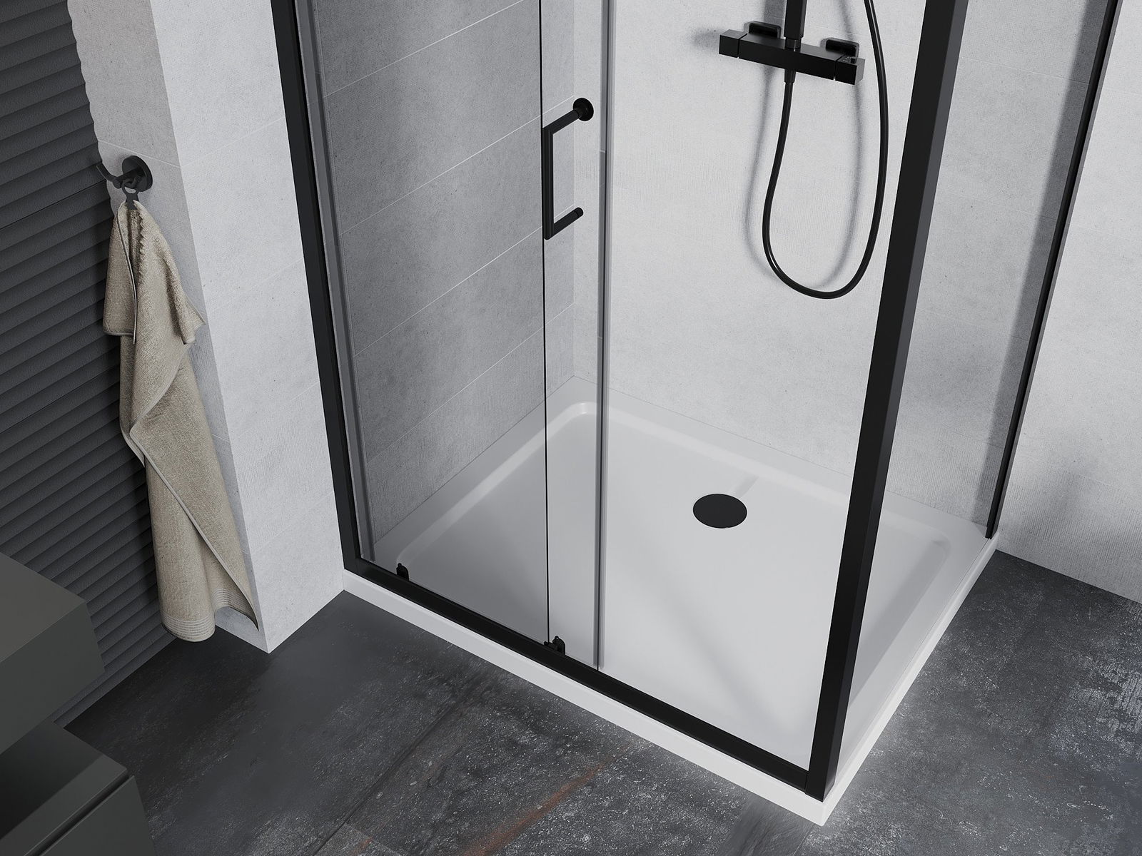 Mexen Apia разтегателна душ кабина 100 x 90 см, прозрачна, черна + душ корито