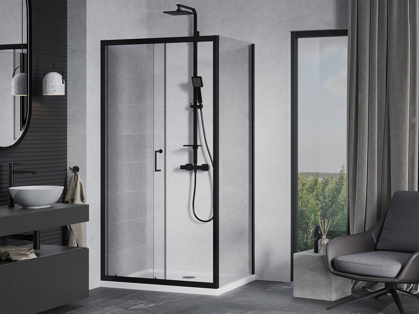 Mexen Rio квадратна душ кабина 90 x 90 см, прозрачна, черна - 860-090-090-70-00