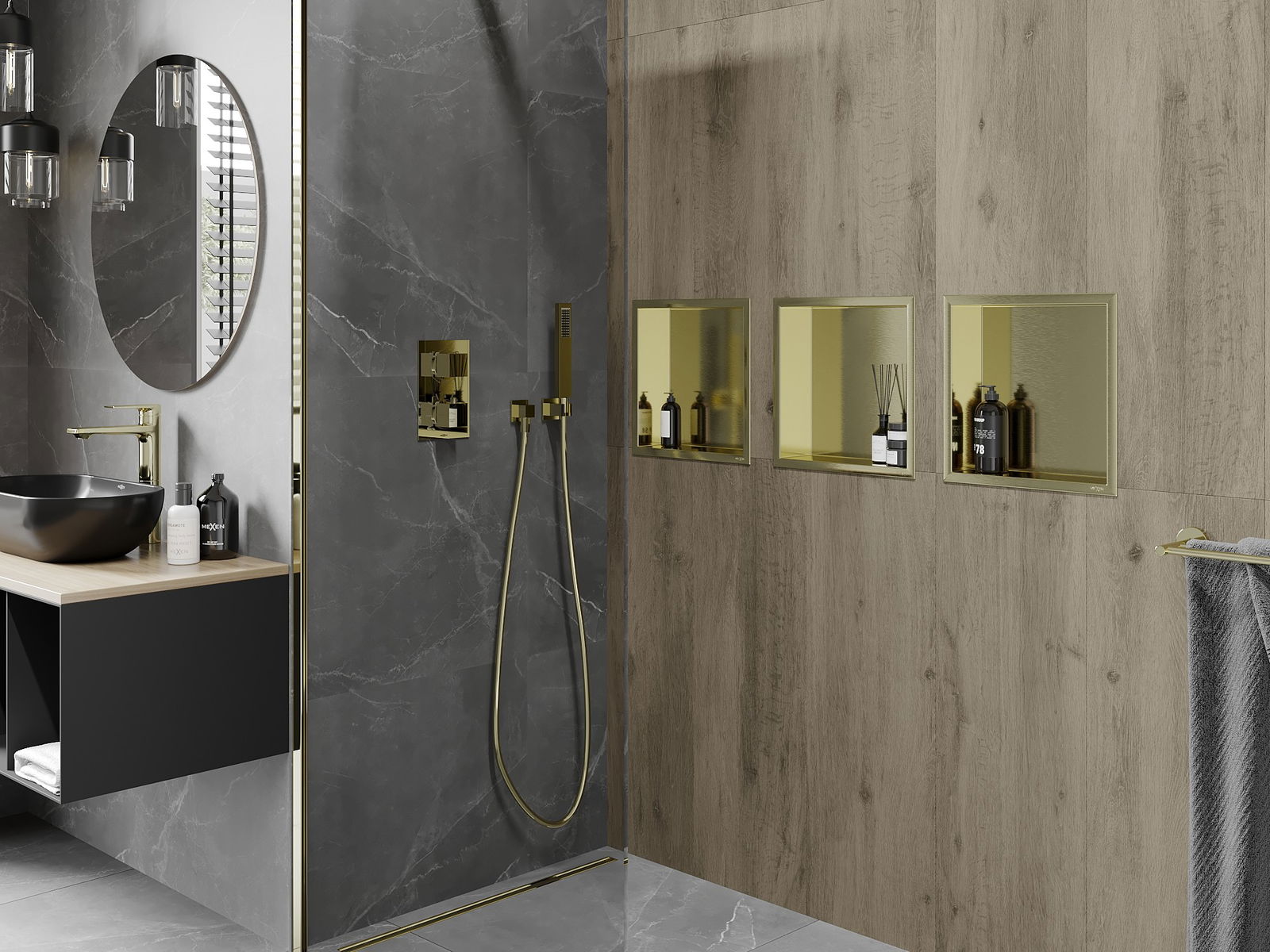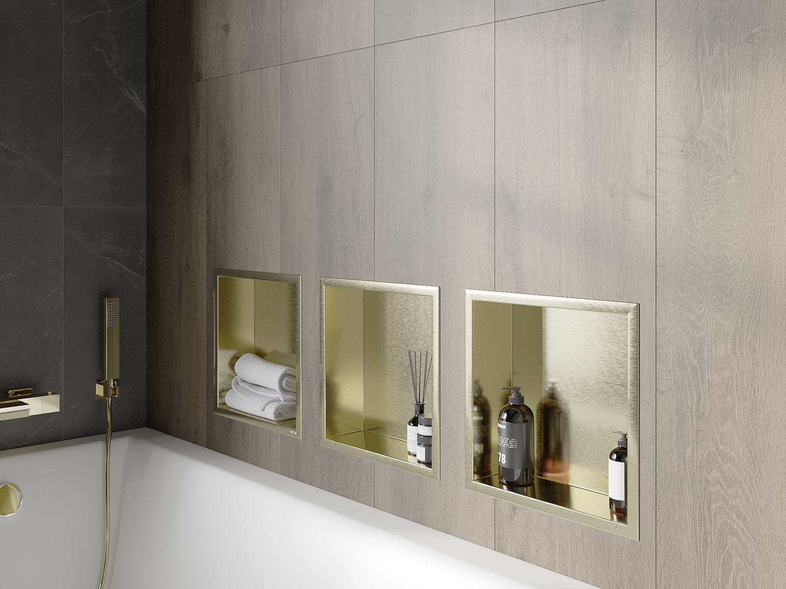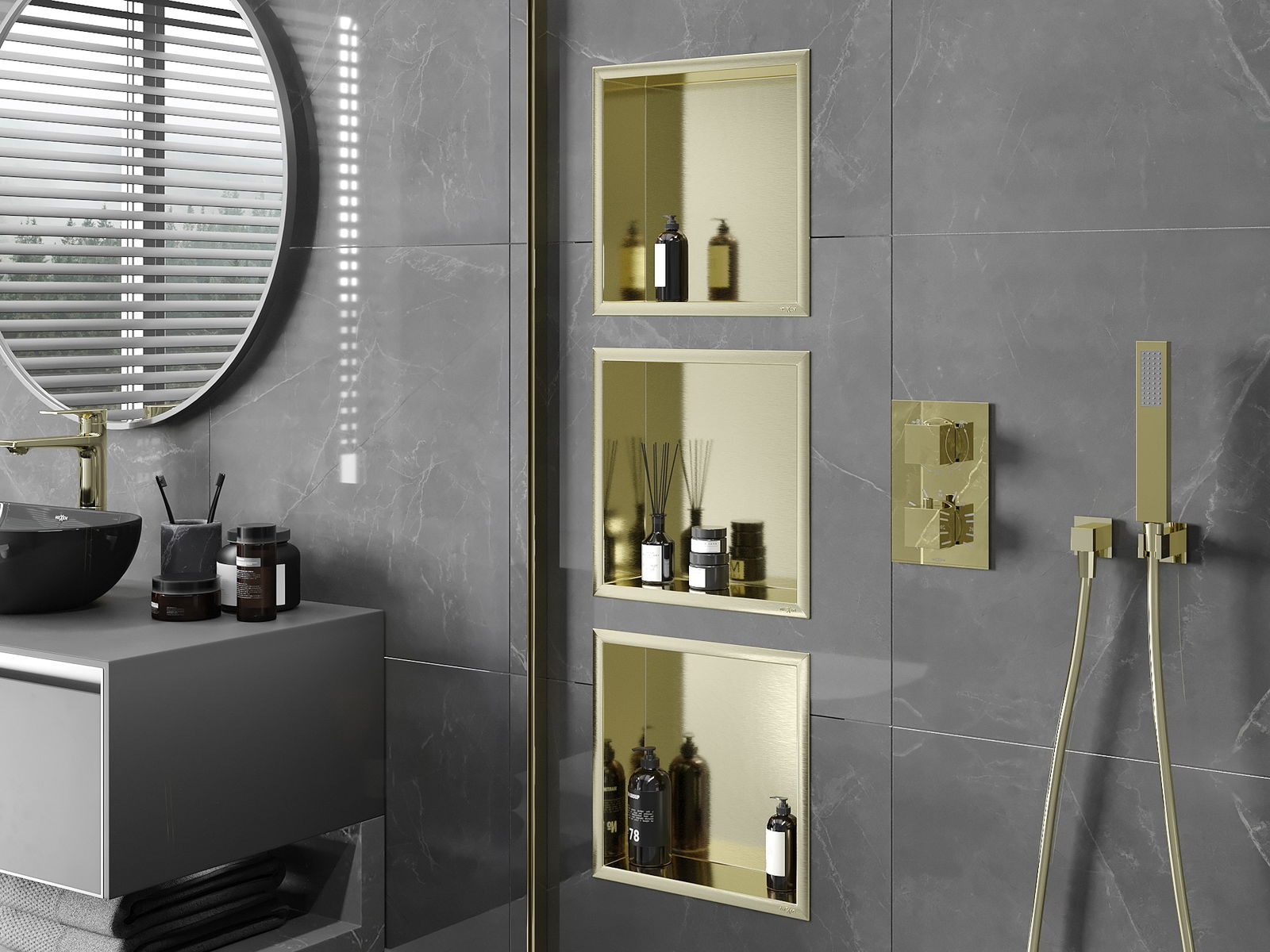 Mexen X-Wall-R нишева полица с яка 30 x 30 см, златисто четкана - 1950303010