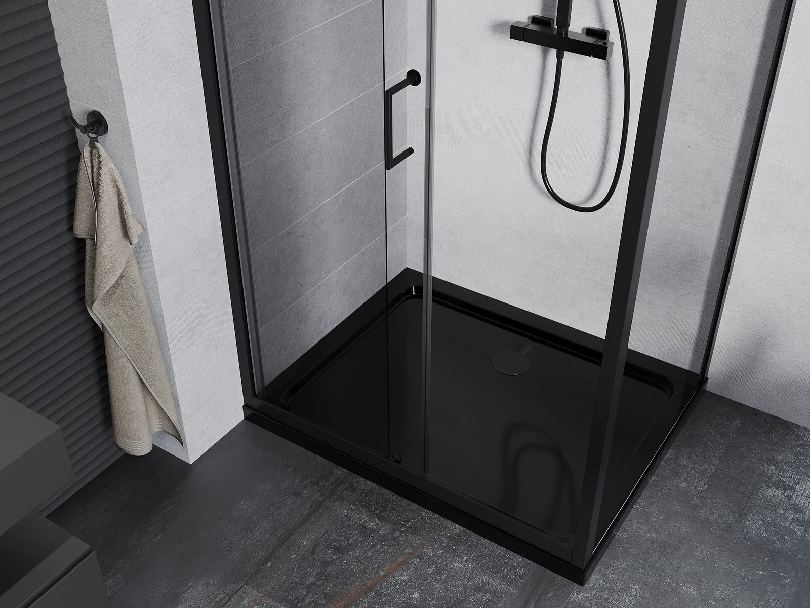 Удобната и удобна дръжка беше направена от траен и устойчив метал. Модната форма, комбинирана с покритие, съобразено с цвета на профилите, придава на целия модерен и стилен вид, подчертавайки естетиката на всяка баня.