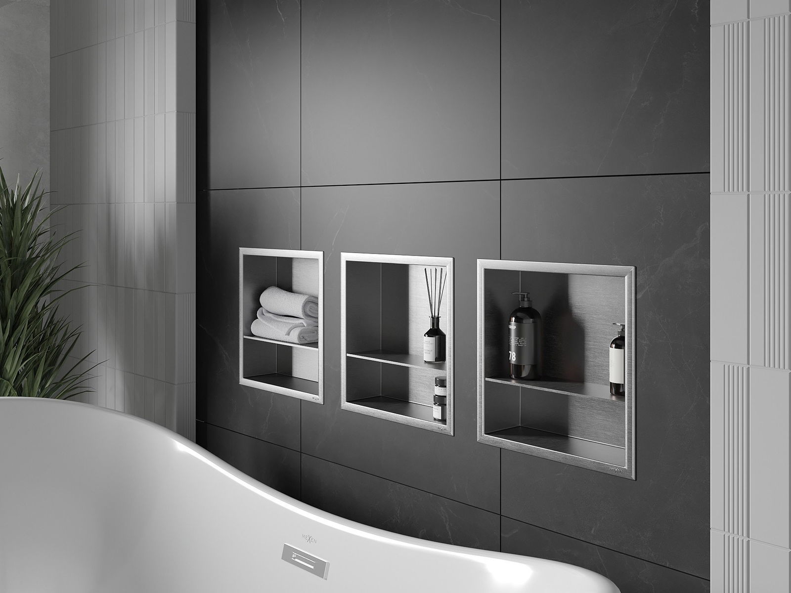 Mexen X-Wall-R нишова полица с яка и рафт 30 x 30 cm, инокс - 1910303010S