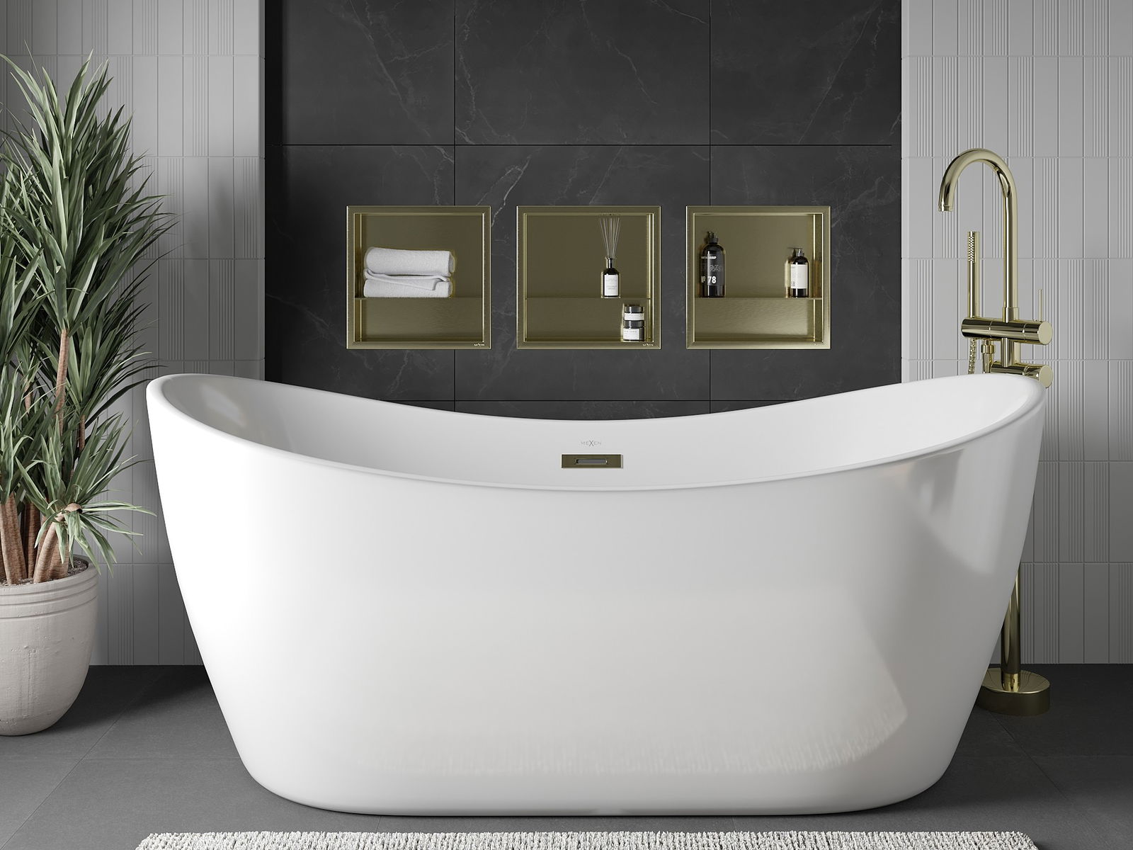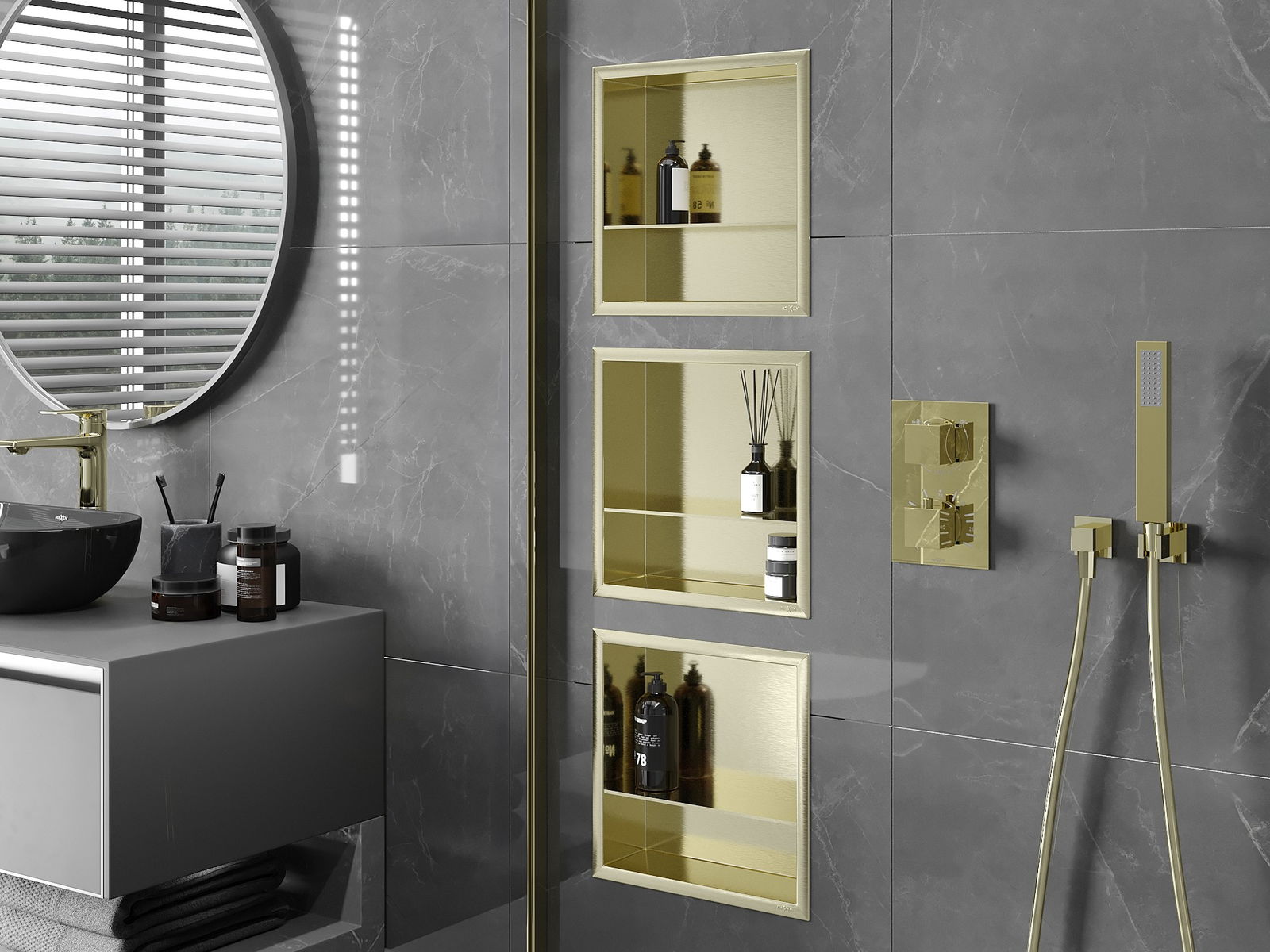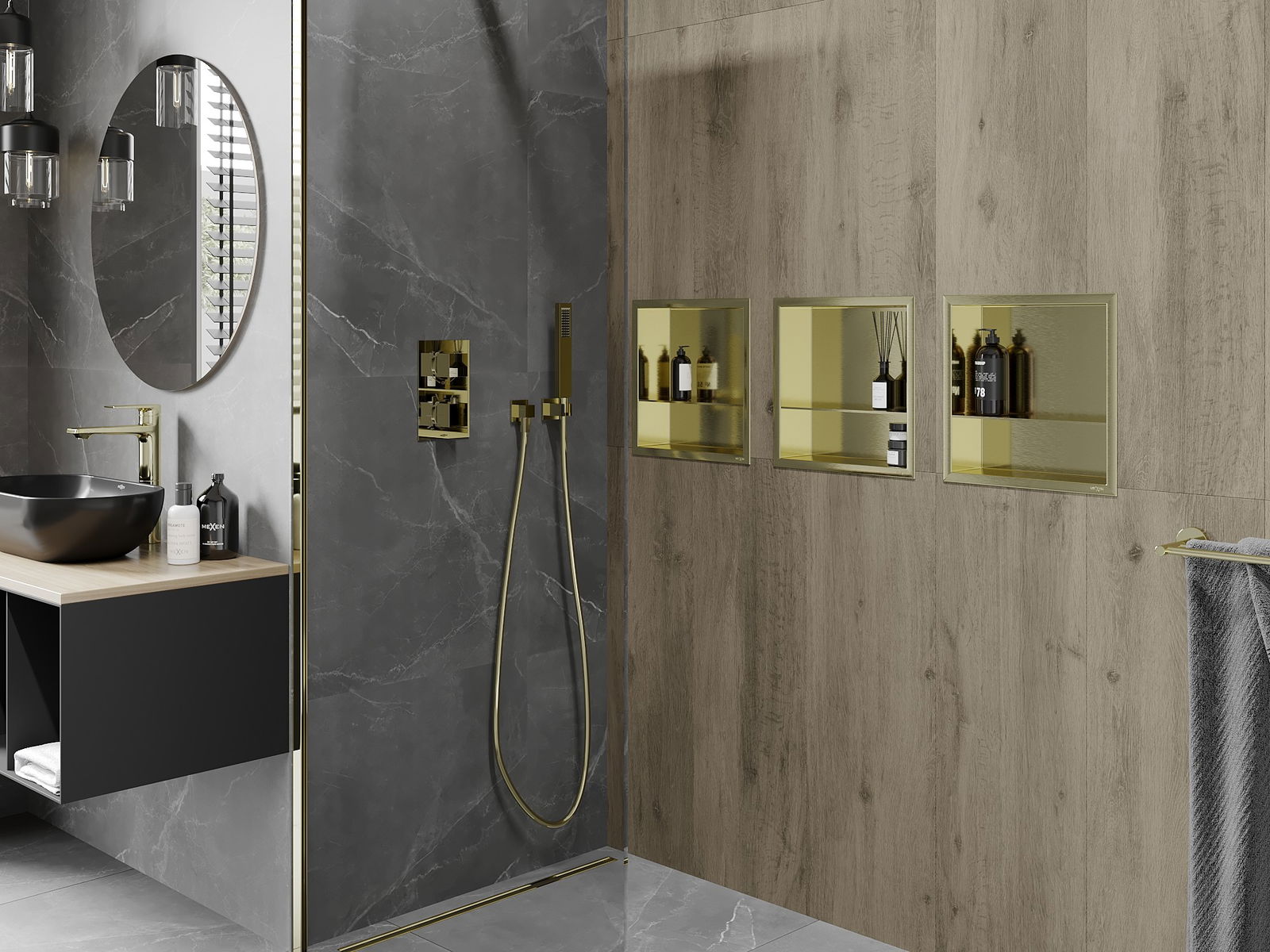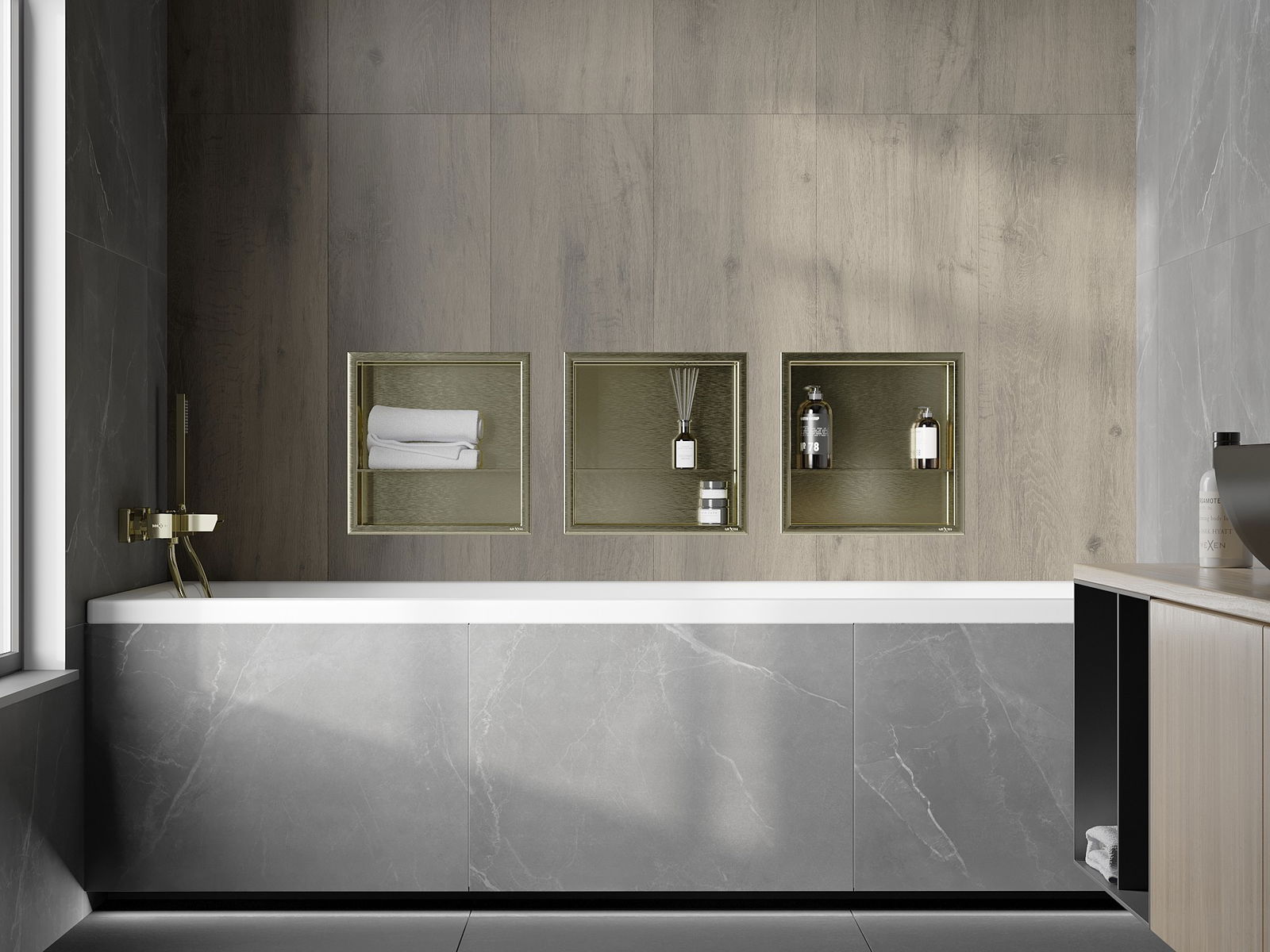 Mexen X-Wall-R нишева полица с яка и полица 30 x 30 см, златна четкована - 1950303010S
