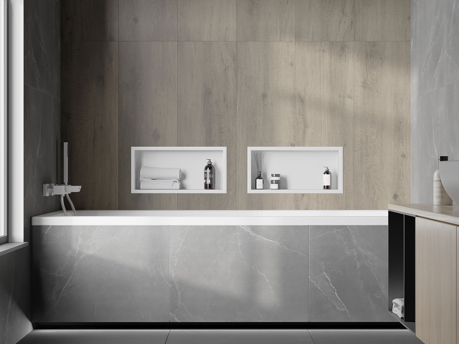 Възможност за монтаж в стената или в специално подготвена сграда. Това е изключително модерно и функционално решение, което ви позволява да спестите място и да съпоставите продукта с естетиката на интериора и да създадете кохерентен състав.