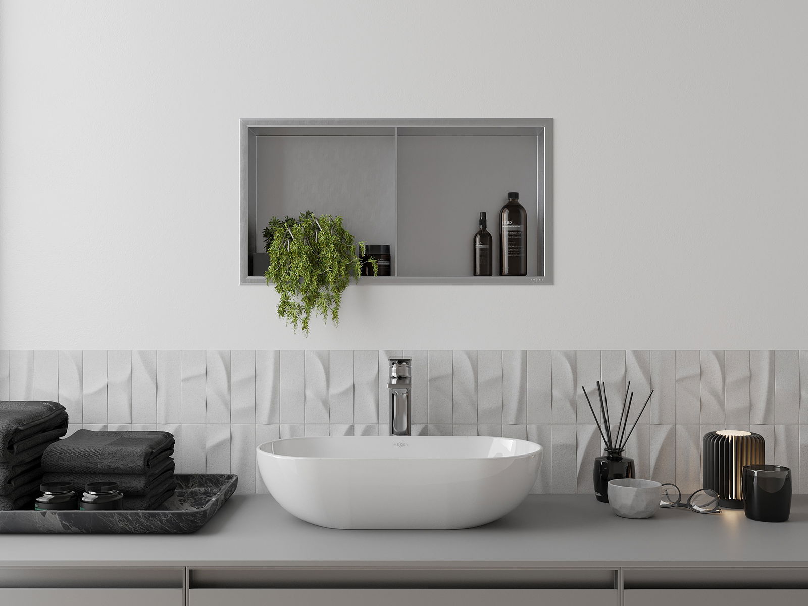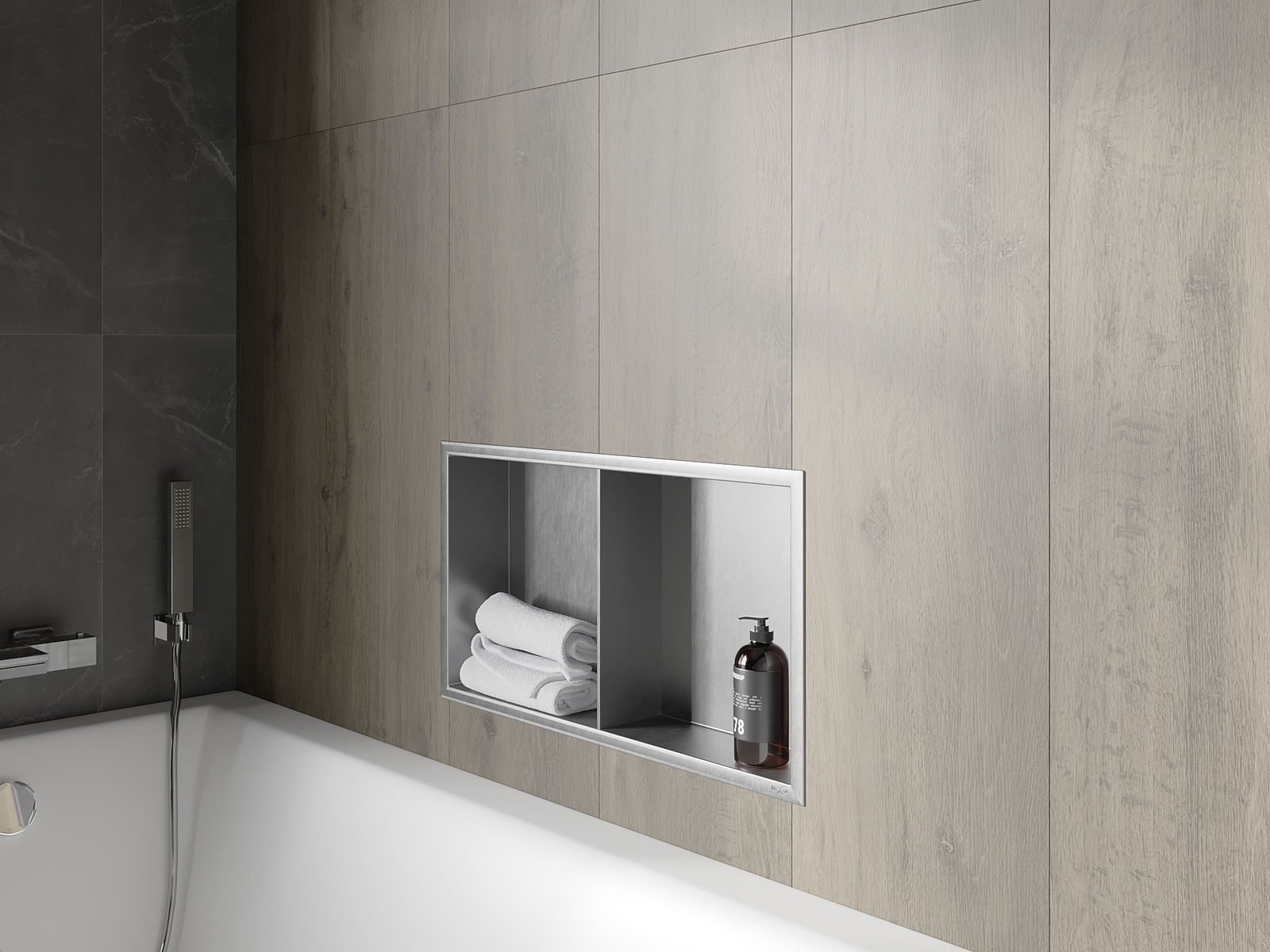Mexen X-Wall-R вградена полица с борд и полица 60 x 30 см, инокс - 1910603010S