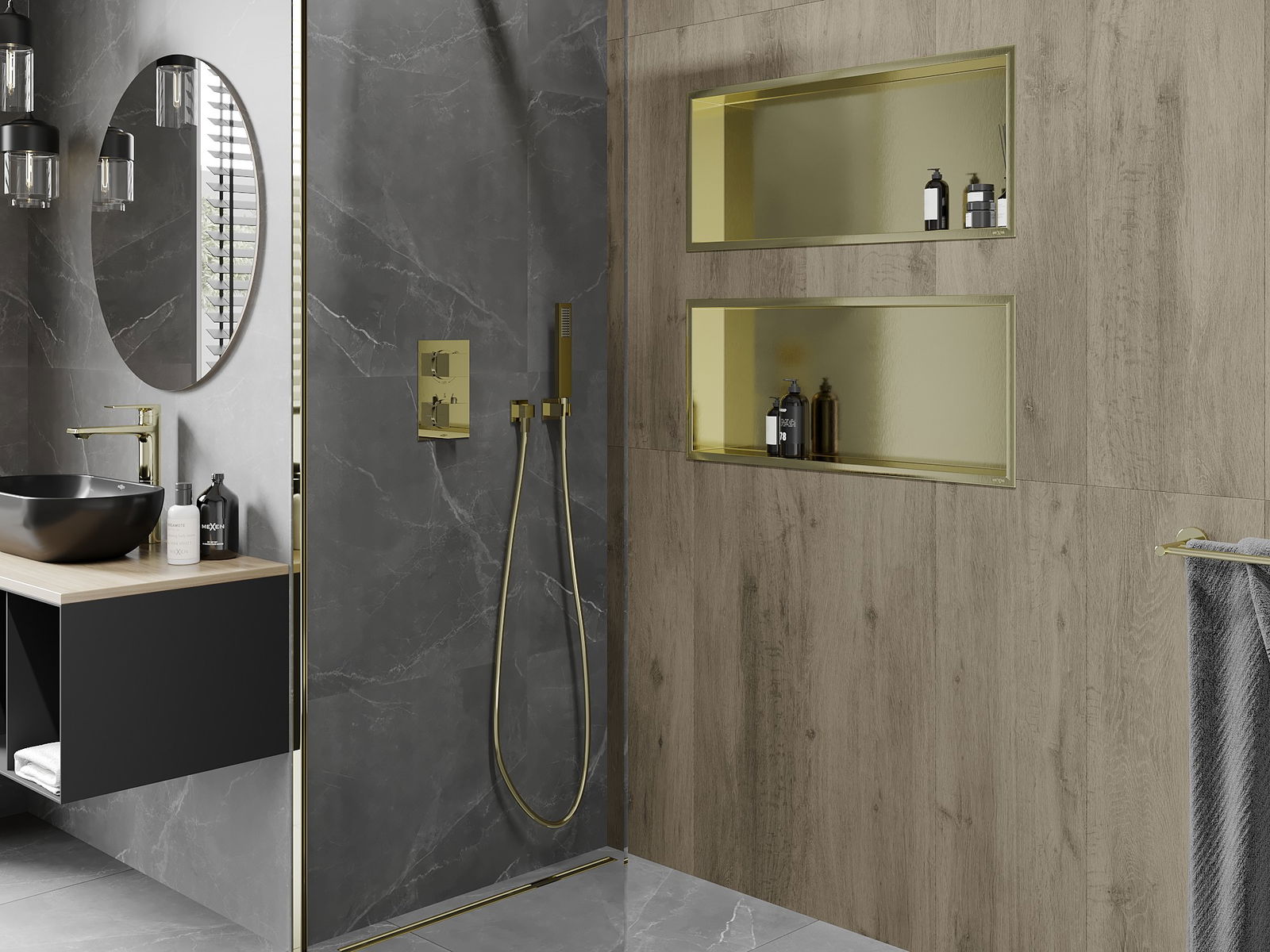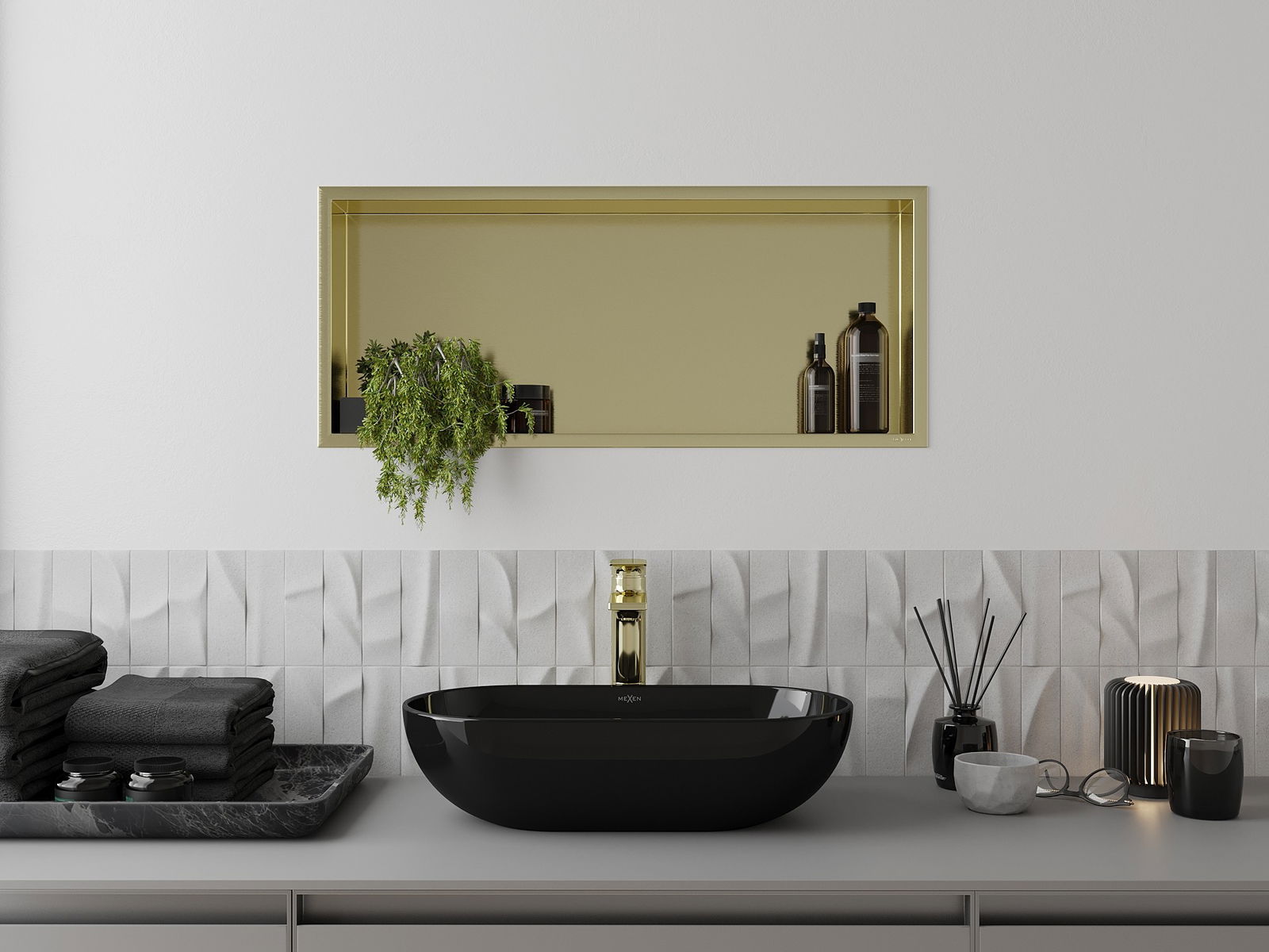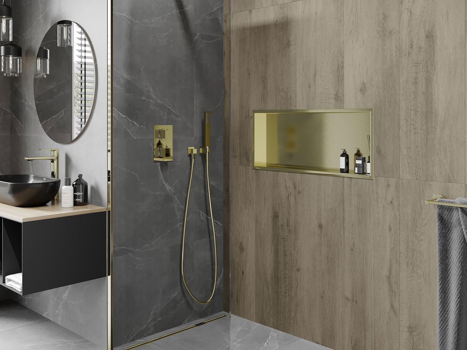 Mexen X-Wall-R нишева полица с маншет 75 x 30 cm, златна четкана - 1950753010