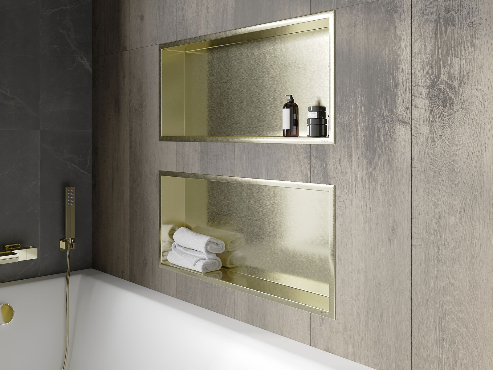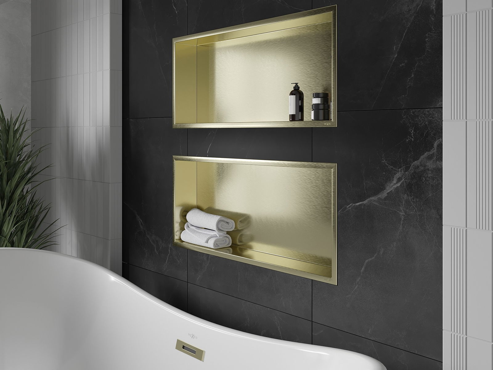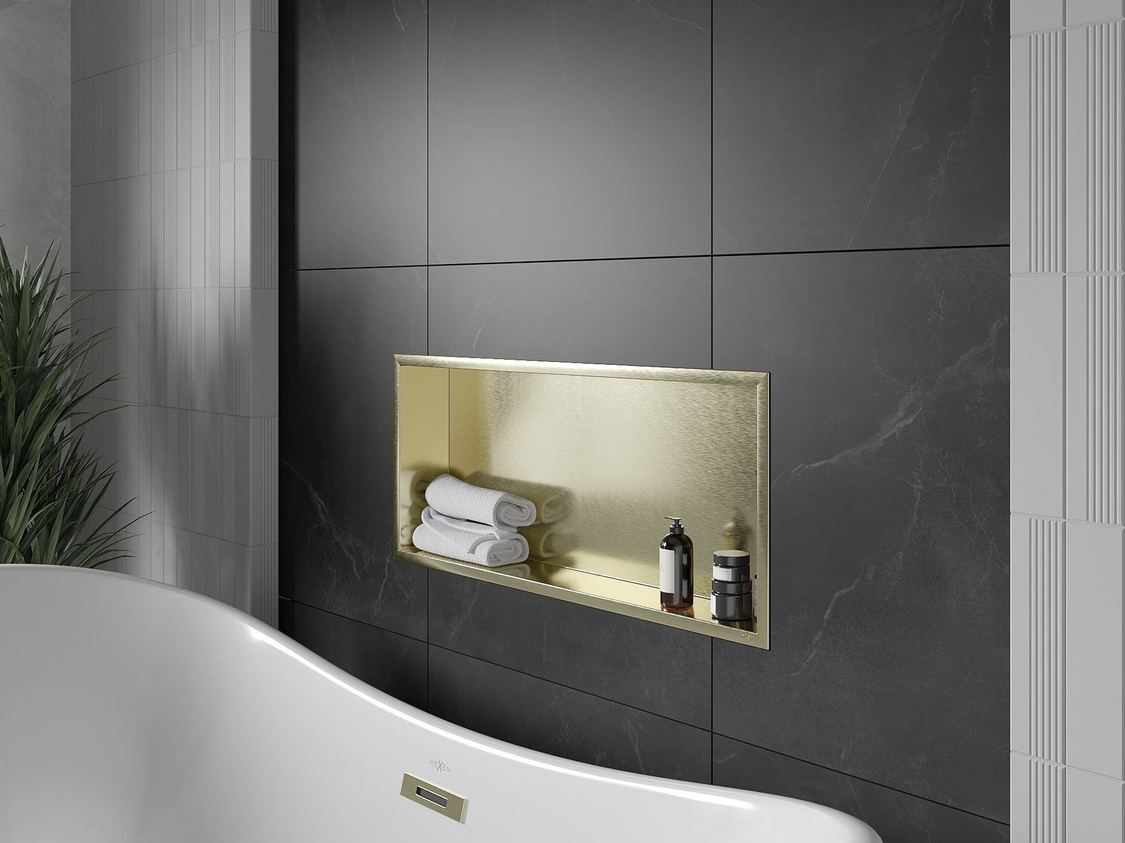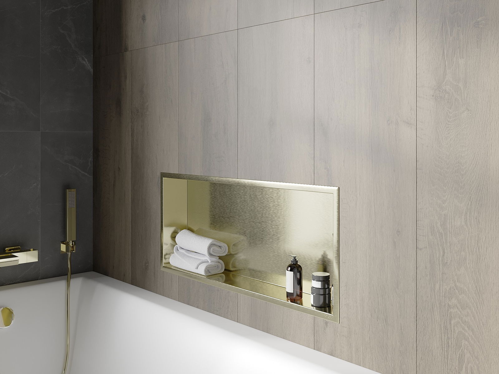 Mexen X-Wall-R нишева полица с маншет 75 x 30 cm, златна четкана - 1950753010