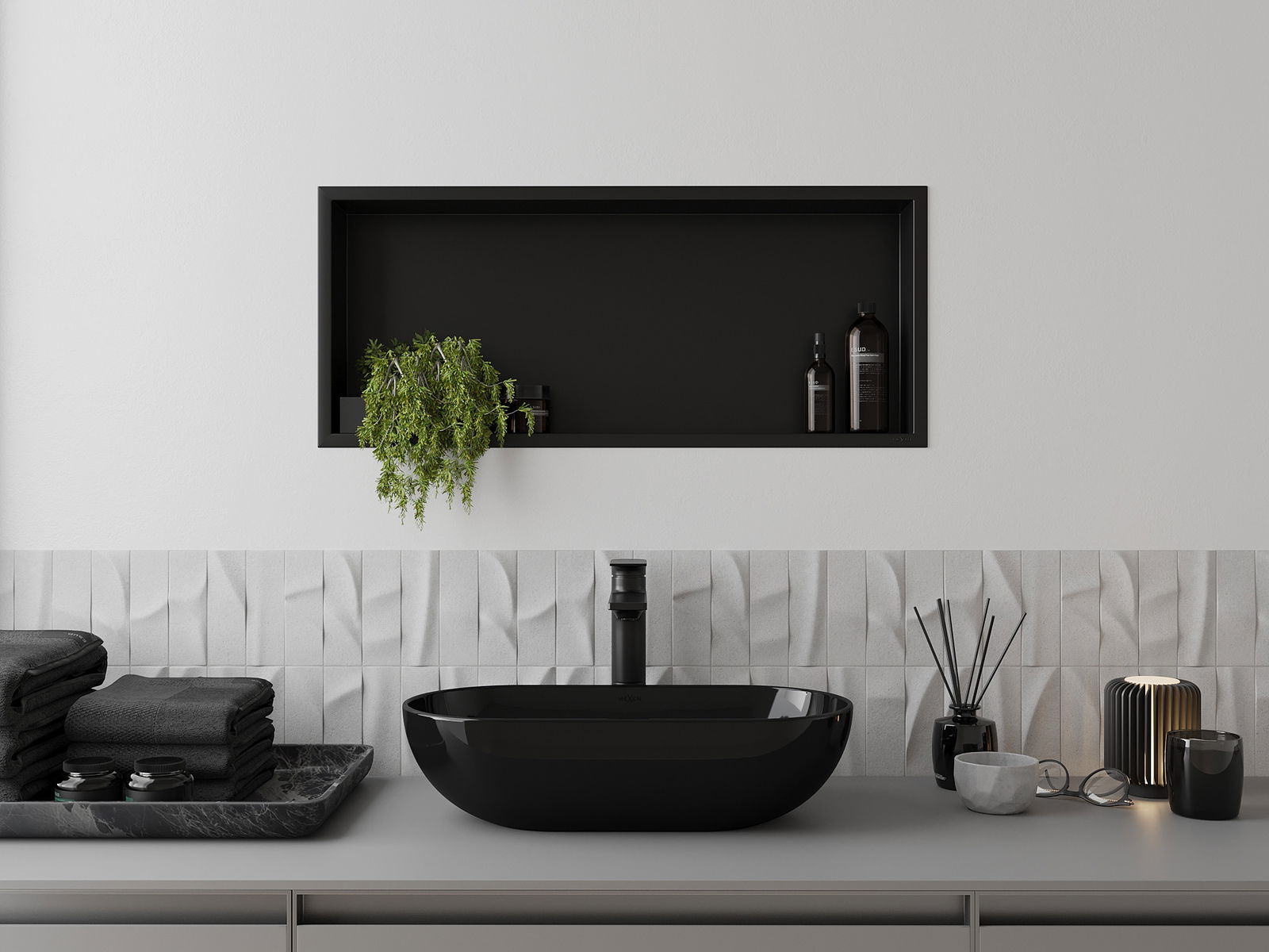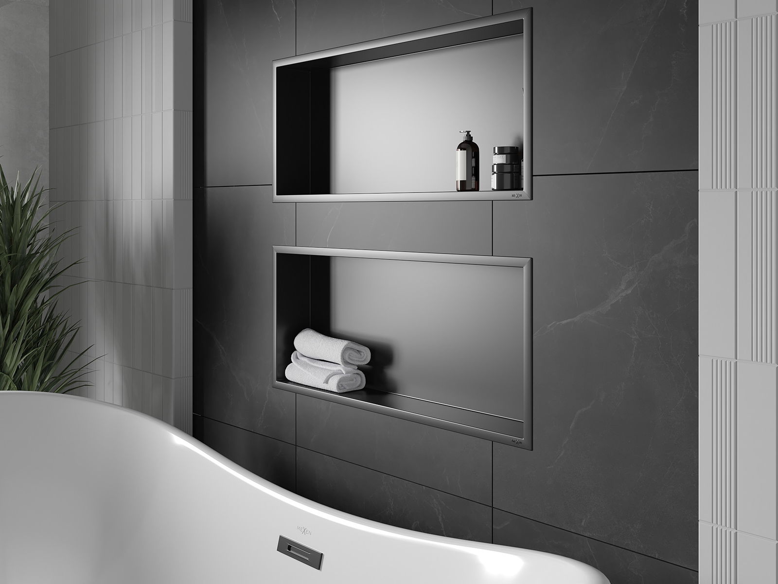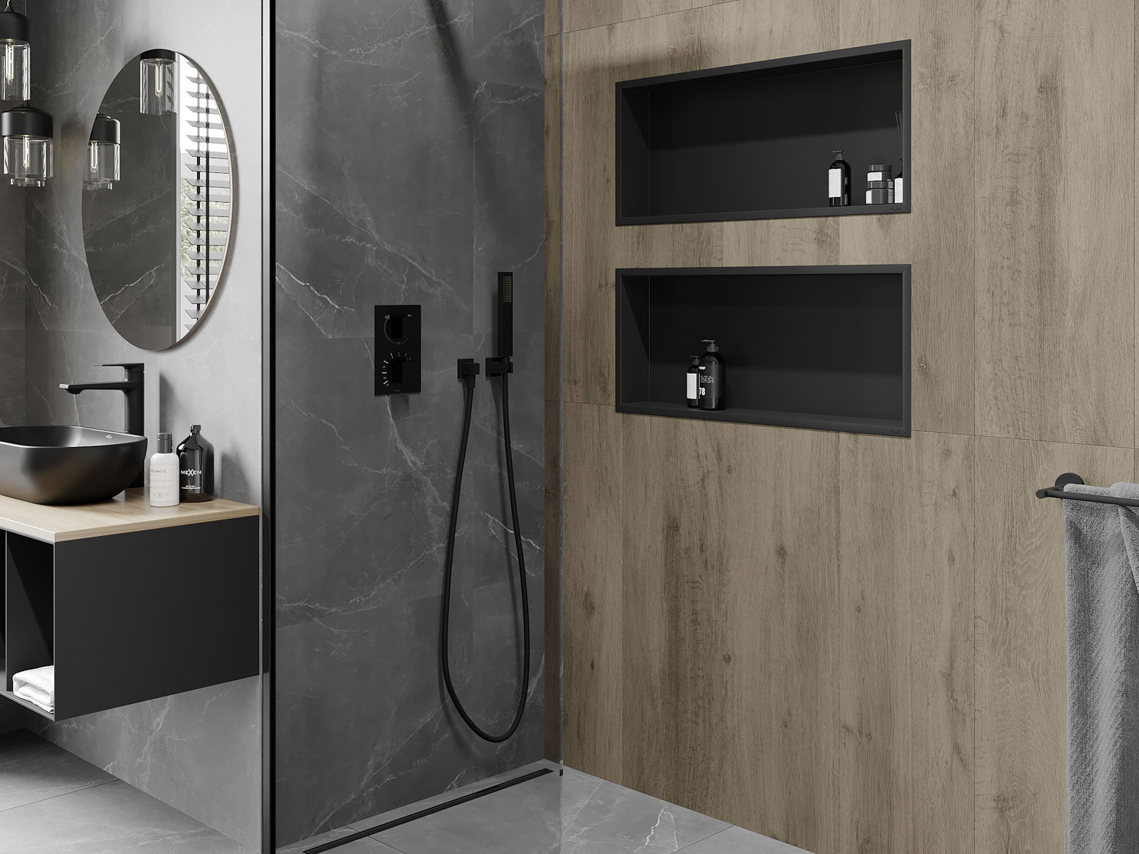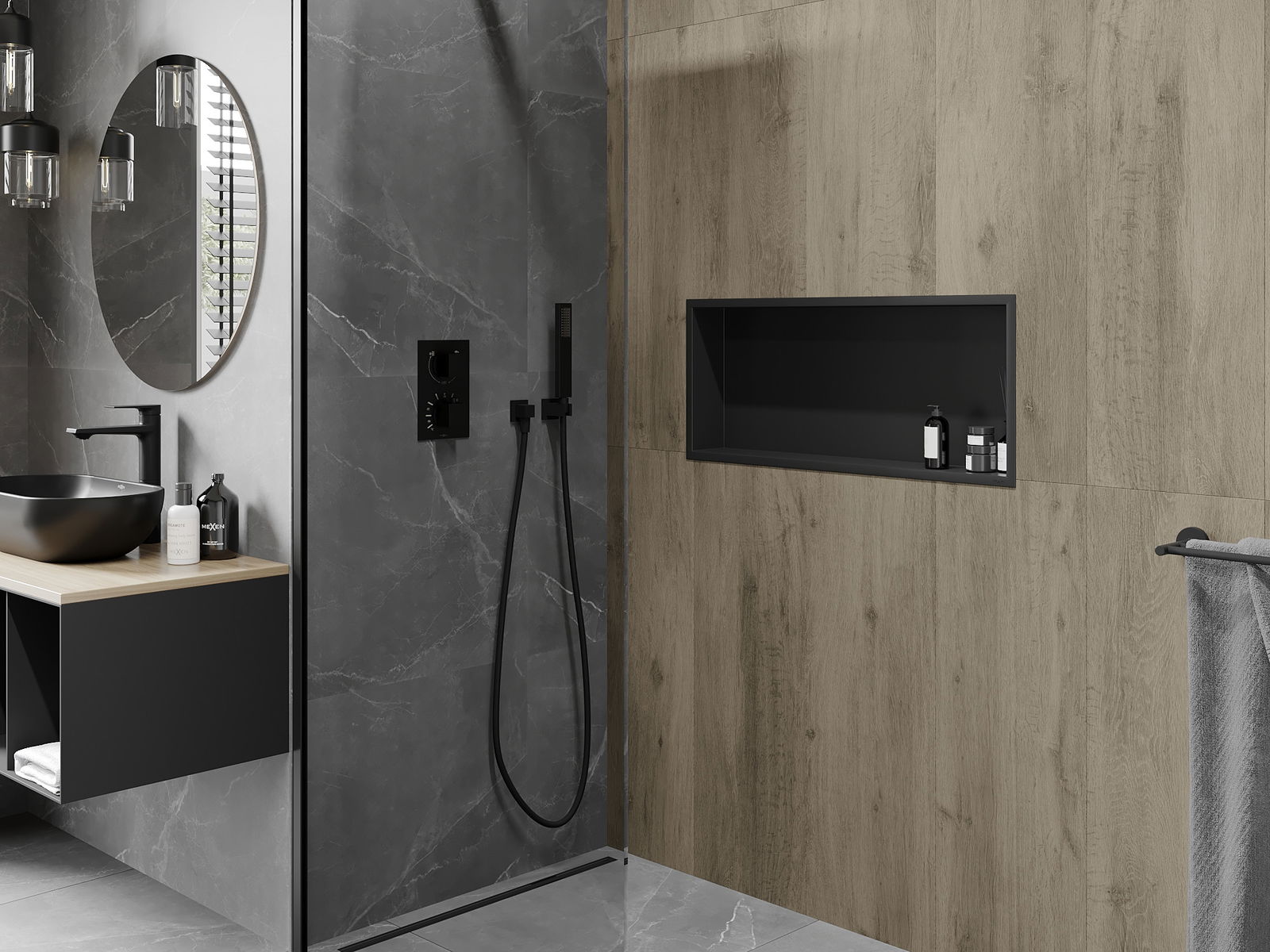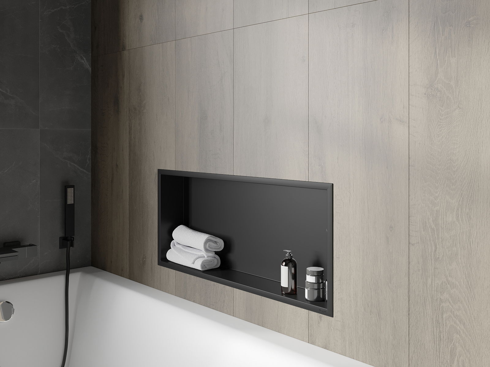Mexen X-Wall-R вградена полица с фланец 75 x 30 см, черна - 1970753010