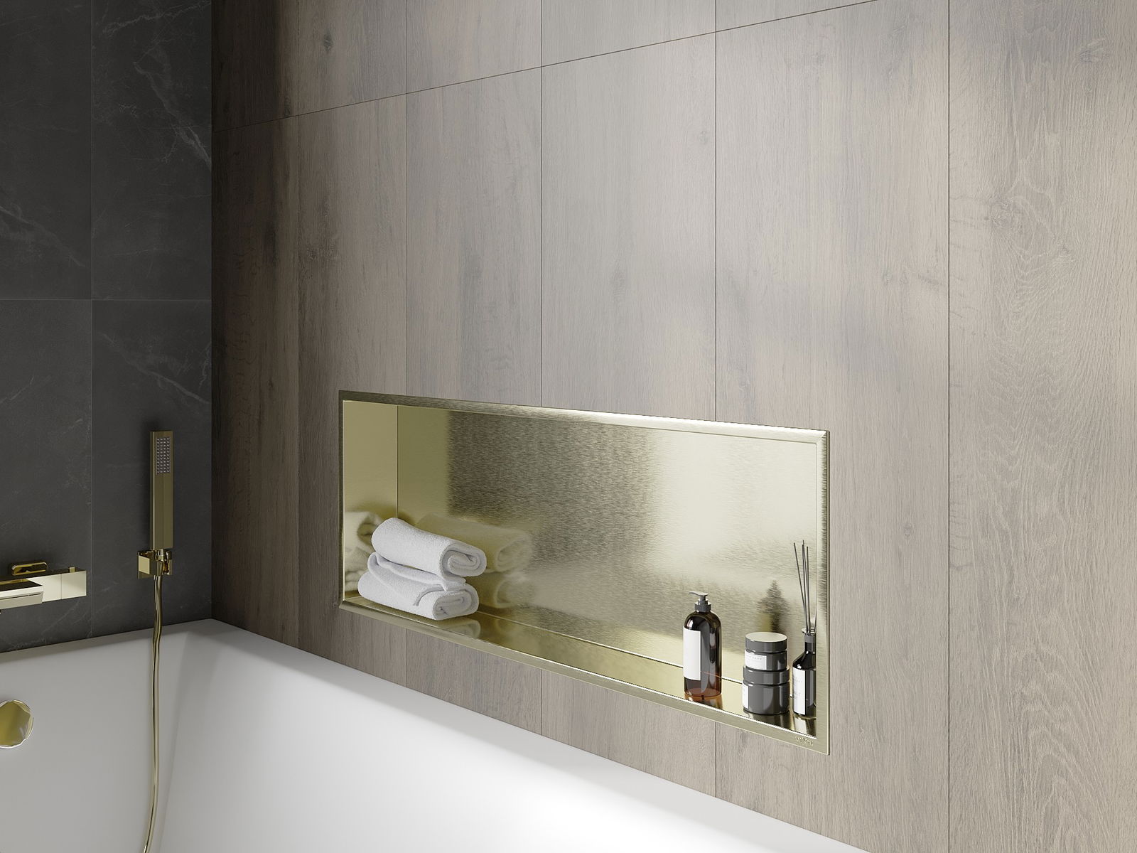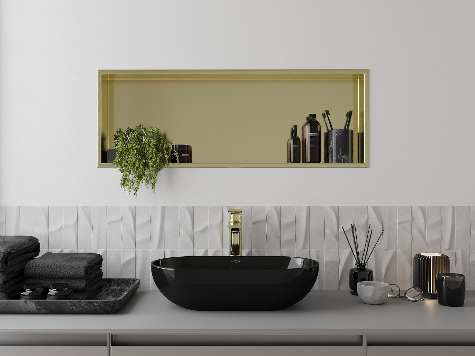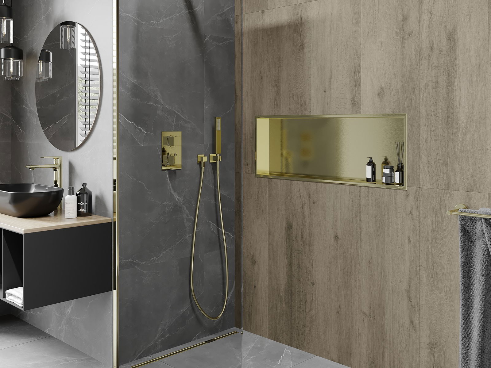 Mexen X-Wall-R нишева полица с яка 90 x 30 см, злато четкано - 1950903010