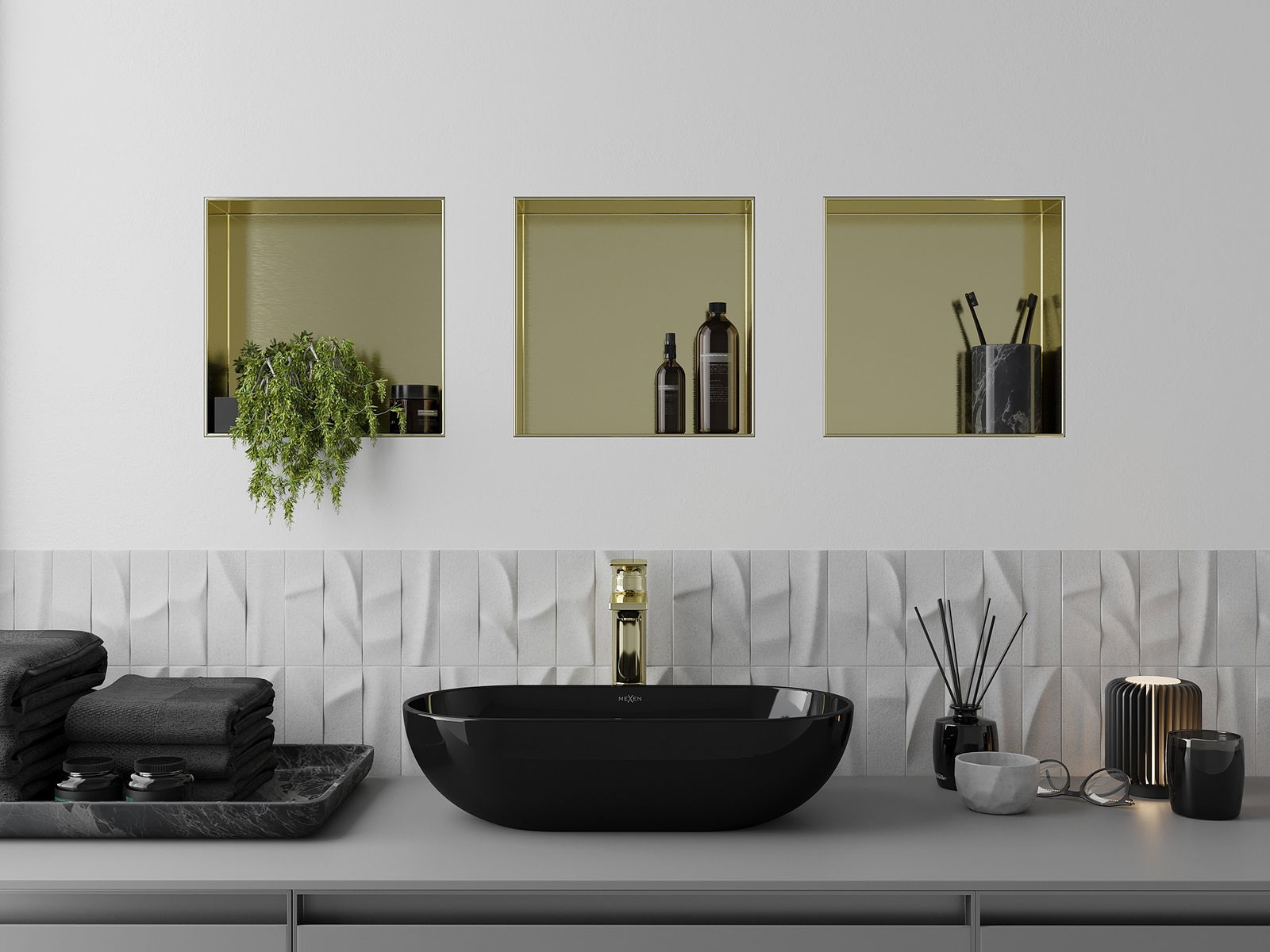 Mexen X-Wall-NR вградена полица без фланец 30 x 30 см, златна четкана - 1951303010
