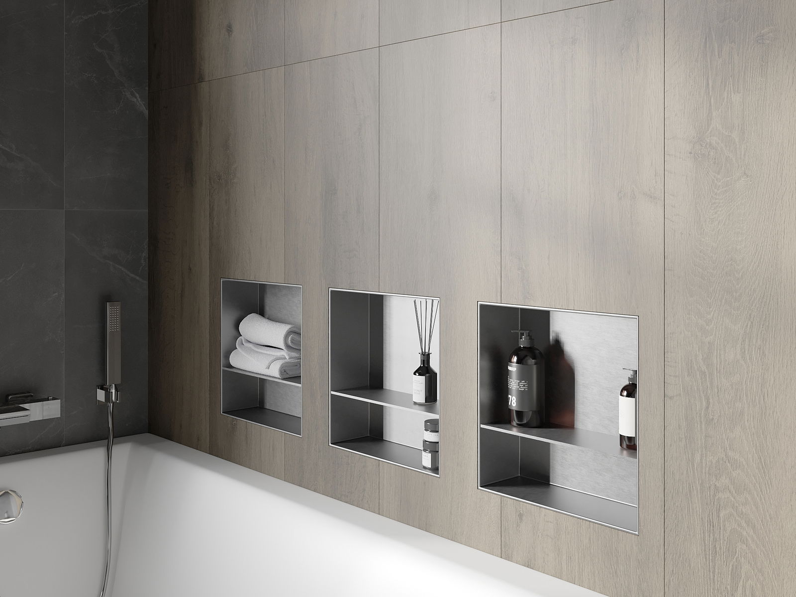 Mexen X-Wall-NR нишова лавица без ръб с полица 30 x 30 см, инокс - 1911303010S