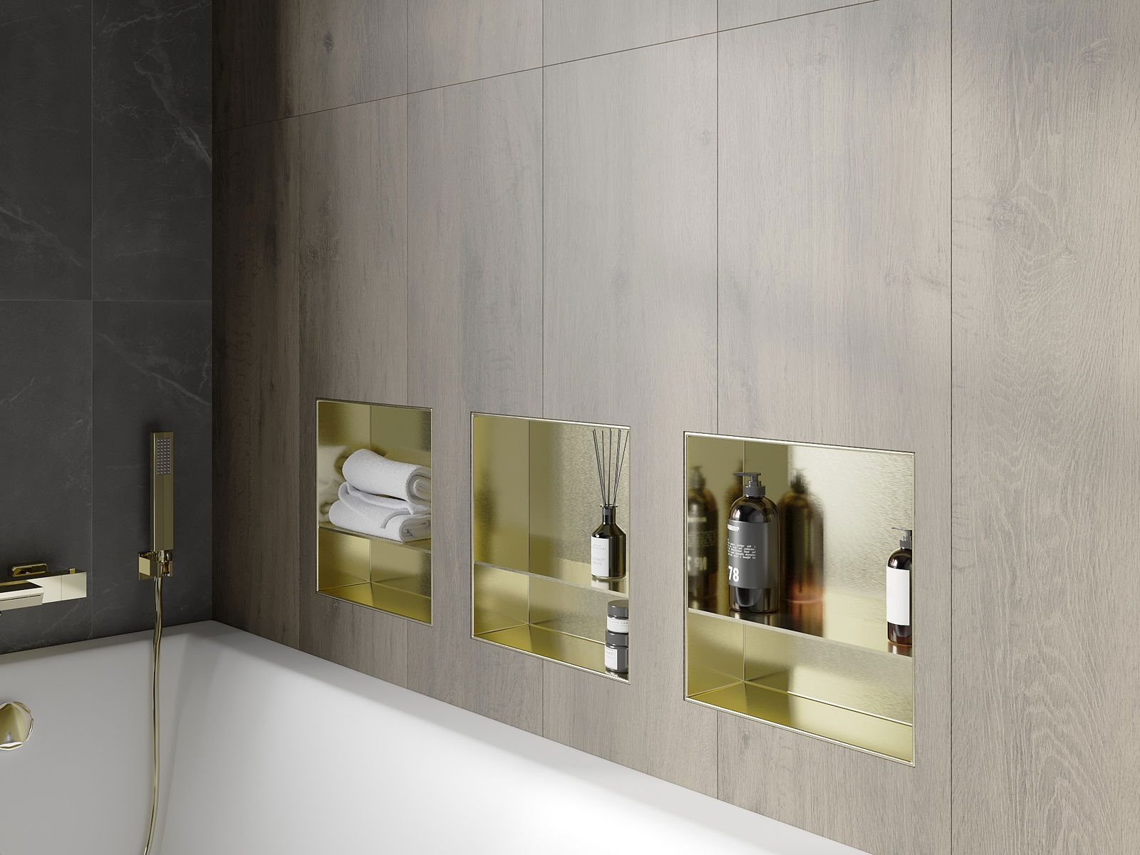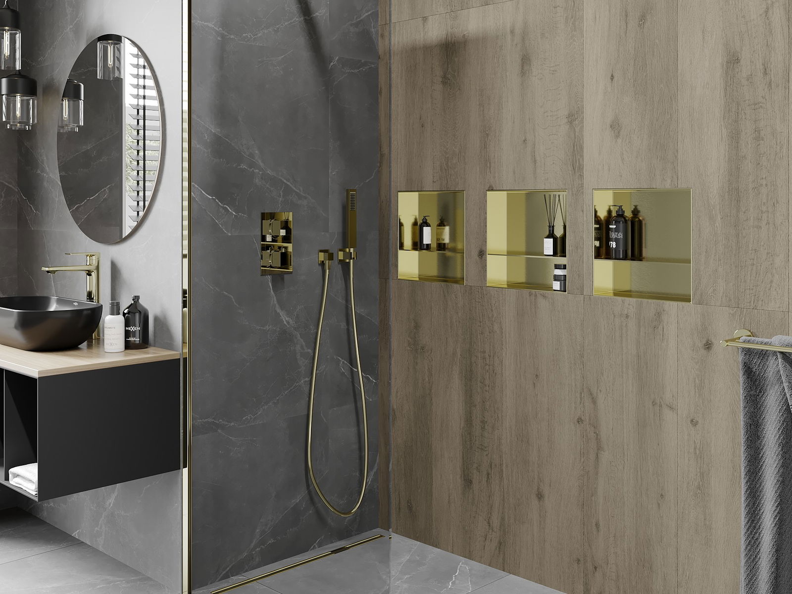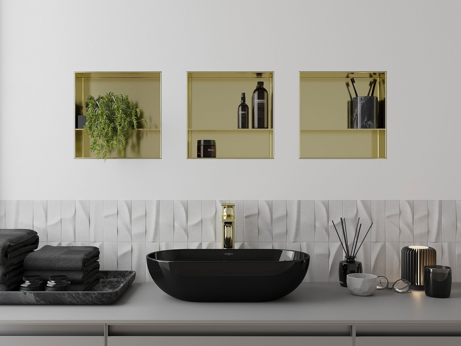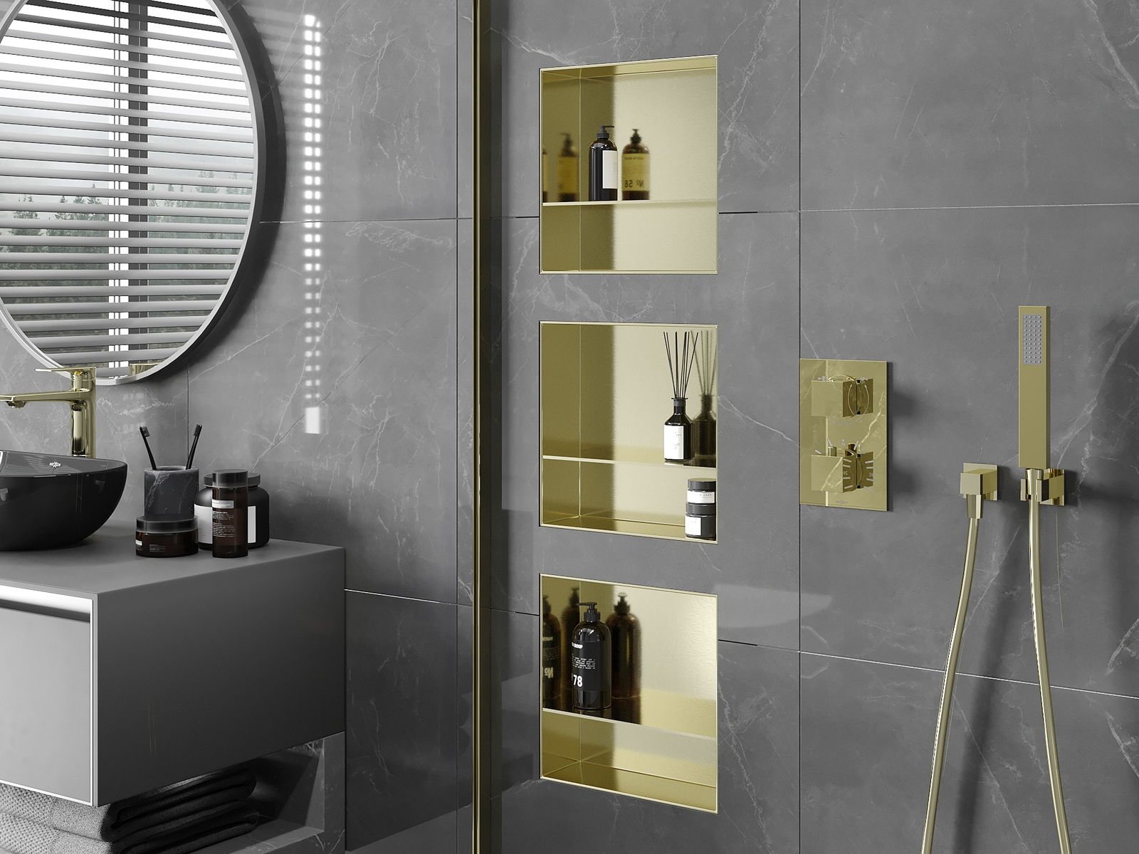 Mexen X-Wall-NR нишева полица без фланец с рафт 30 x 30 см, златиста четкана - 1951303010S