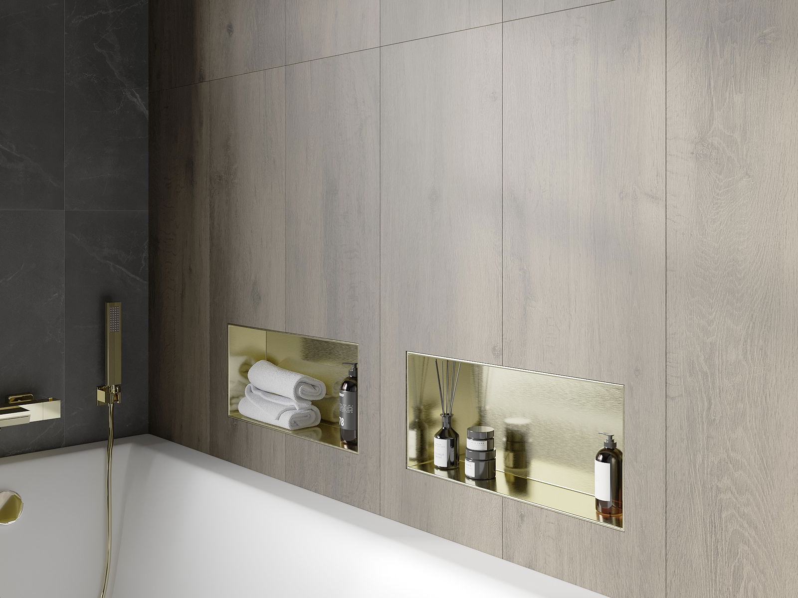 Mexen X-Wall-NR вградена лавица без борд, 45 x 20 см, златно четкано - 1951452010