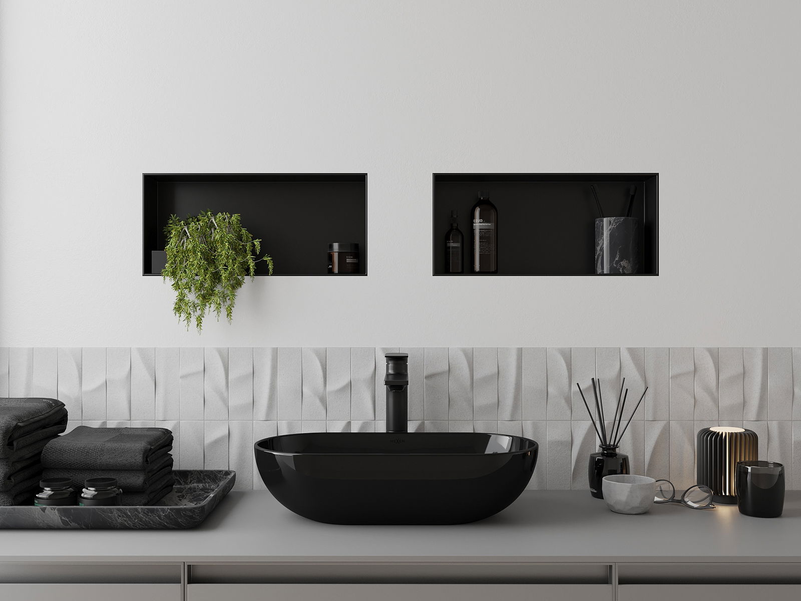 Mexen X-Wall-NR вградена полица без ръбове 45 x 20 см, черна - 1971452010