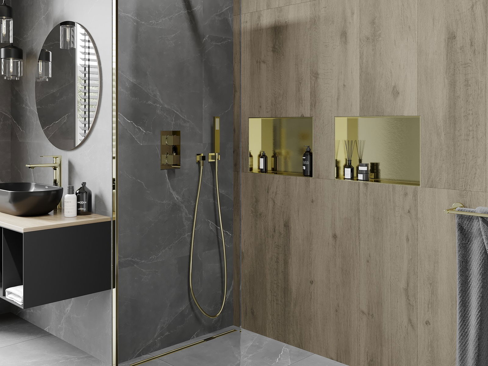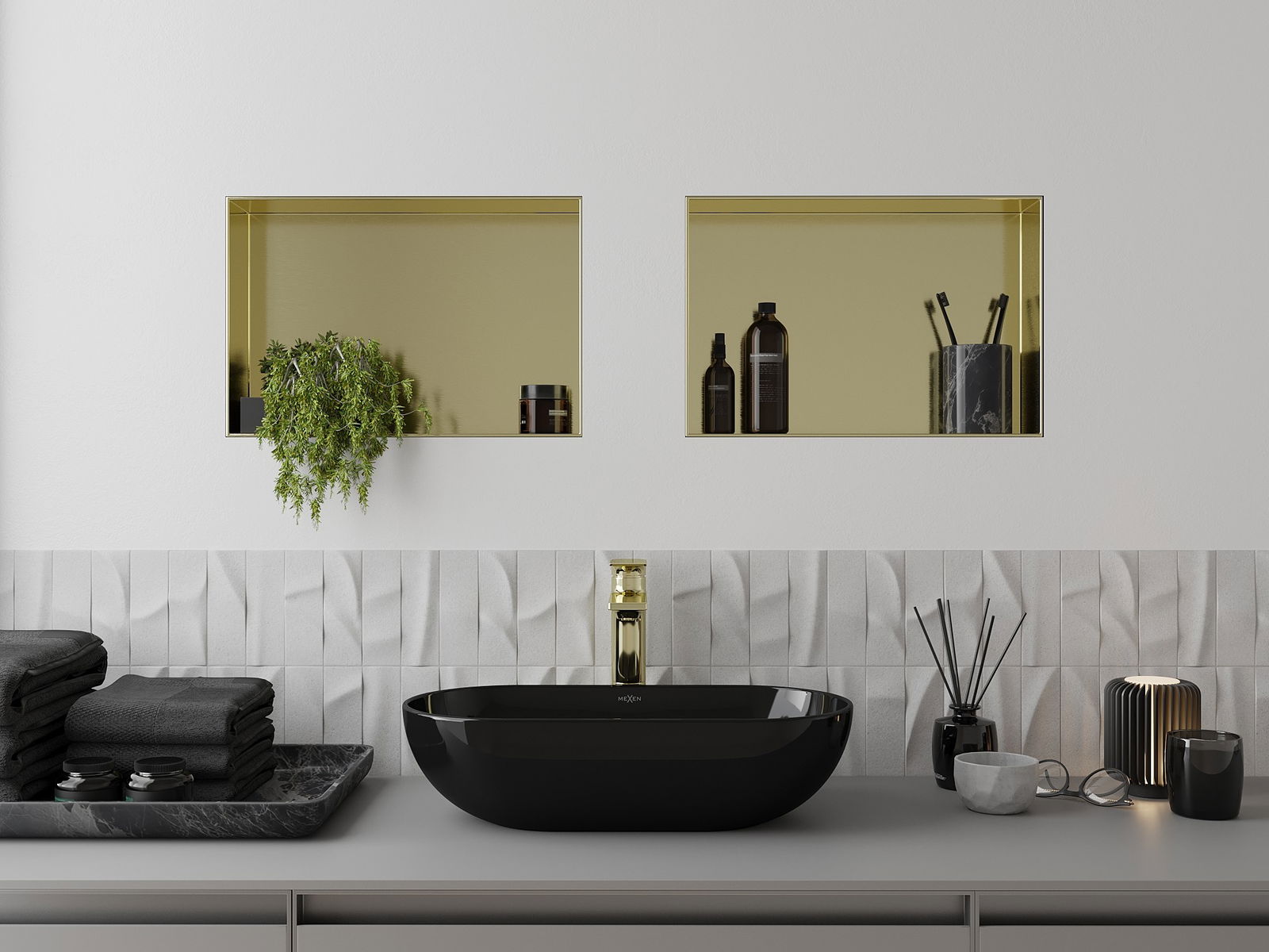 Mexen X-Wall-NR вградена полица без ръб 45 x 30 см, златиста четкана - 1951453010