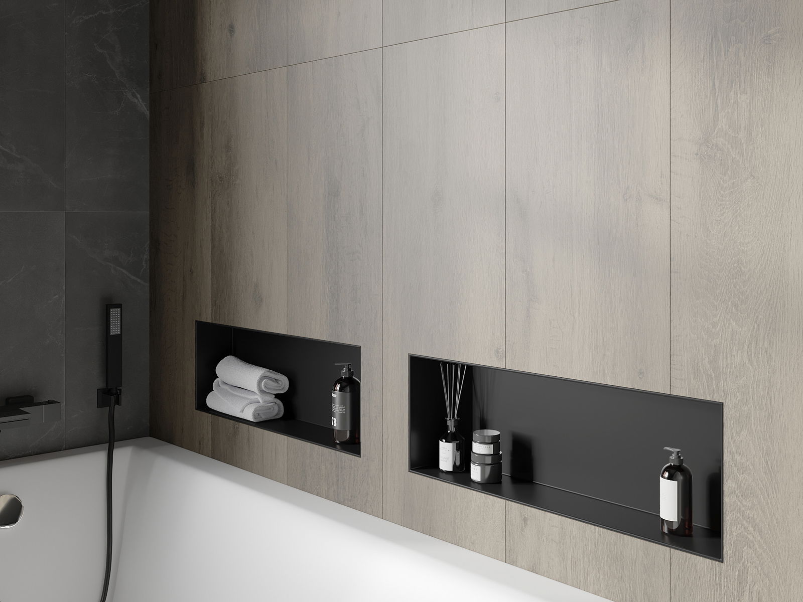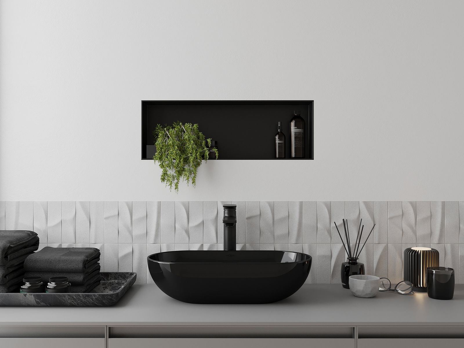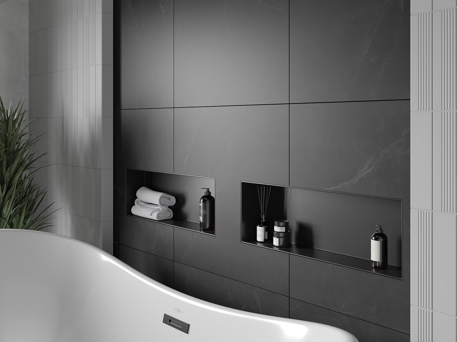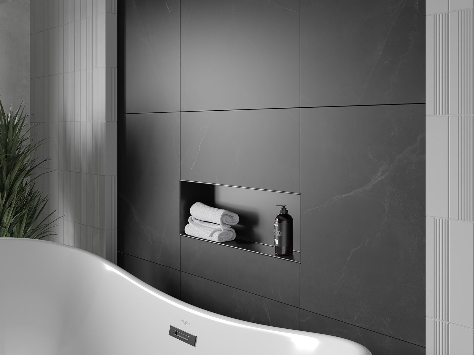 Mexen X-Wall-NR вградена лавица без фланец 60 x 20 см, черна - 1971602010