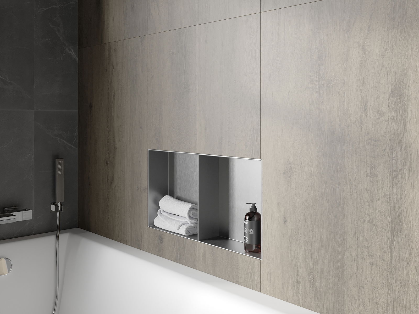 Възможност за монтаж в стената или в специално подготвена сграда. Това е изключително модерно и функционално решение, което ви позволява да спестите място и да съпоставите продукта с естетиката на интериора и да създадете кохерентен състав.
