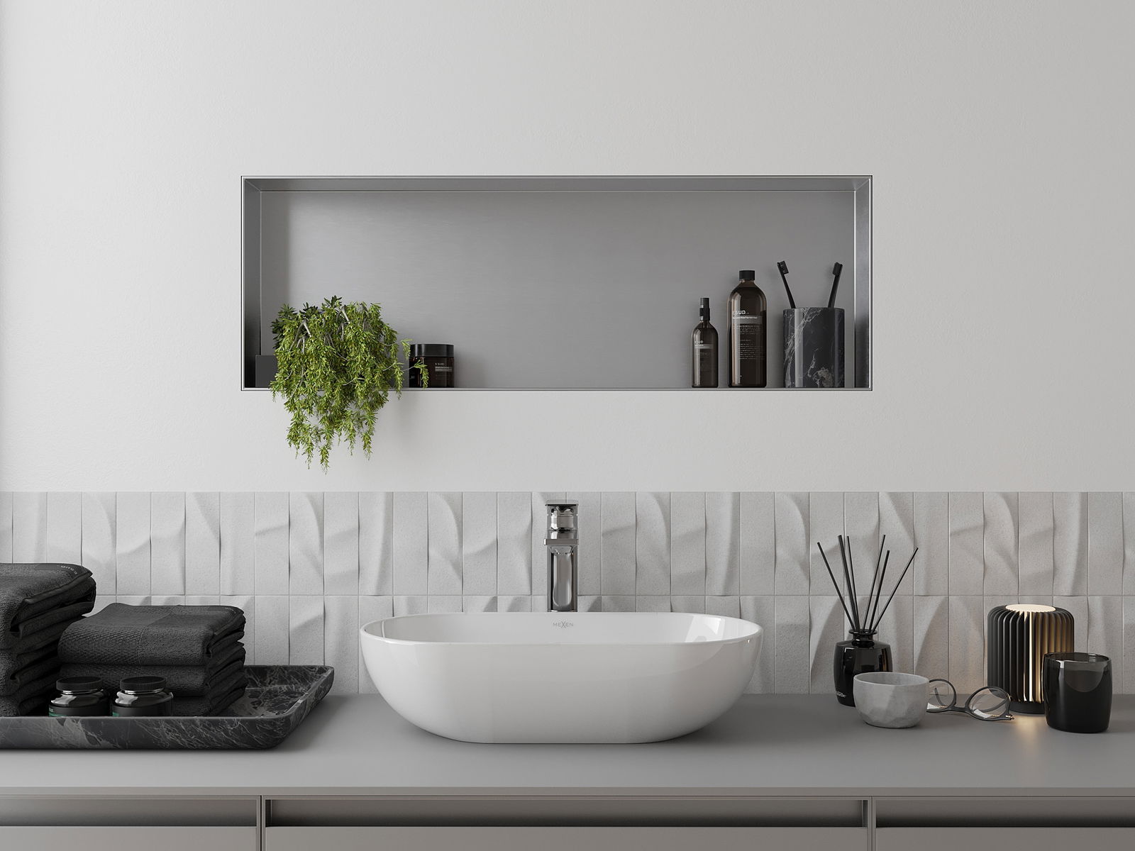 Mexen X-Wall-NR нишова лавица без фланец 90 x 30 см, инокс - 1911903010