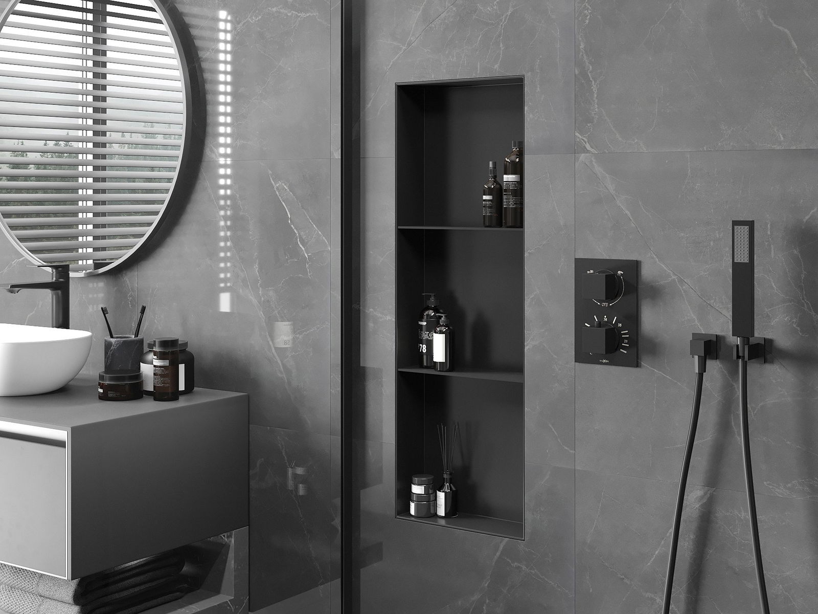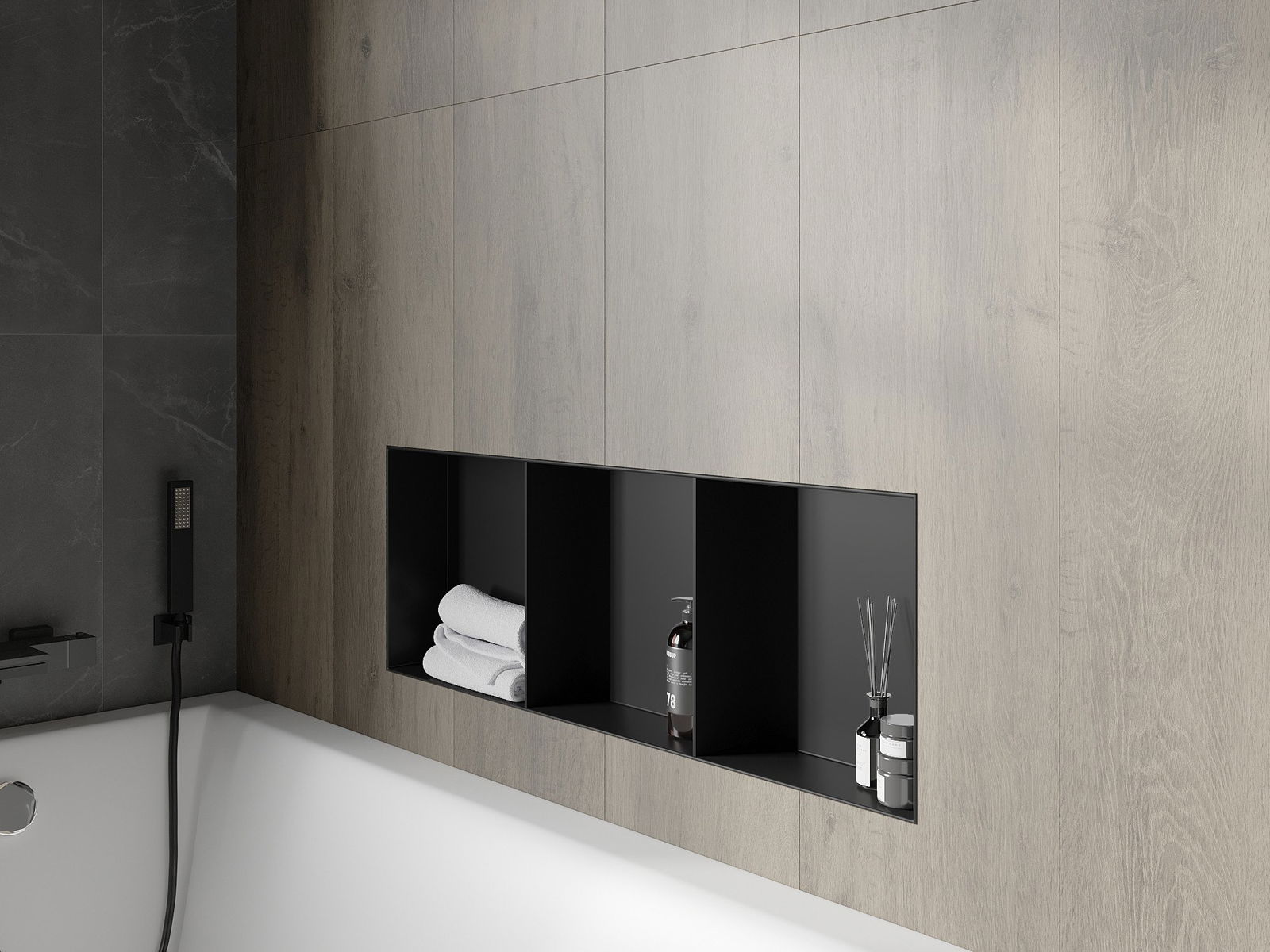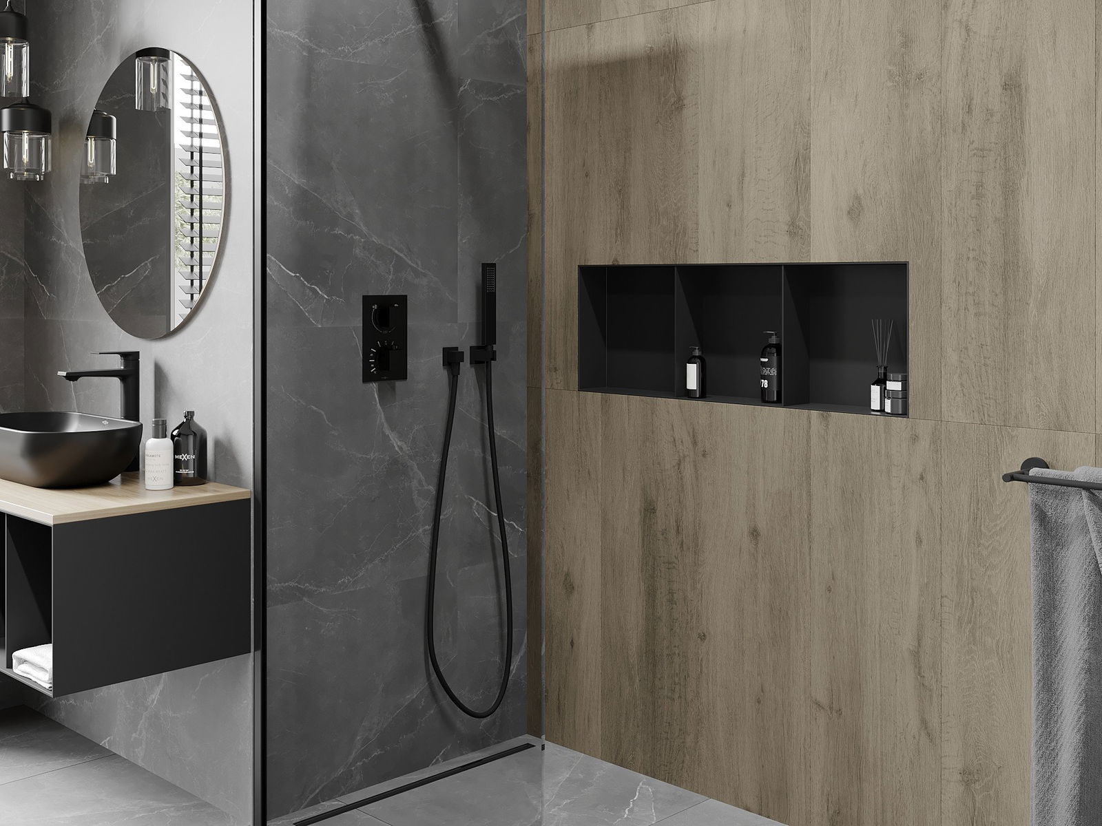 Mexen X-Wall-NR нишова лавица без кант с полка 90 x 30 см, черна - 1971903010S