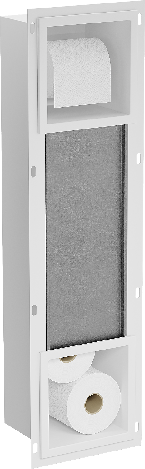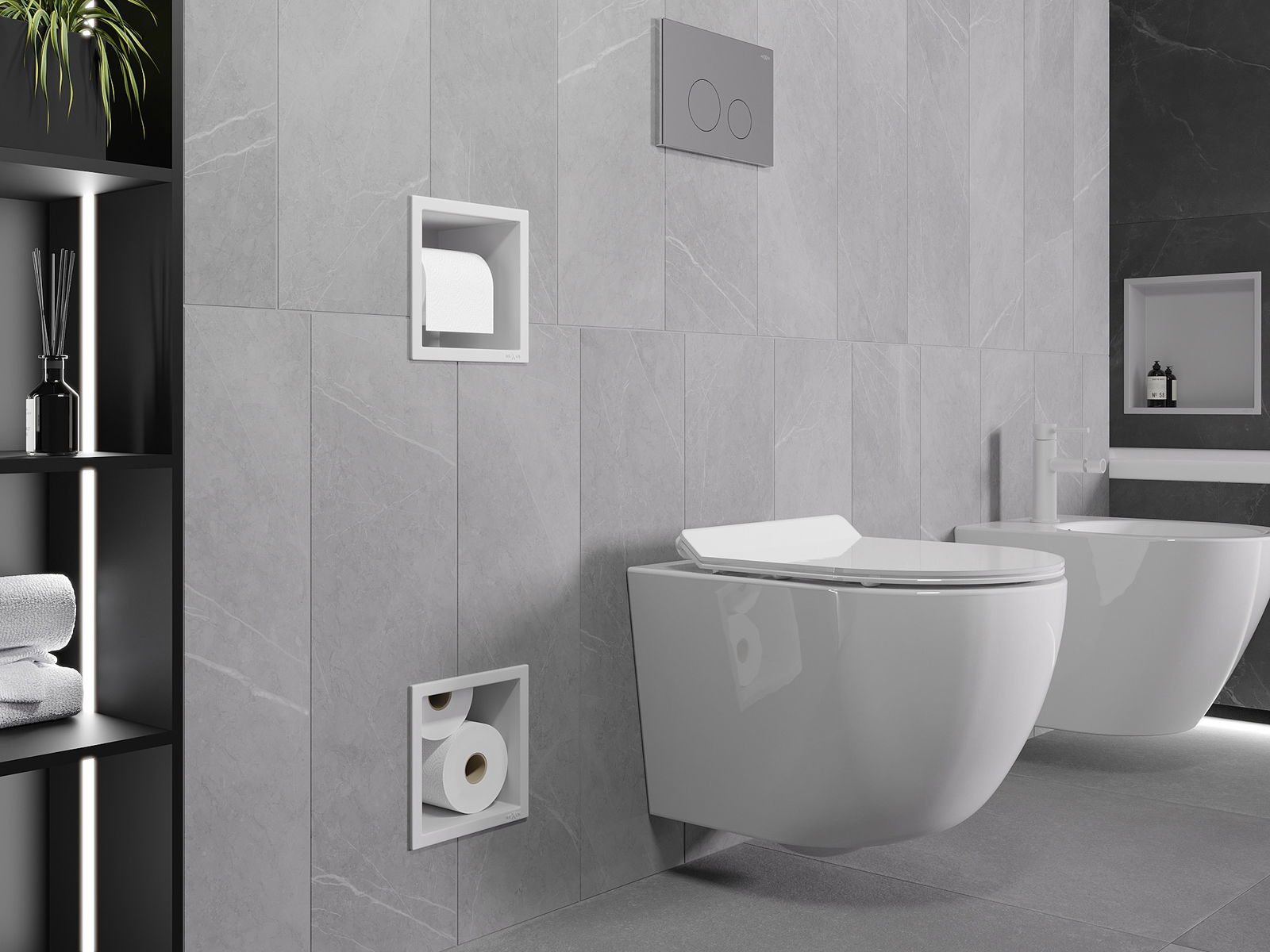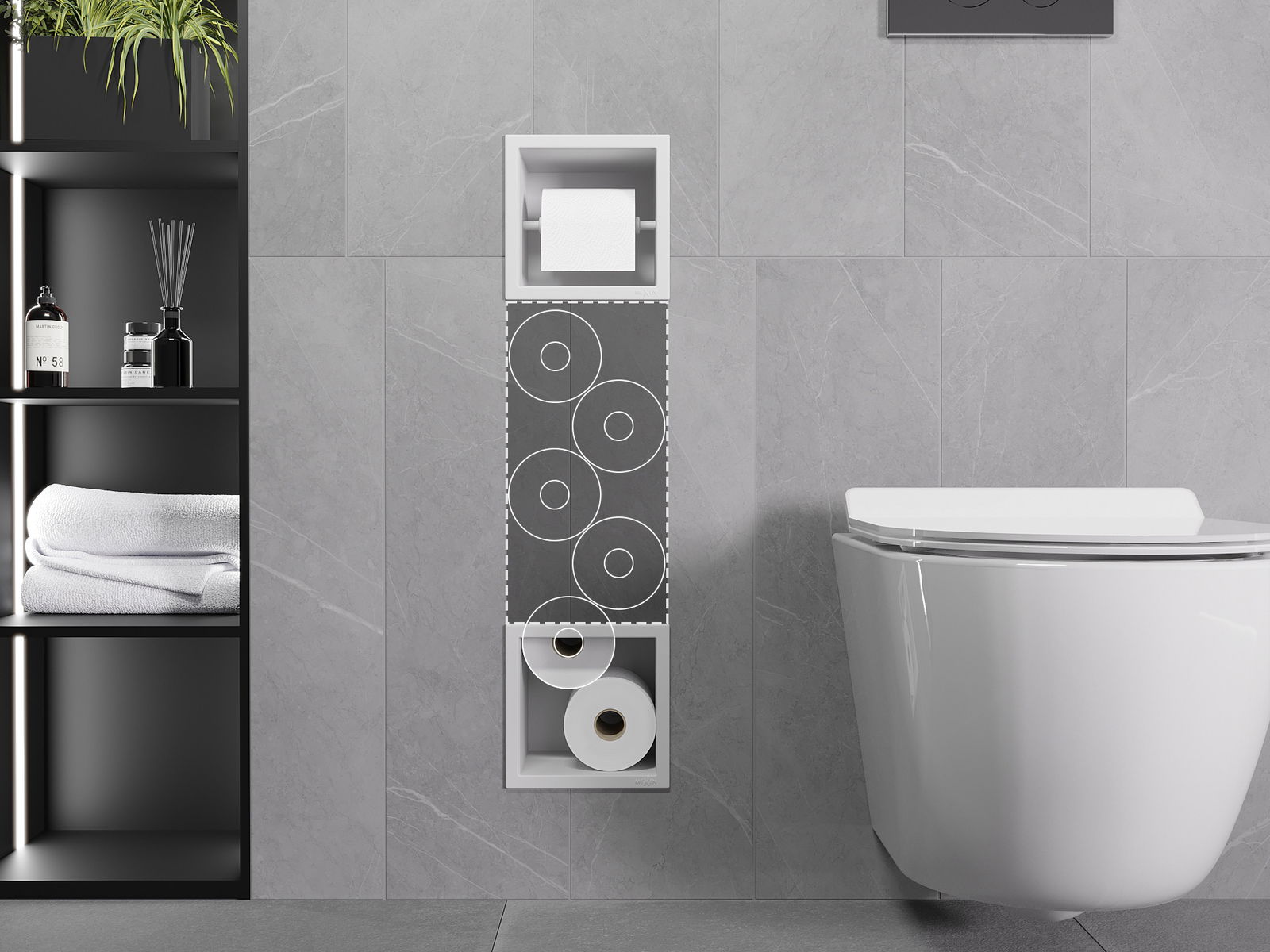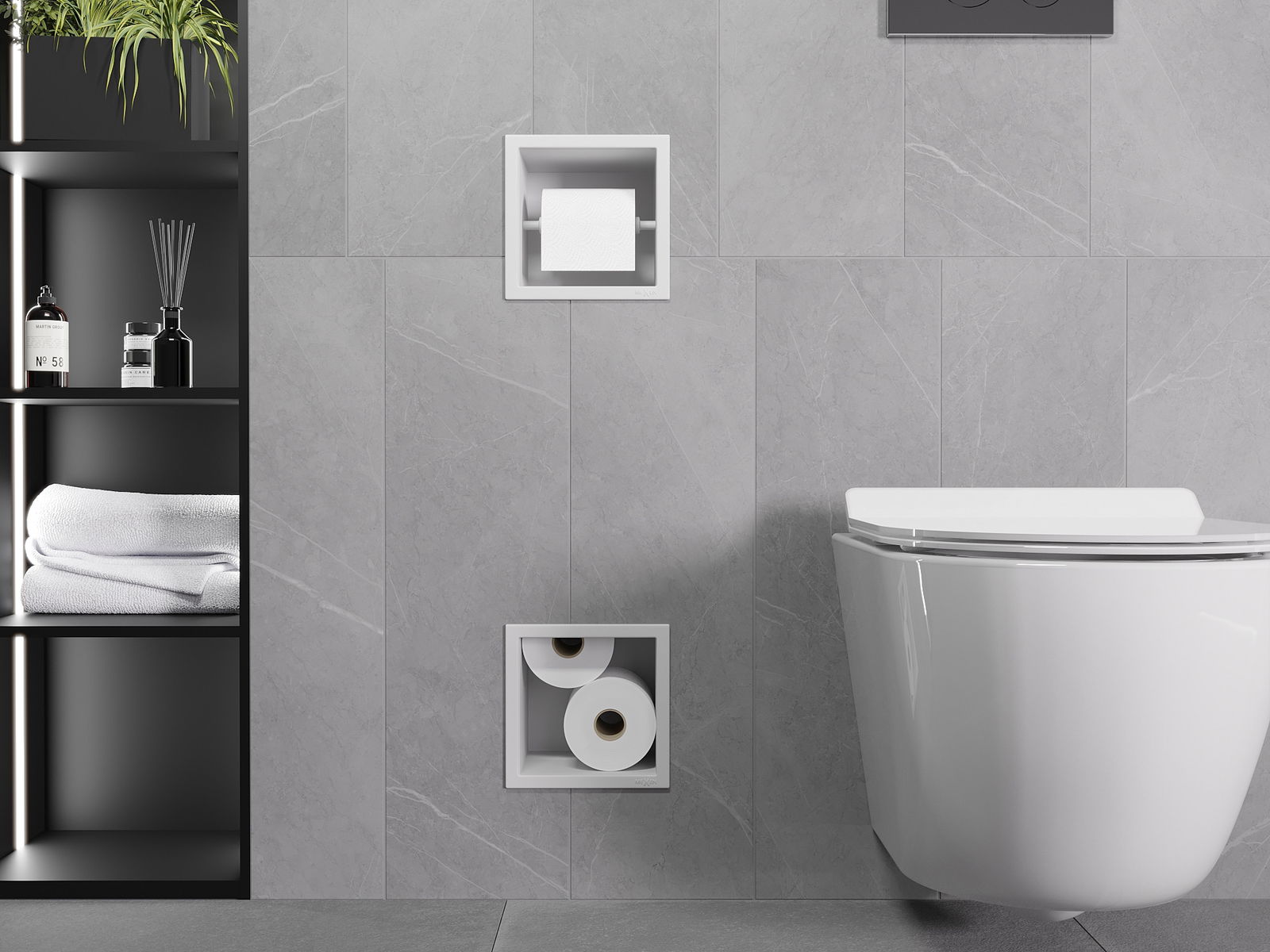 X-Wall е практичен държач за тоалетна хартия със склад, вграден в стената. Новата ролка винаги е на една ръка разстояние, а мястото, предназначено по -рано за съхранение на тоалетна хартия, може да се използва по различен начин.
