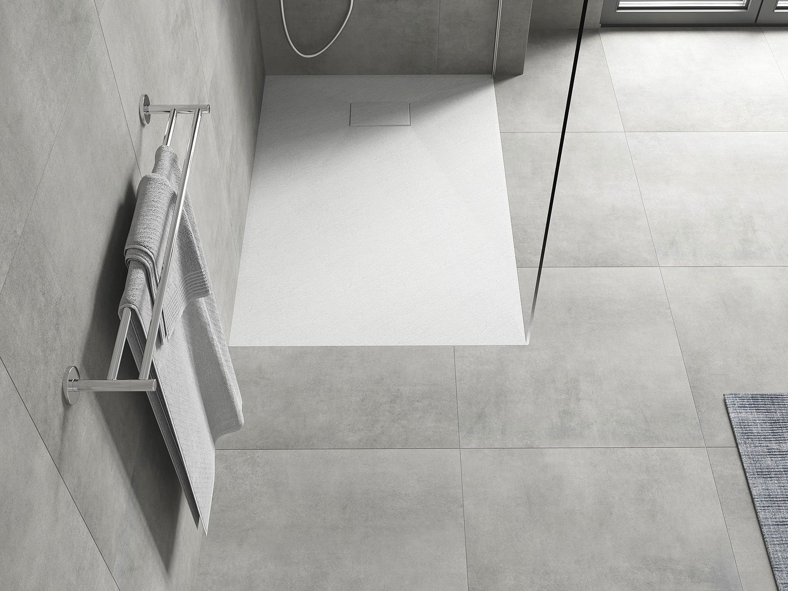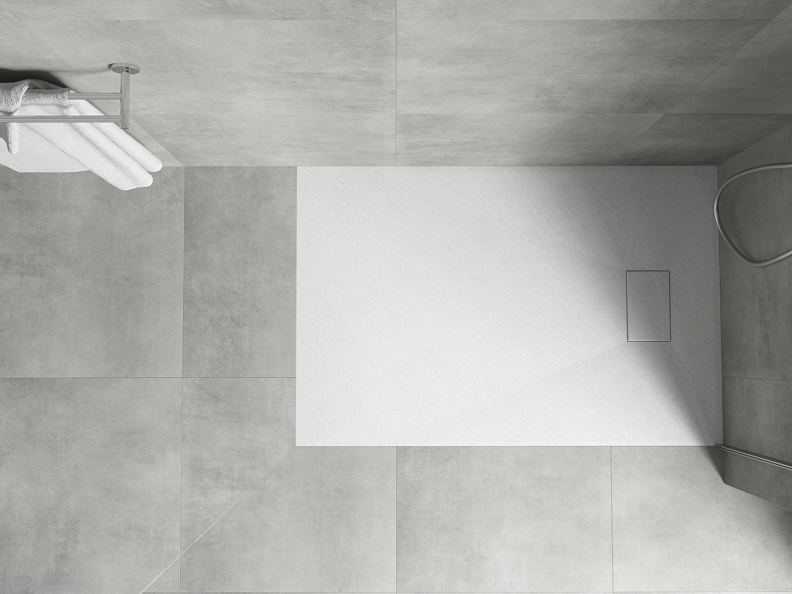 Повърхността на таблата за душ наподобява камък със структурата му. Това е уникална комбинация от естествен външен вид с модерна интериорна подредба. Той добавя характер, подчертава естетиката и елегантността на декора на банята и впечатлява с формата си.
