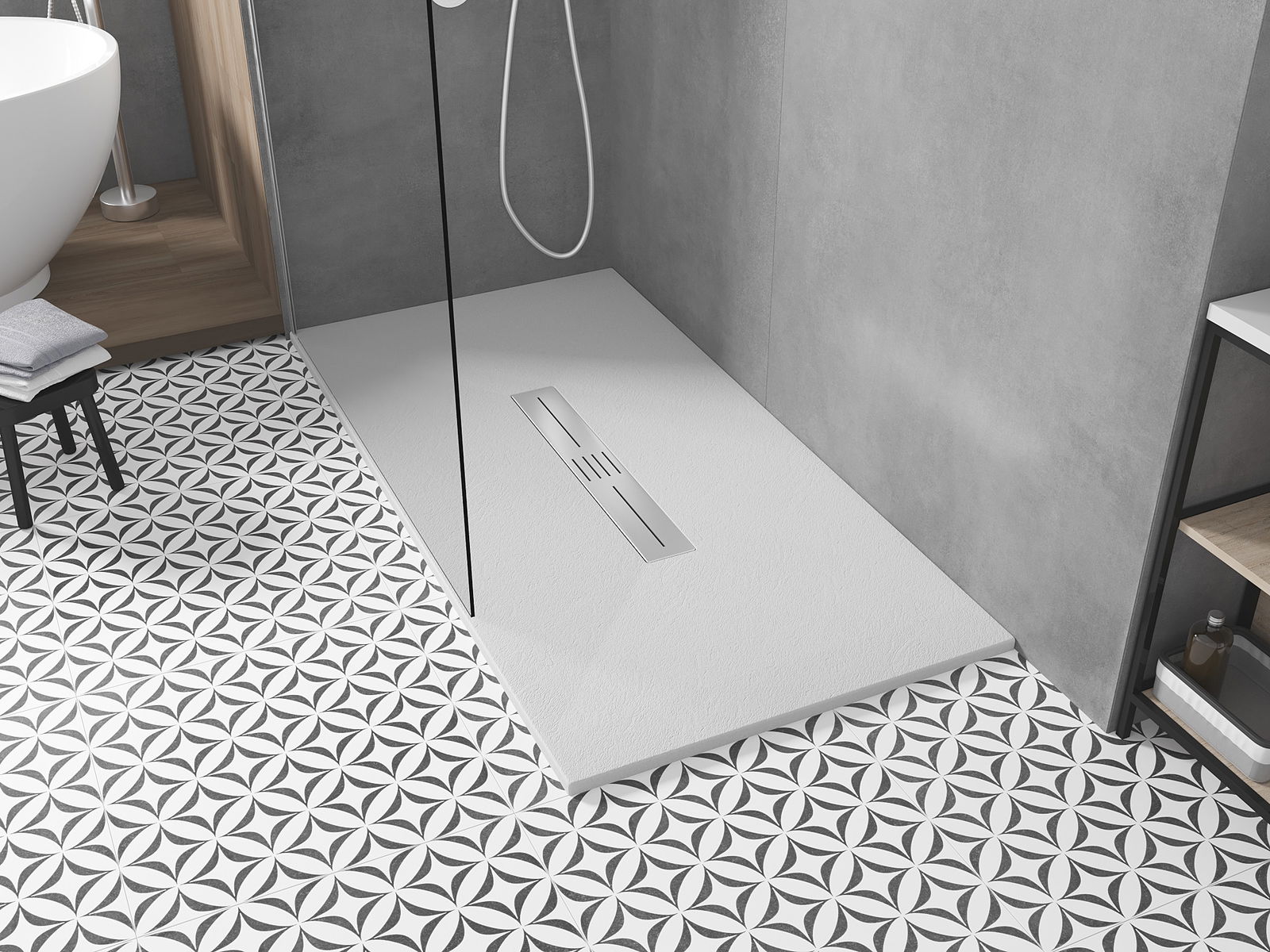 Повърхността на подложката за душ със своята структура наподобява камък. Тя представлява уникално съчетание на естествен вид с модерното оформление на интериора. Добавя характер, подчертава естетиката и елегантността на декора на банята и възхищава със своята форма.