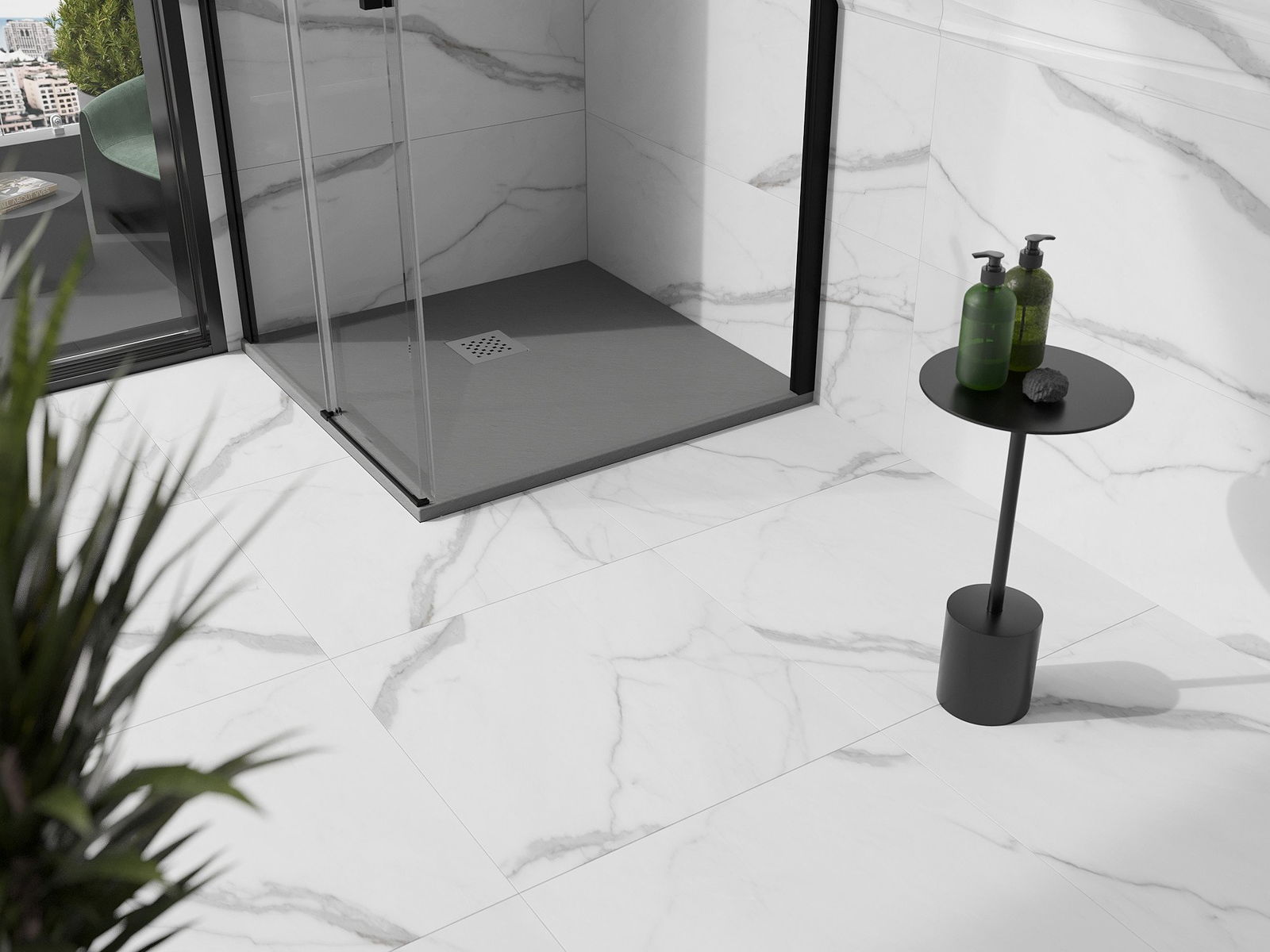 Малката височина на таблата за душ позволява традиционно монтиране на пода или вкарване в пода, създавайки уникална, еднаква повърхност. Гъвкавостта на монтажа ви позволява да съответствате на таблата за душ с различни интериорни аранжировки.