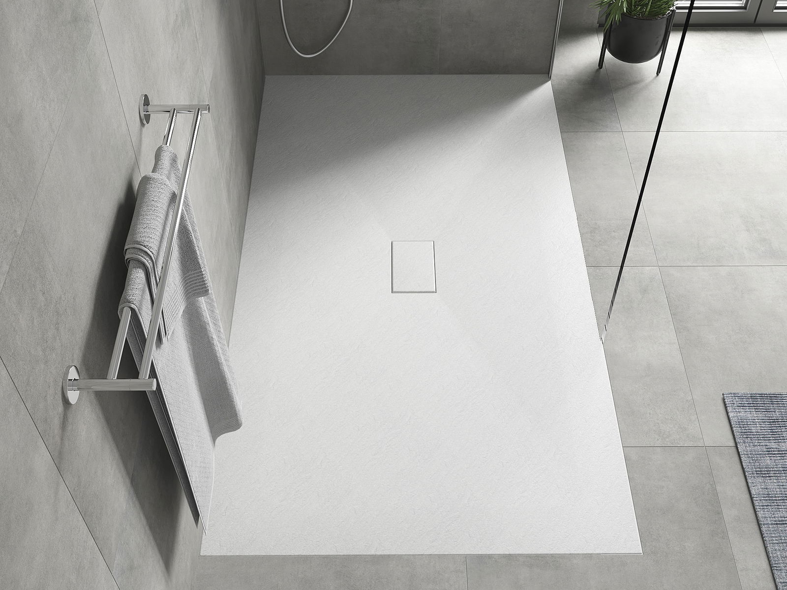Повърхността на подложката за душ със своята структура наподобява камък. Тя представлява уникално съчетание на естествен вид с модерното оформление на интериора. Добавя характер, подчертава естетиката и елегантността на декора на банята и възхищава със своята форма.