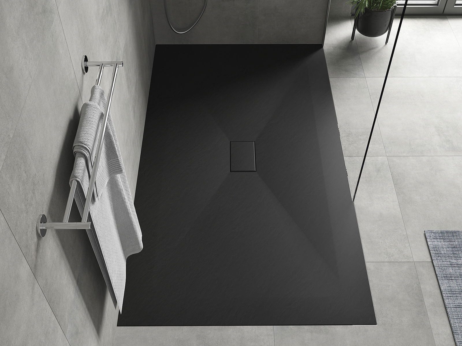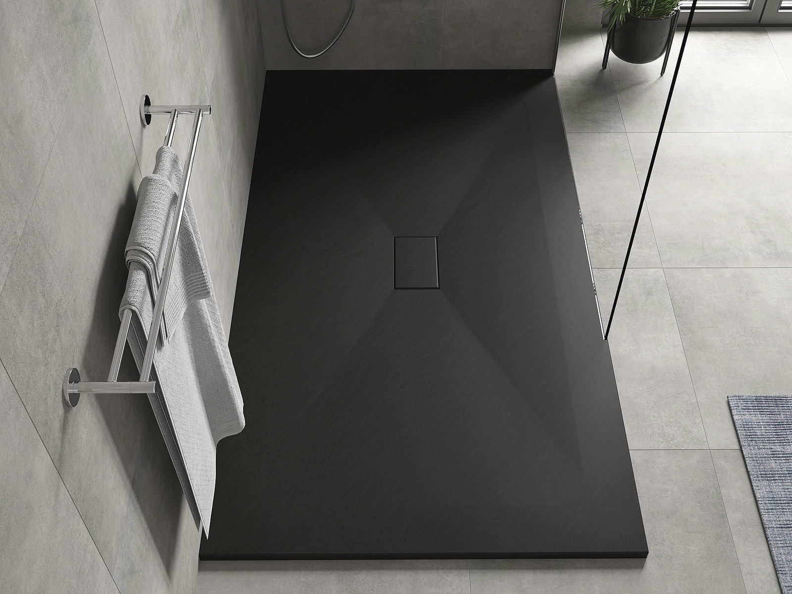 Повърхността на таблата за душ наподобява камък със структурата му. Това е уникална комбинация от естествен външен вид с модерна интериорна подредба. Той добавя характер, подчертава естетиката и елегантността на декора на банята и впечатлява с формата си.
