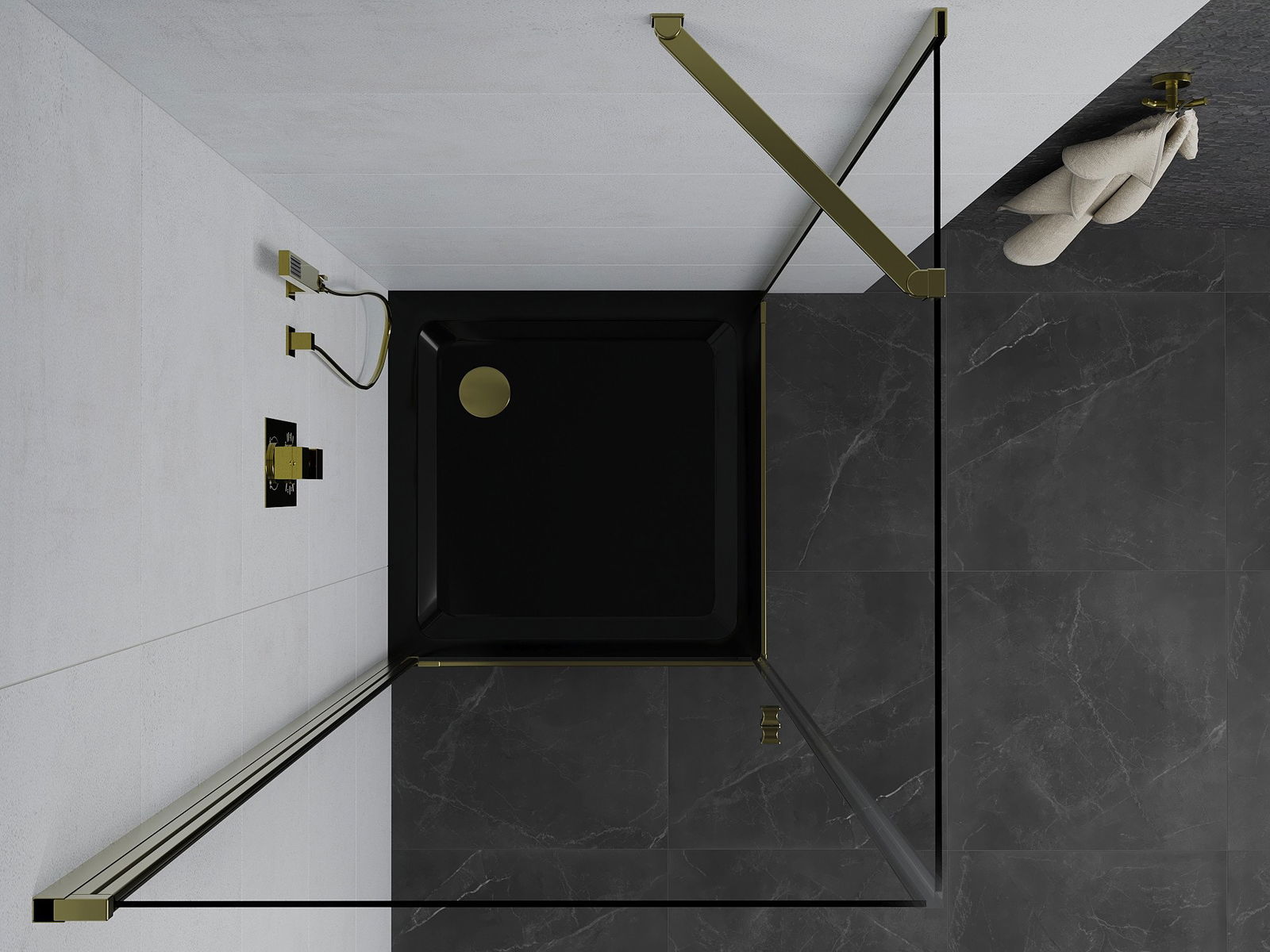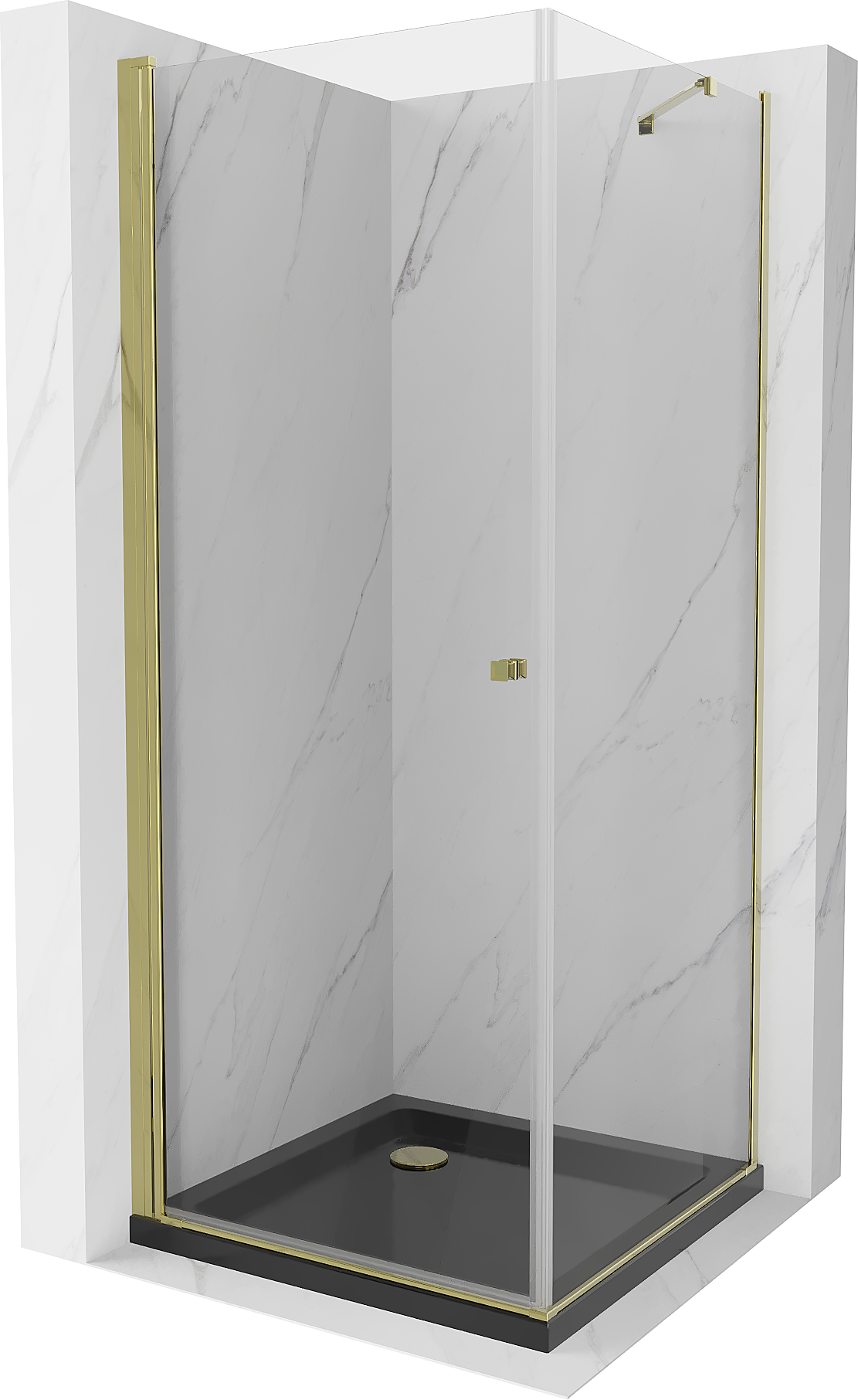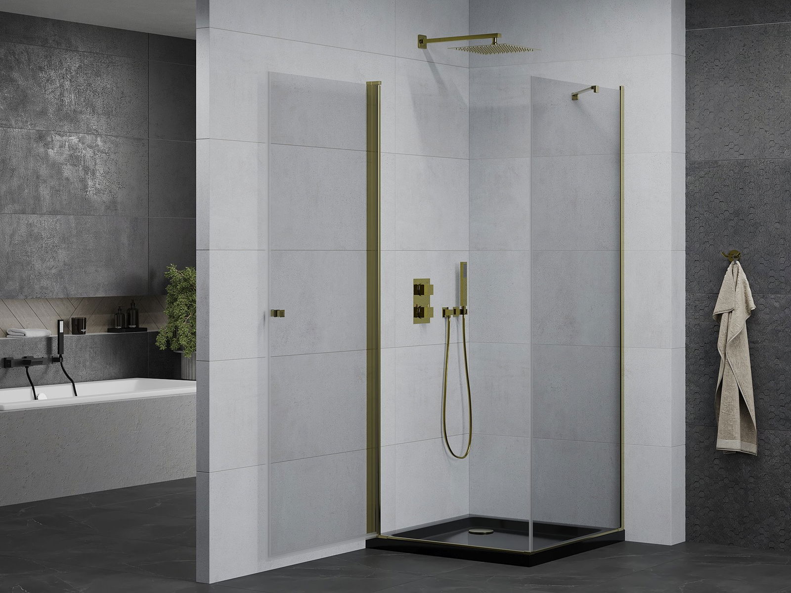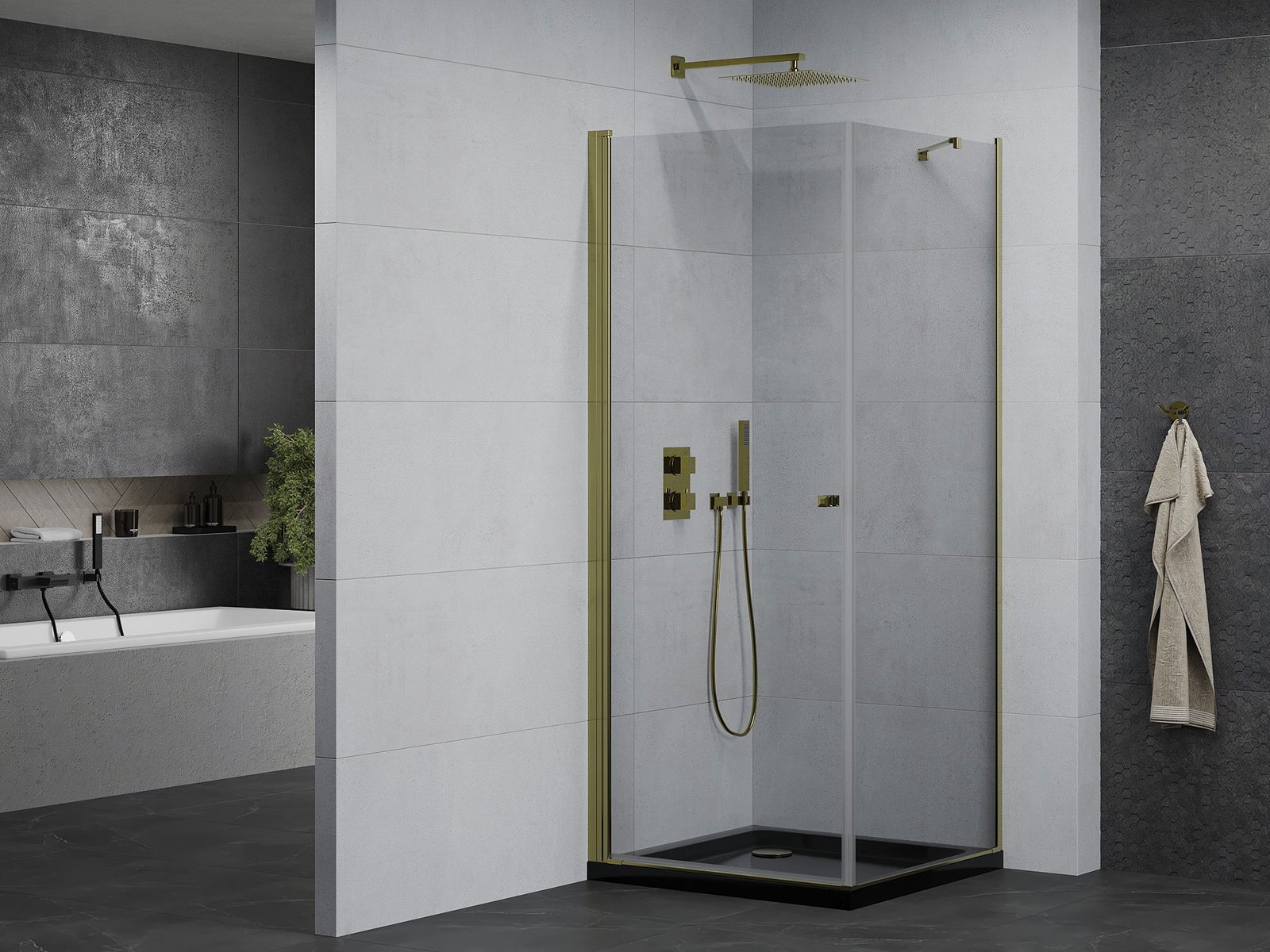 Mexen Pretoria Отваряща се душ кабина 80 x 80 см, прозрачна, златиста + душ