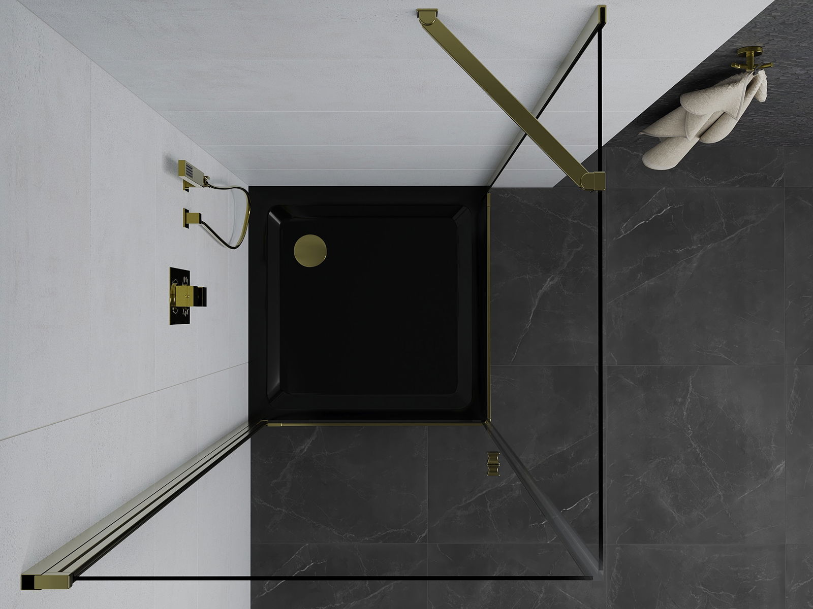 Удобната и практична дръжка е изработена от здрав и устойчив метал. Модерната форма в съчетание с покритието, съответстващо на цвета на профилите, придава на цялото модерен и стилен вид, подчертавайки естетиката на всяка баня.