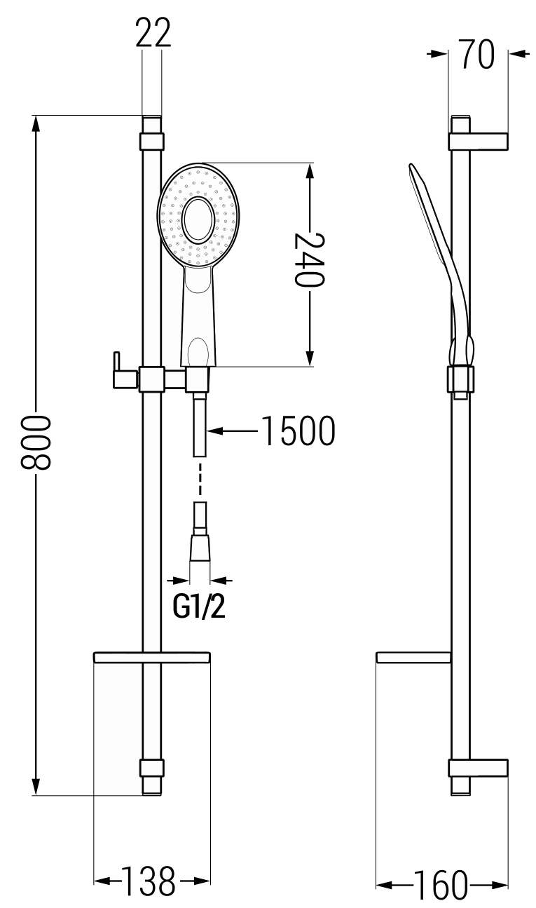 Ширина на пръта: 22 мм
